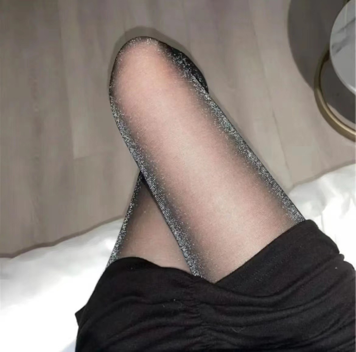 반짝이는 진주 빛 실크 스타킹 여성의 봄과 가을 안티 후크 실크 2022 폭발 새로운 여름 얇은 굽는 흑백스토어 가기