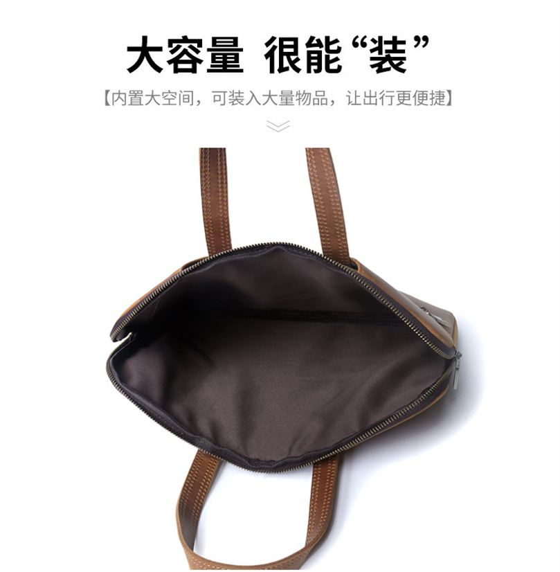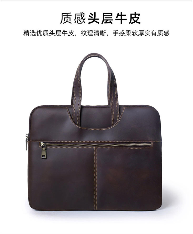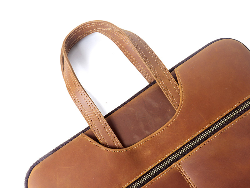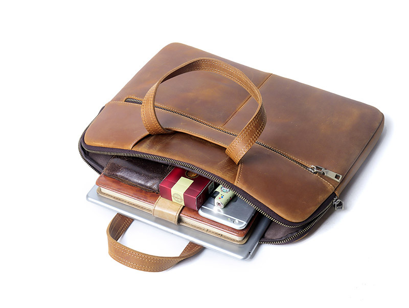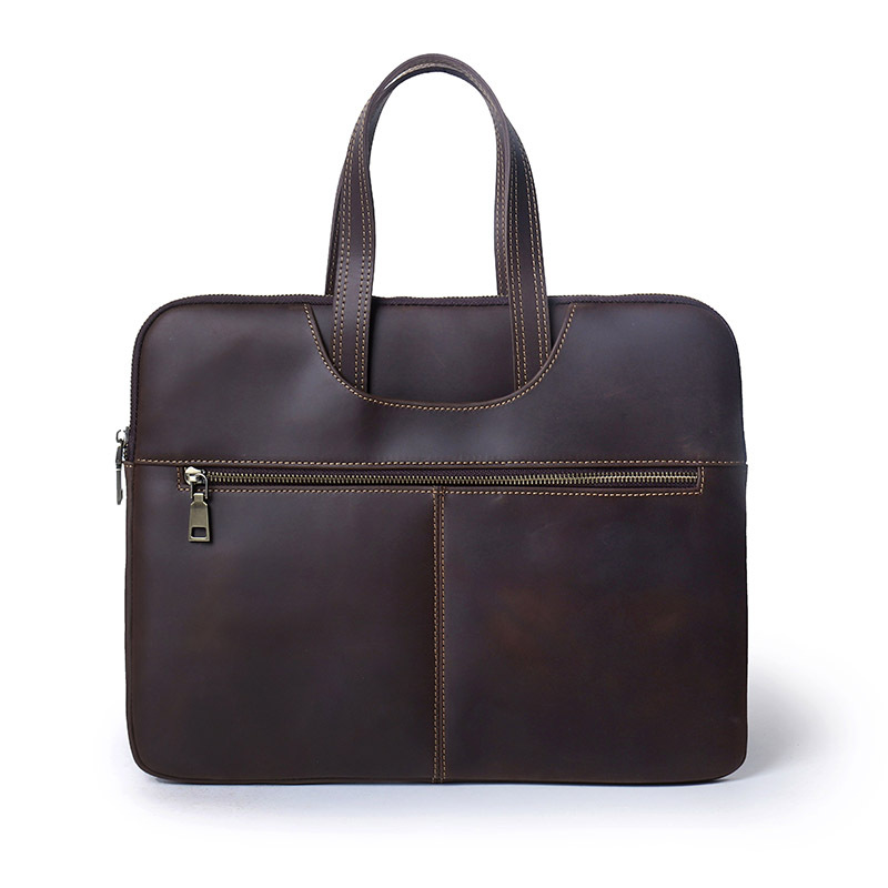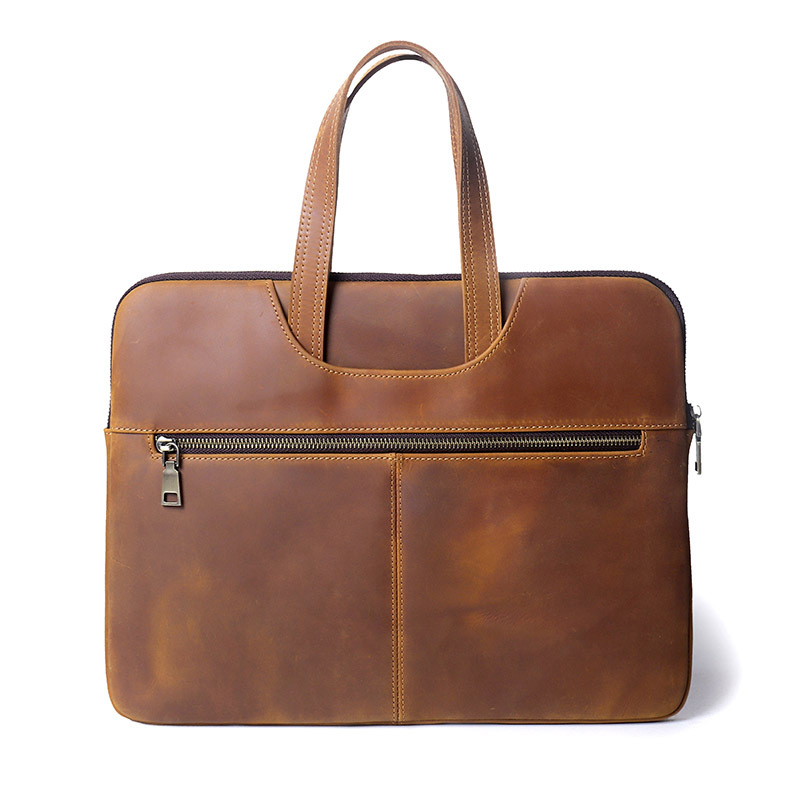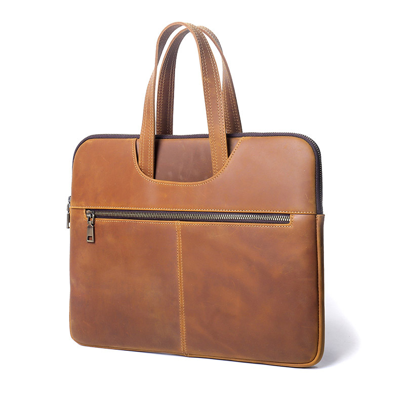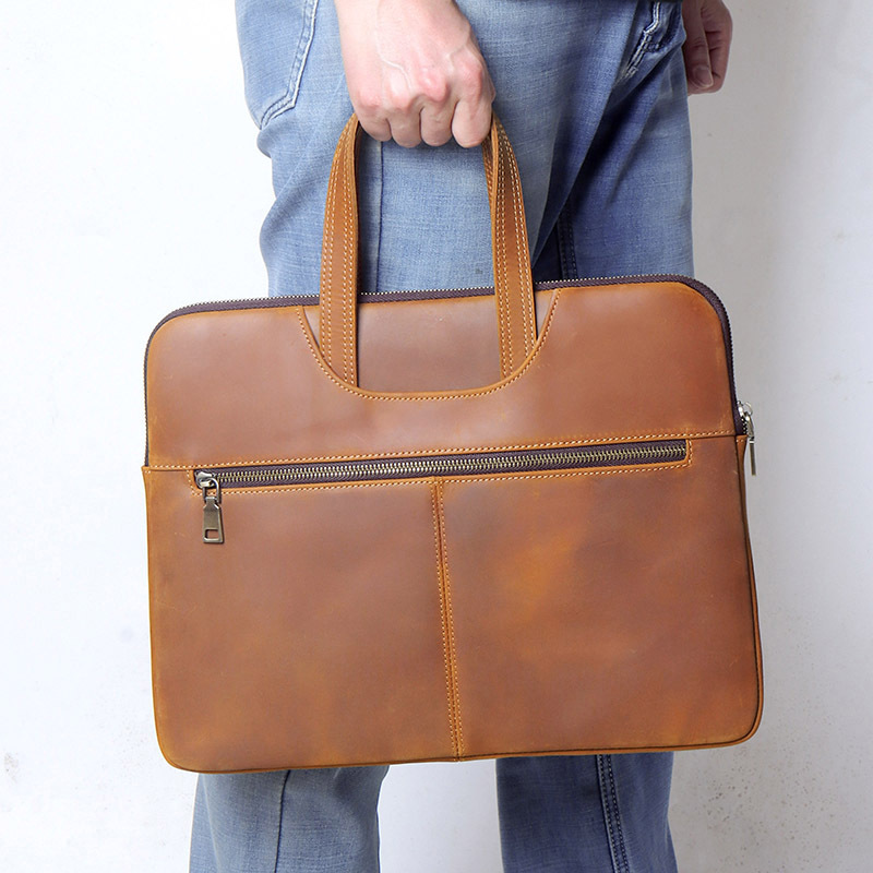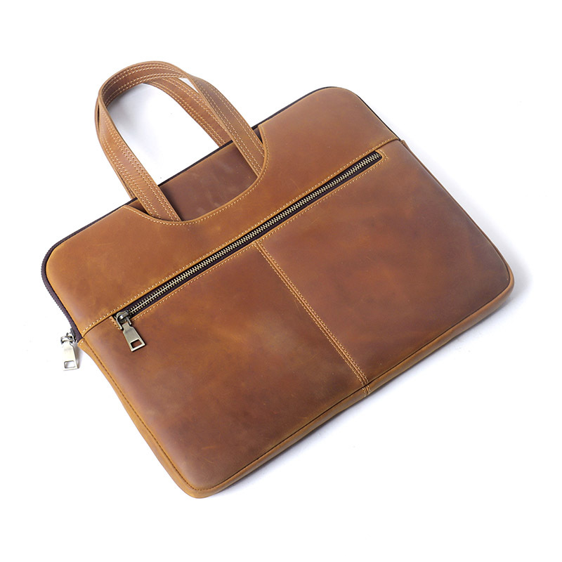 미친 말 가죽 노트북 케이스 15 인치 지퍼 태블릿 가방 비즈니스 사무실 노트북 가방스토어 가기