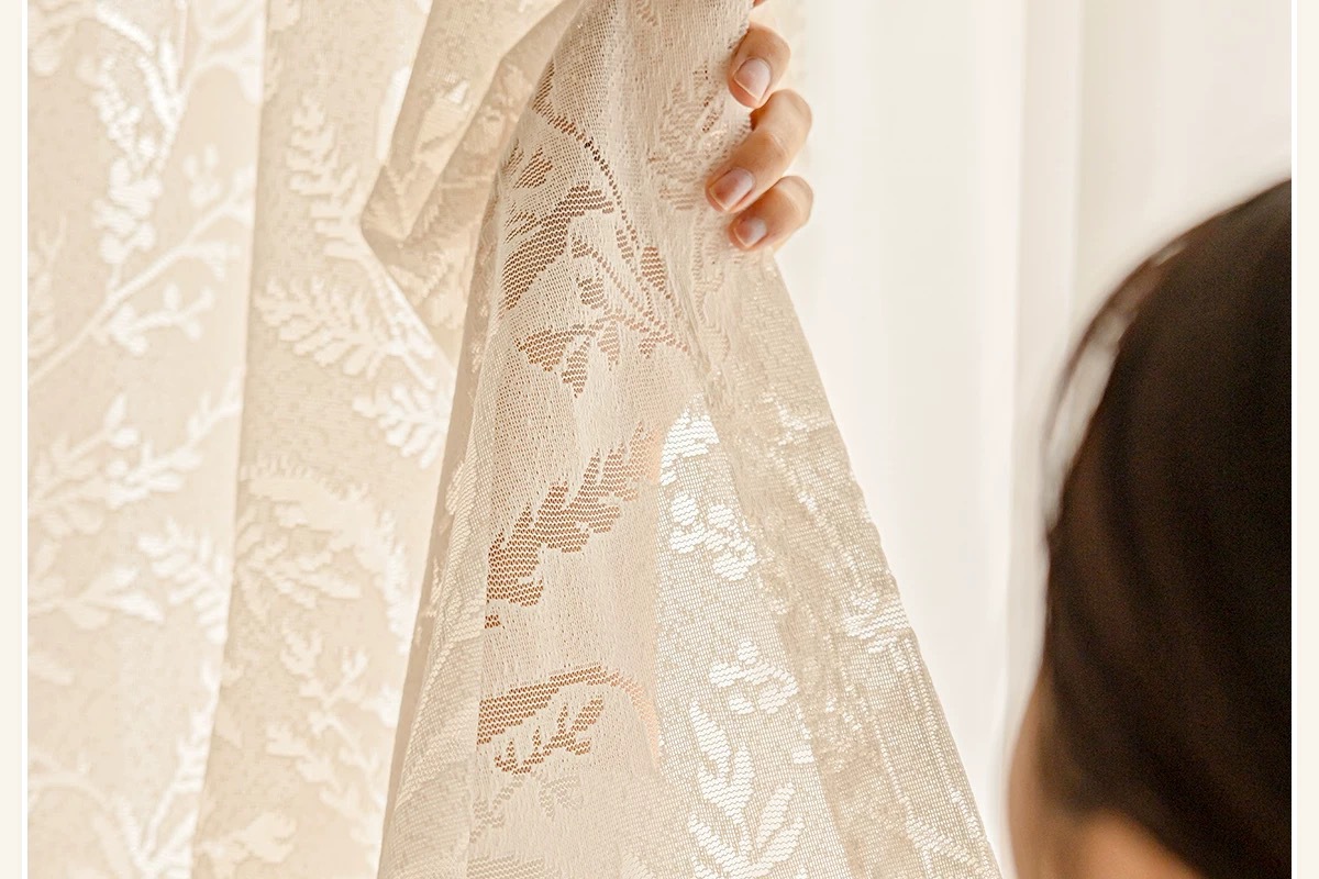문지 그림자 커튼 프랑스 고급 중공 새 스타일 발코니 거실 창 스크린은 빛을 투과하지만 크림색은 투명하지 않습니다.스토어 가기