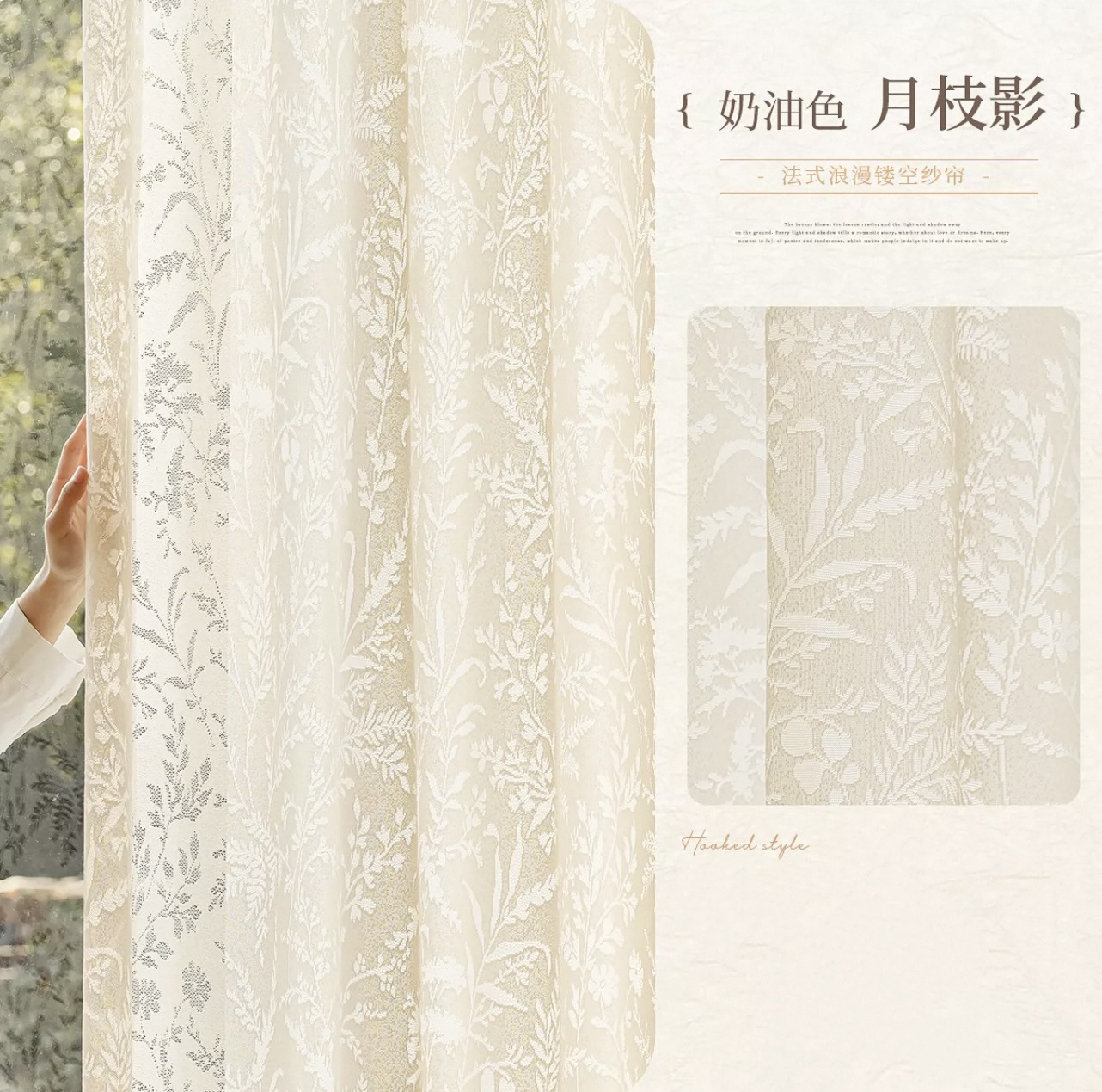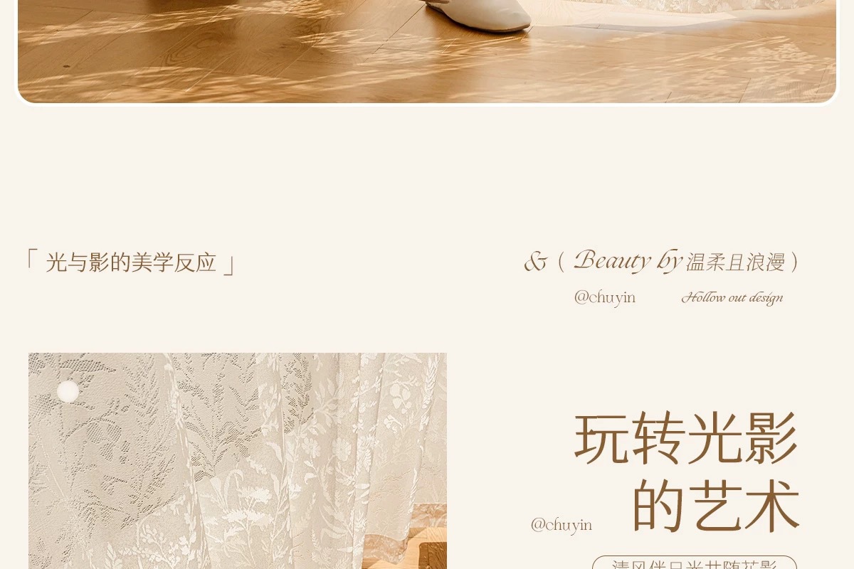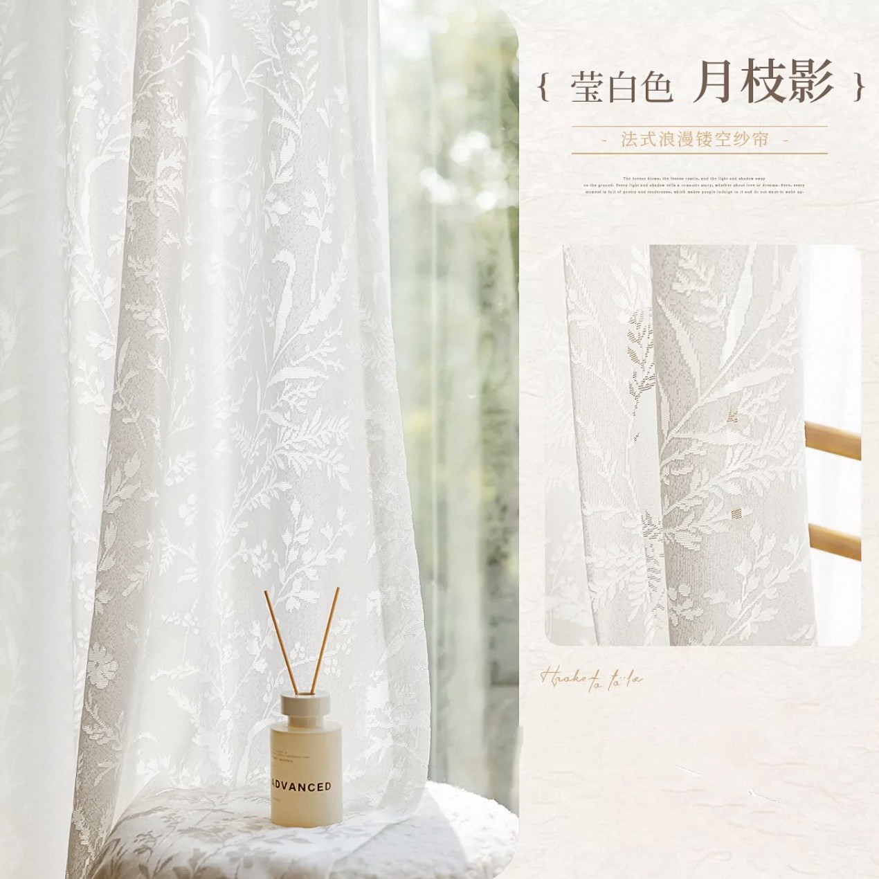 문지 그림자 커튼 프랑스 고급 중공 새 스타일 발코니 거실 창 스크린은 빛을 투과하지만 크림색은 투명하지 않습니다.