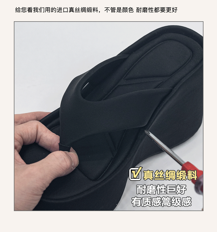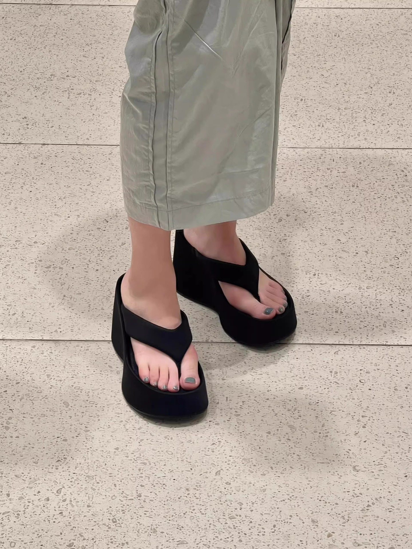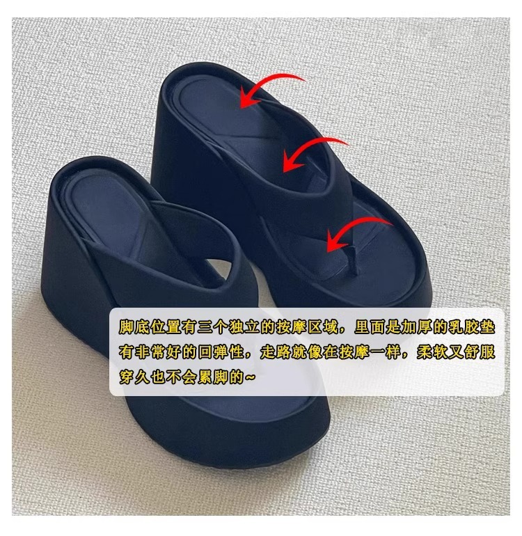 2025 새로운 스타일 작은 높이 증가 두꺼운 바닥 플립 플롭 여성 여름 외부 착용 핀치 가죽 슬리퍼 웨지 샌들스토어 가기