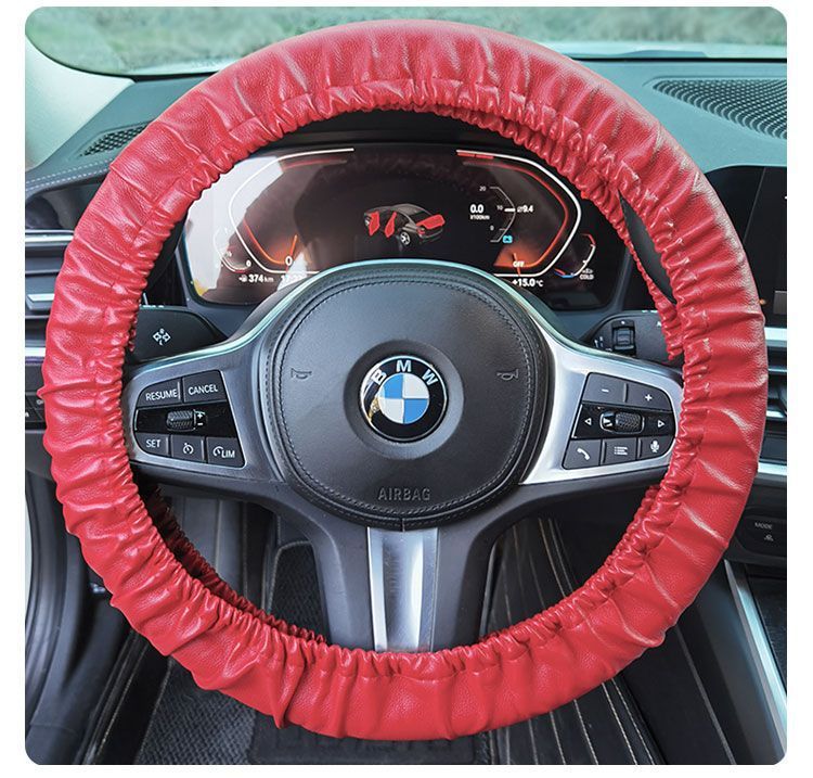 • 빨간색 가죽 스티어링 휠 커버 5개
