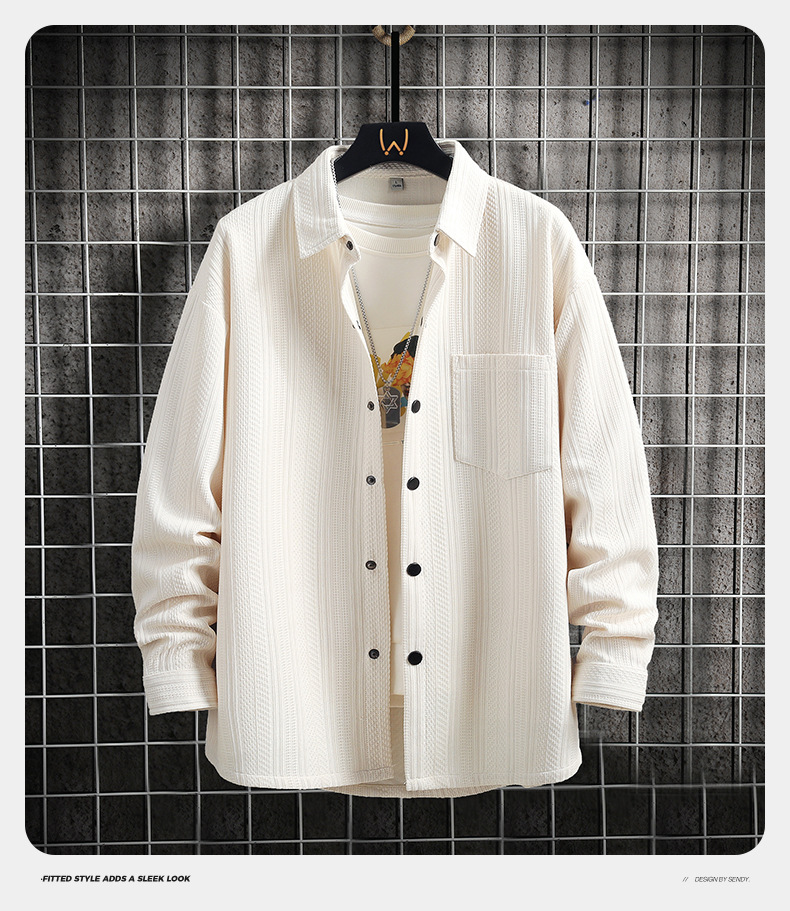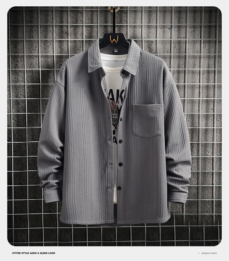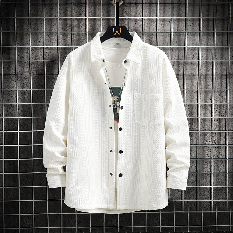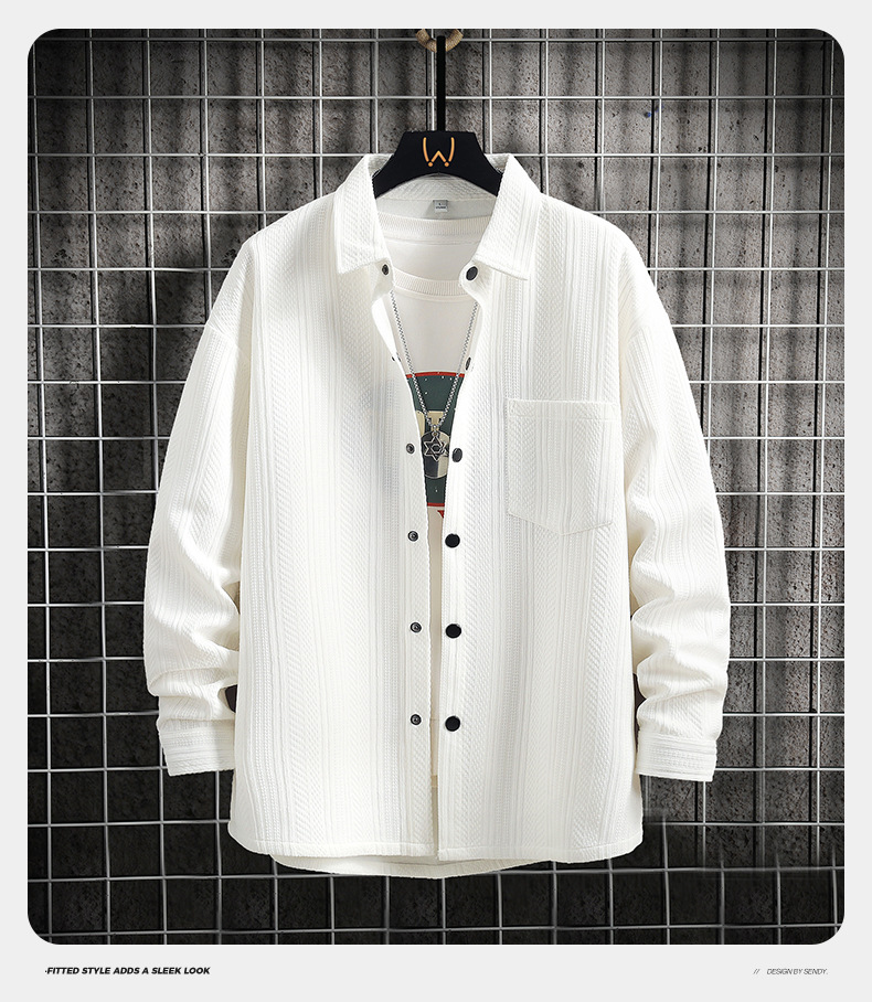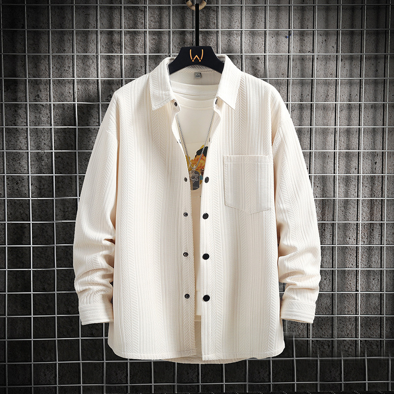 2025 새로운 봄과 가을 남자의 새로운 셔츠 옷깃 긴 소매 얇은 일본 스타일 올 매치 단색 캐주얼 셔츠