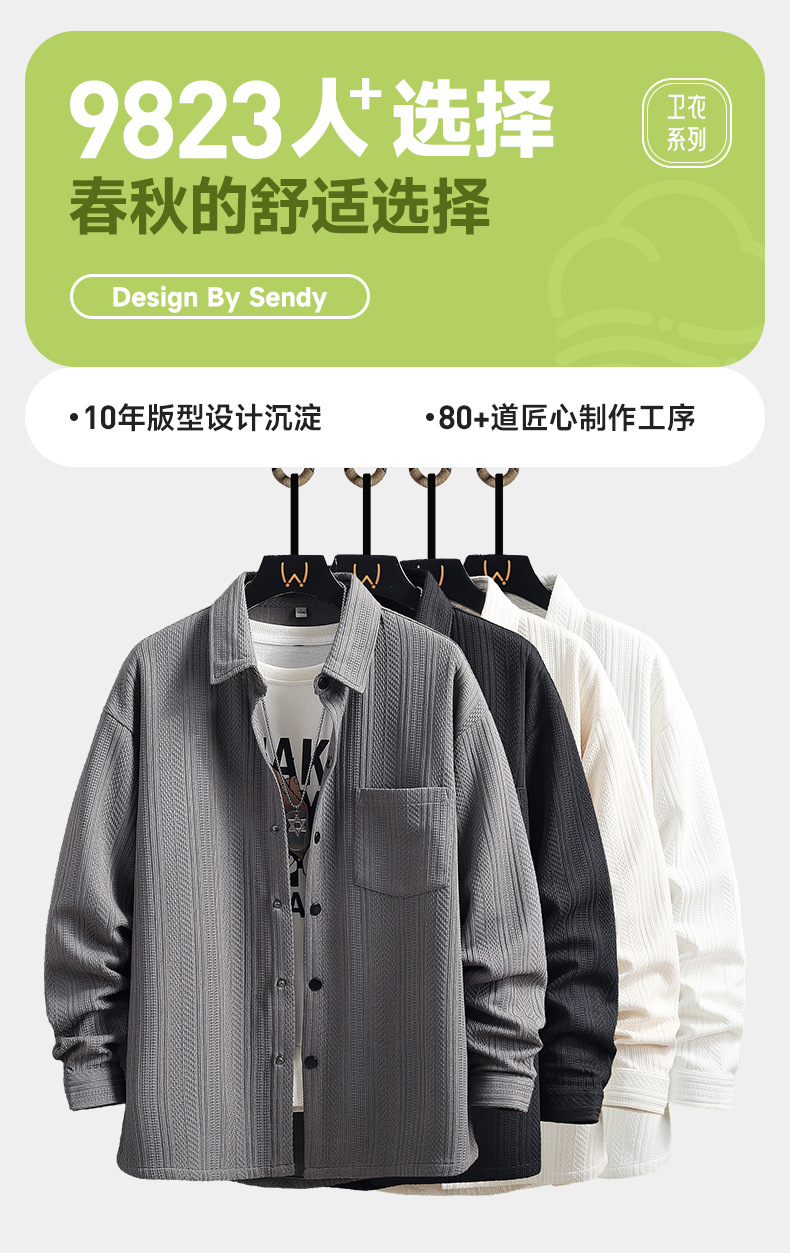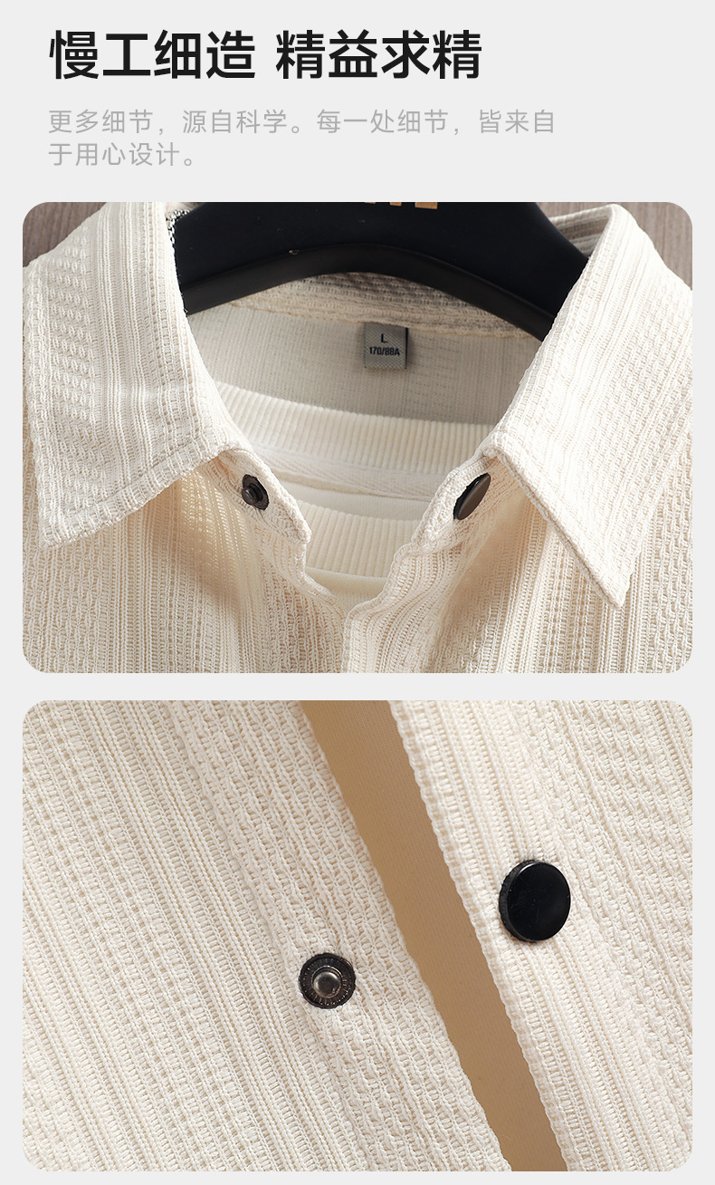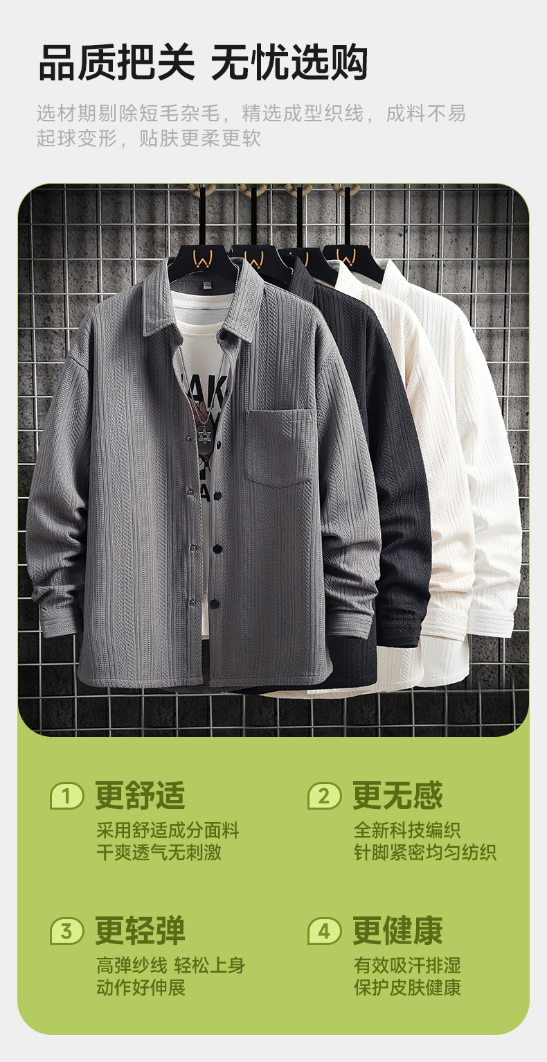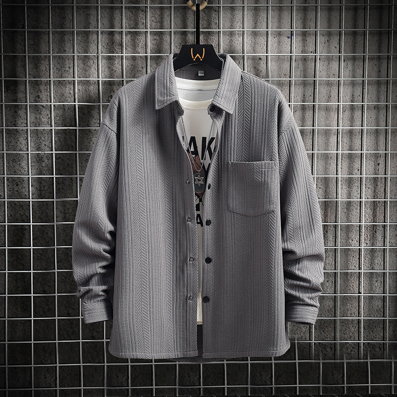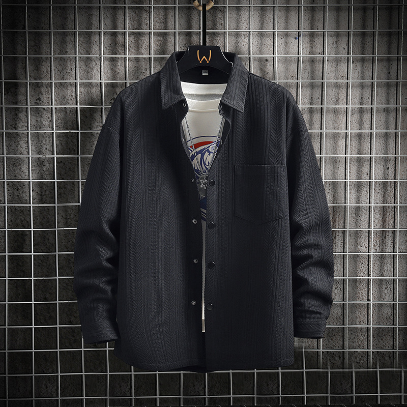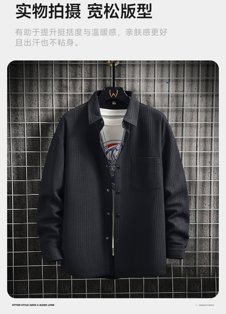 2025 새로운 봄과 가을 남자의 새로운 셔츠 옷깃 긴 소매 얇은 일본 스타일 올 매치 단색 캐주얼 셔츠스토어 가기