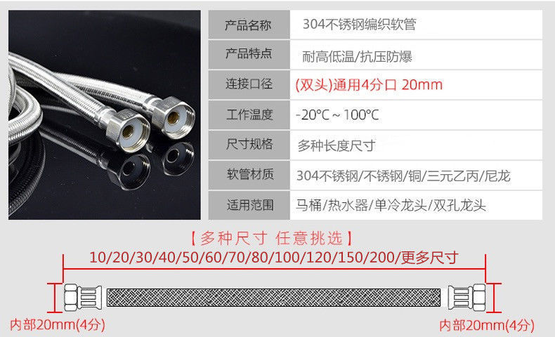 • 순수 강철 와이어 편조, 고압 및 고온 방폭 모델 [스테인리스 캡] - [더 긴 크기를 사용자 정의하려면 고객 서비스에 문의하여 주문하십시오]
