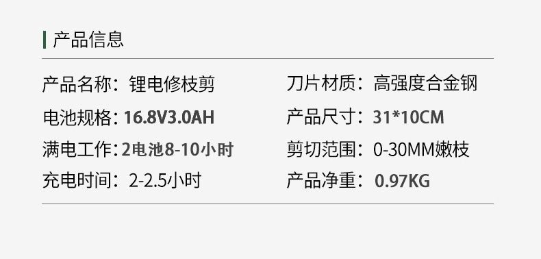 • 3AH 배터리 3개가 포함된 수도관 가위에는 블레이드 허리 가방 1세트가 함께 제공됩니다.