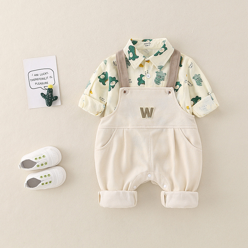 2025 봄 새 아기 아기 세트 아기 서양 스타일 귀여운 멜빵 셔츠 두 조각스토어 가기