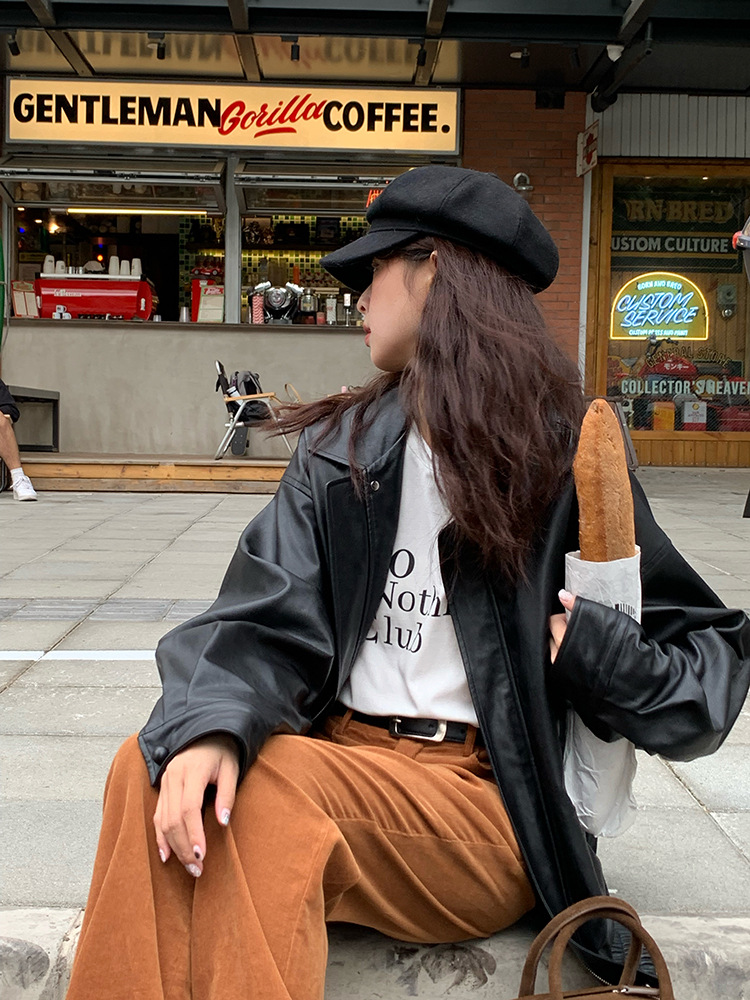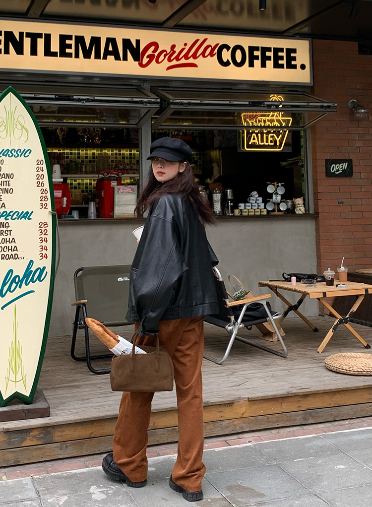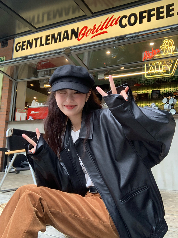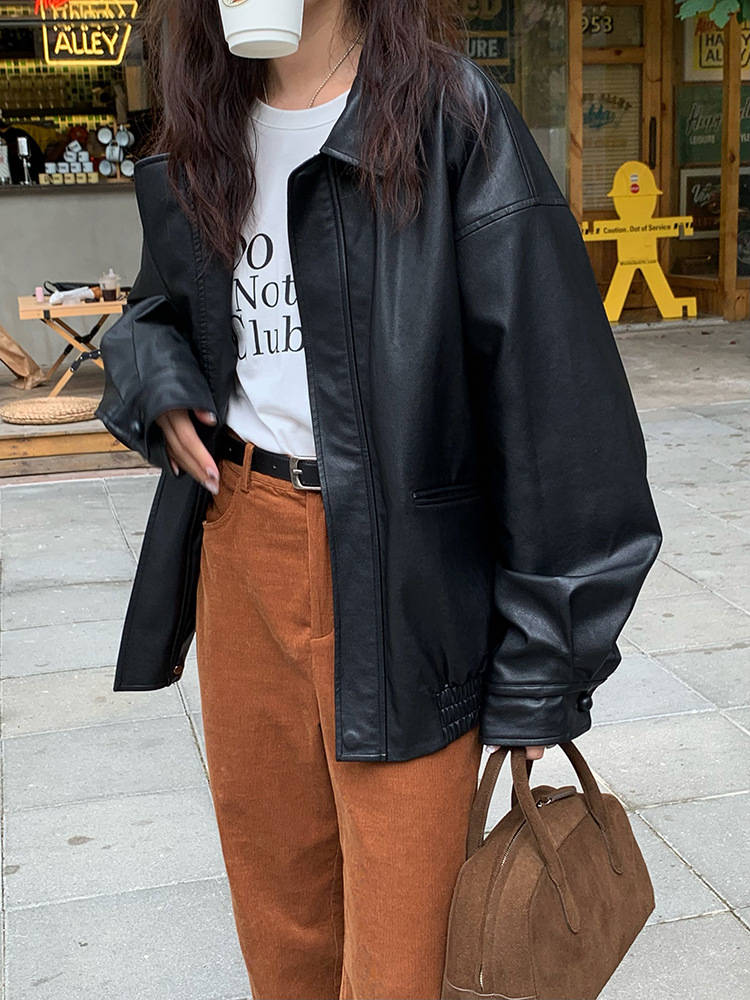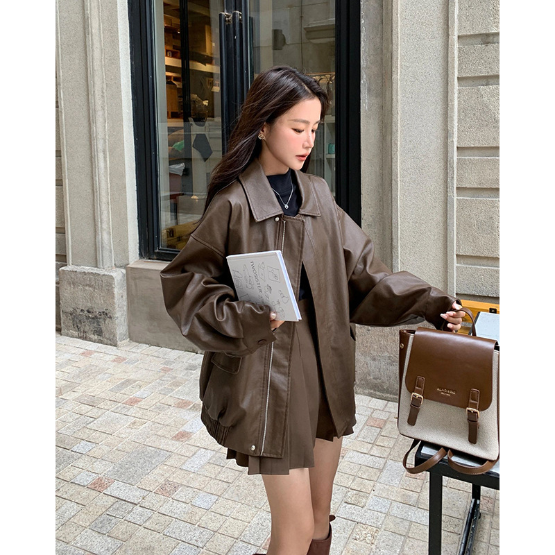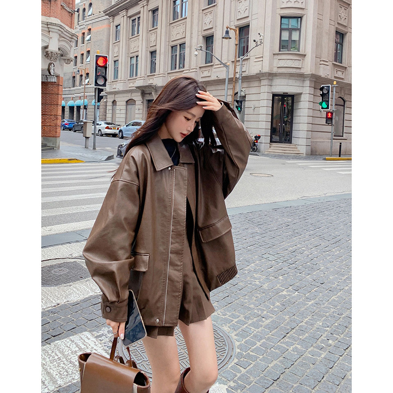 Maillard 코트 여성의 봄과 가을 2025 새로운 폭발 다크 브라운 가죽 누빔안감 pu 가죽 자켓 탑스토어 가기