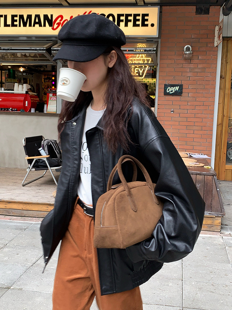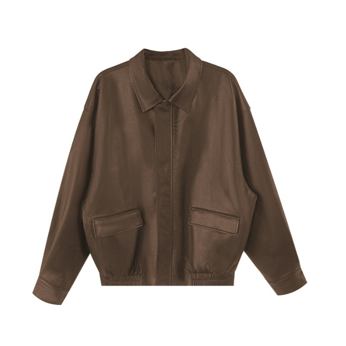 Maillard 코트 여성의 봄과 가을 2025 새로운 폭발 다크 브라운 가죽 누빔안감 pu 가죽 자켓 탑