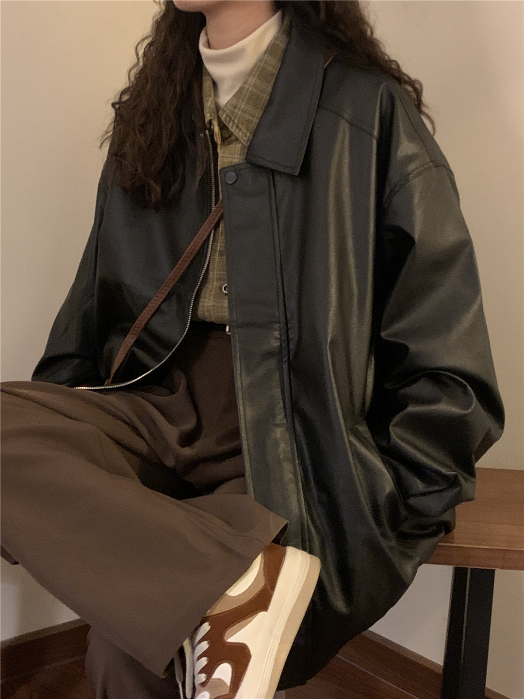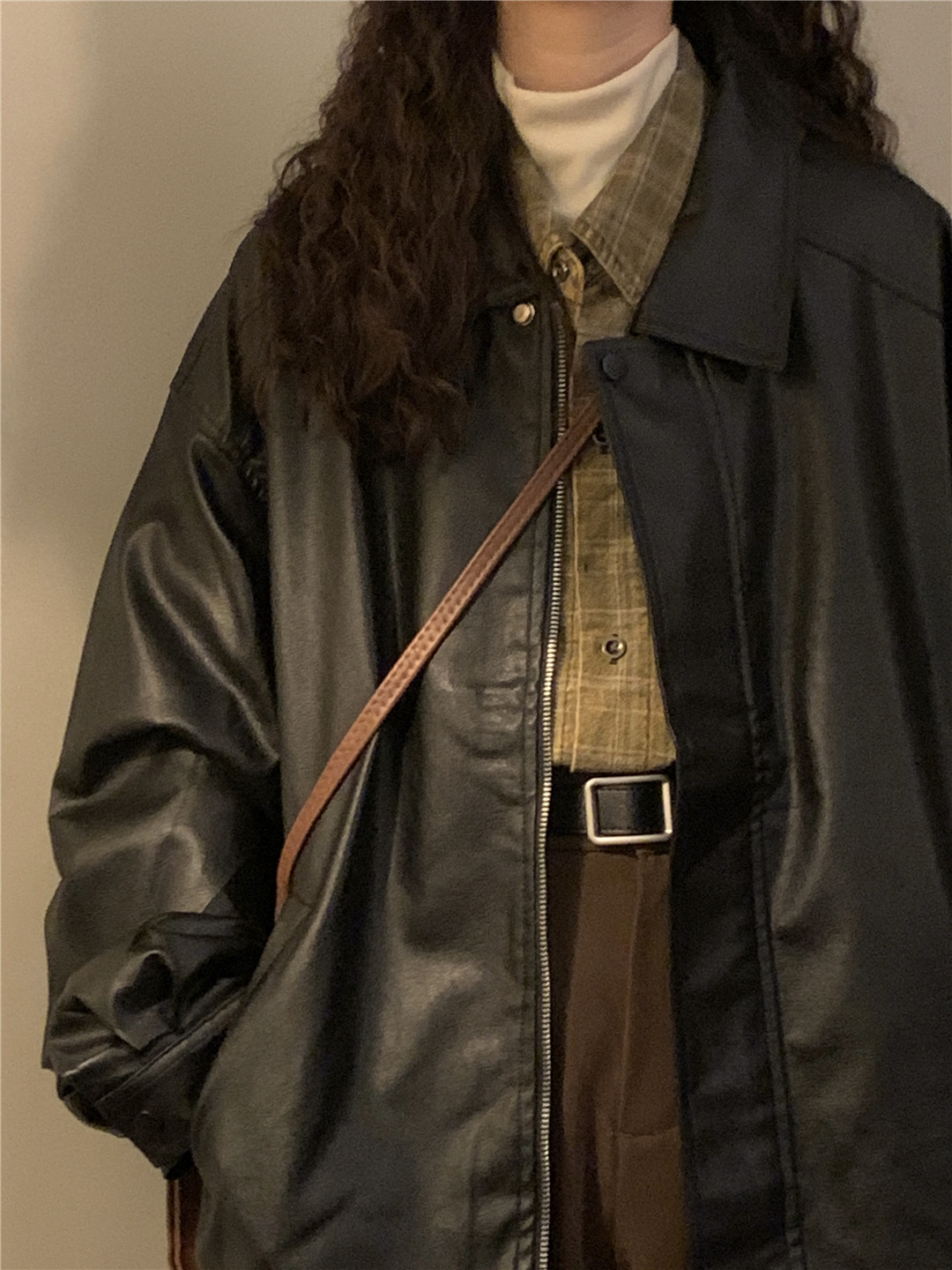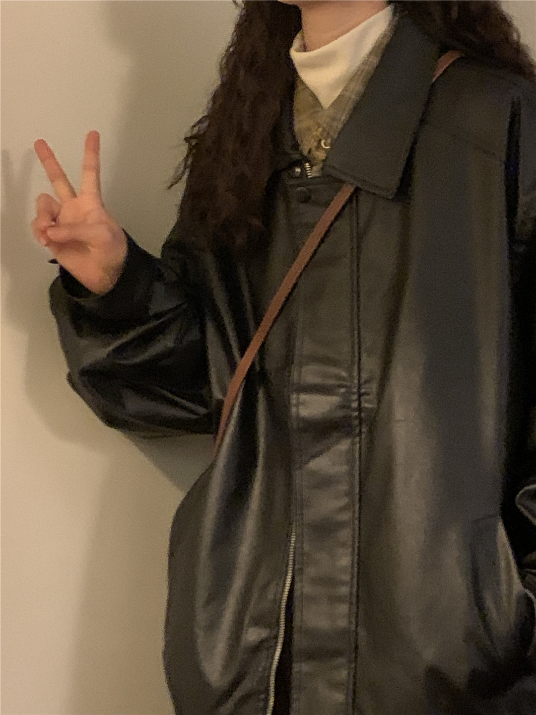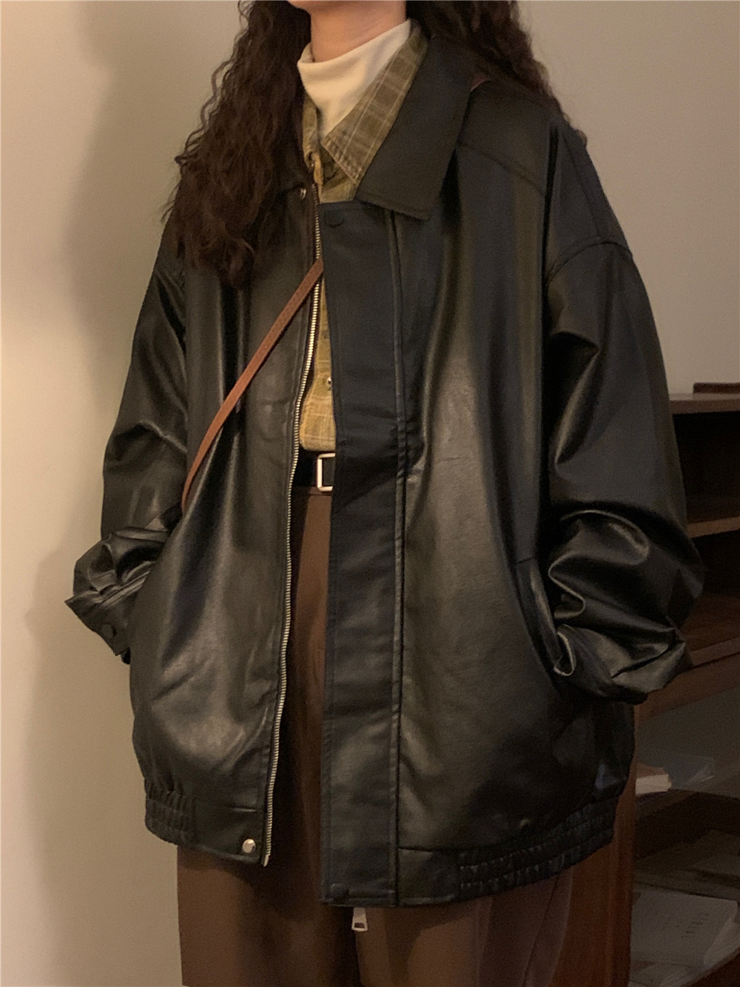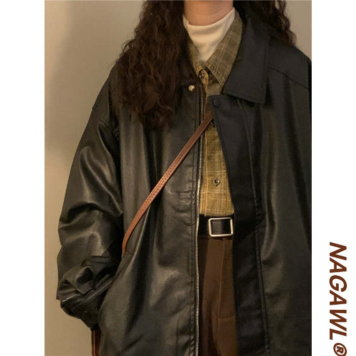 [재고] 봄과 가을 미국 복고풍 패션 브랜드 블랙 PU 가죽 재킷 여성 마일러 캐주얼 오토바이 재킷스토어 가기