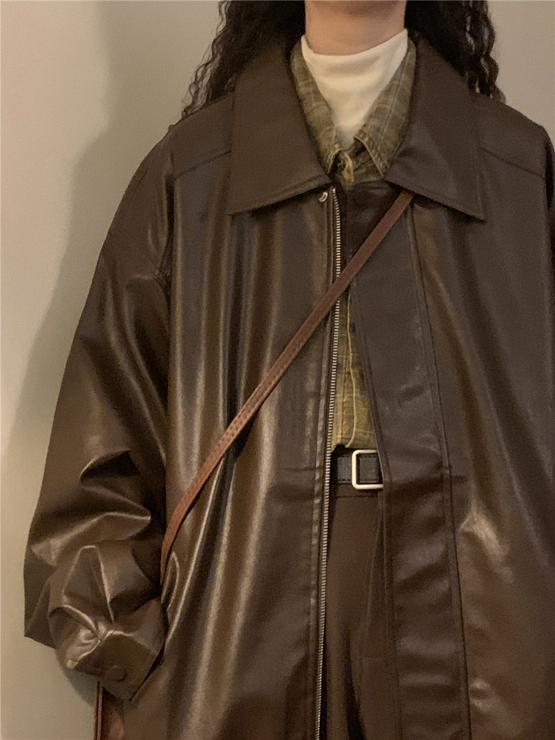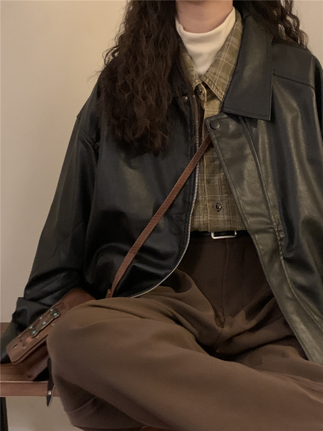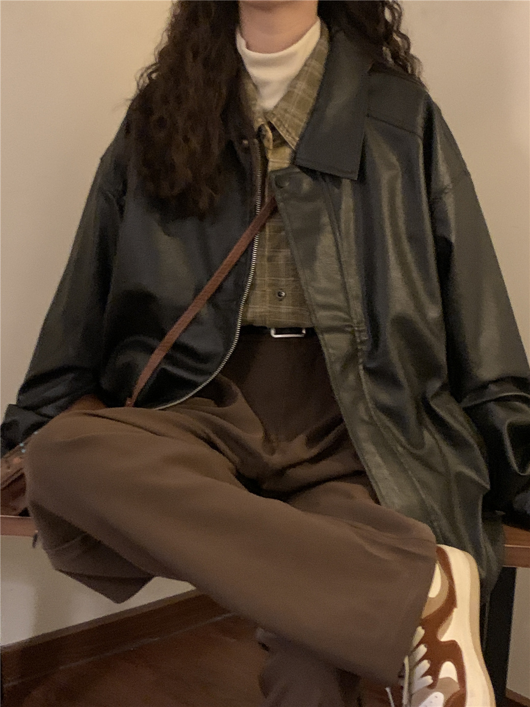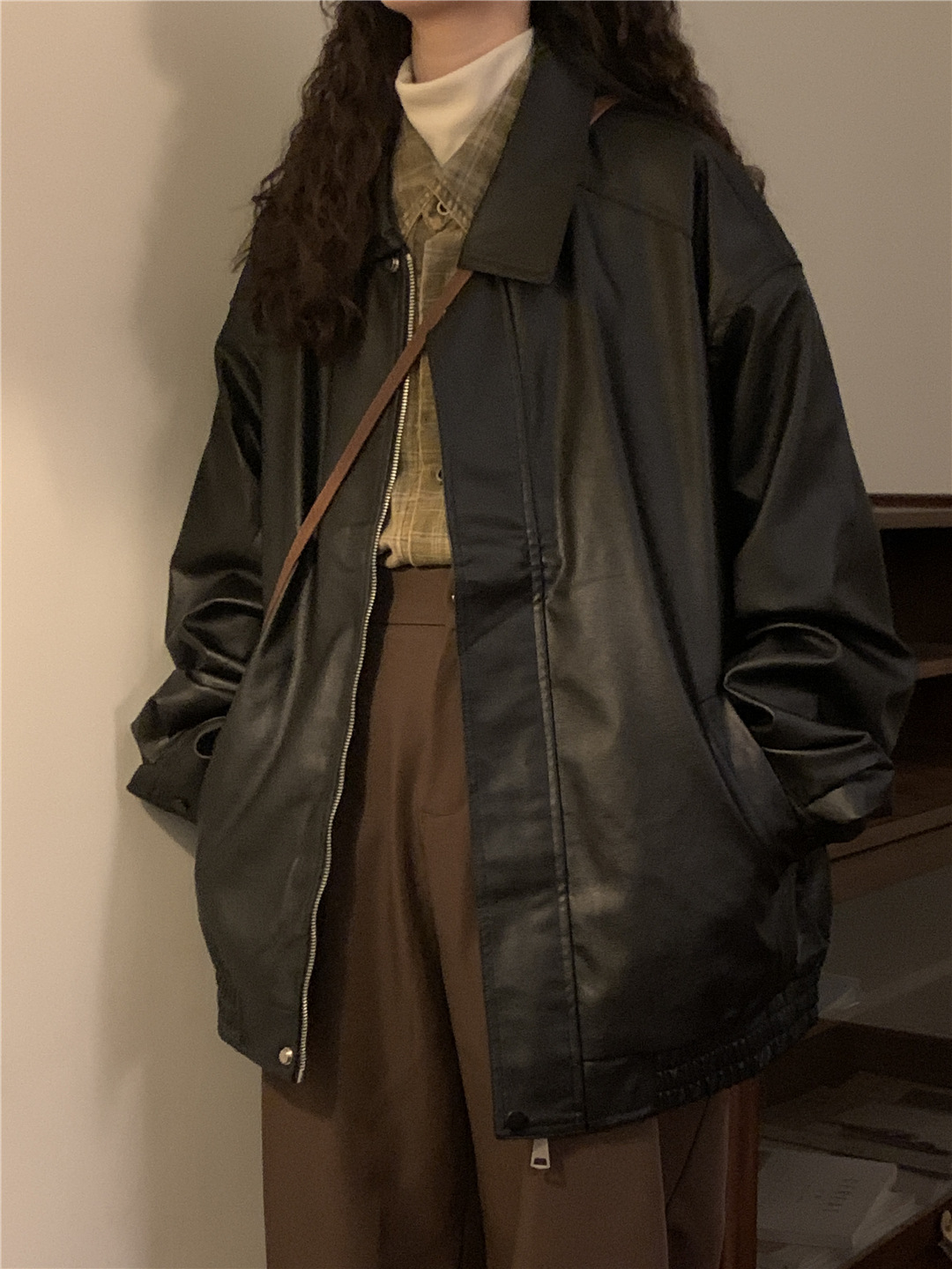 [재고] 봄과 가을 미국 복고풍 패션 브랜드 블랙 PU 가죽 재킷 여성 마일러 캐주얼 오토바이 재킷스토어 가기