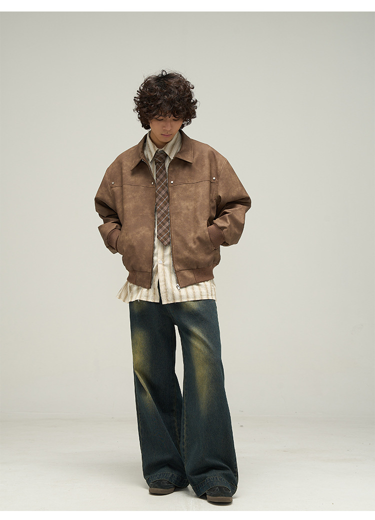 [재고] 매일러드 아메리칸 레트로 다크 브라운 가죽 자켓 남성 패션 하이 엔드 클린핏 자켓 코튼 패딩 재킷