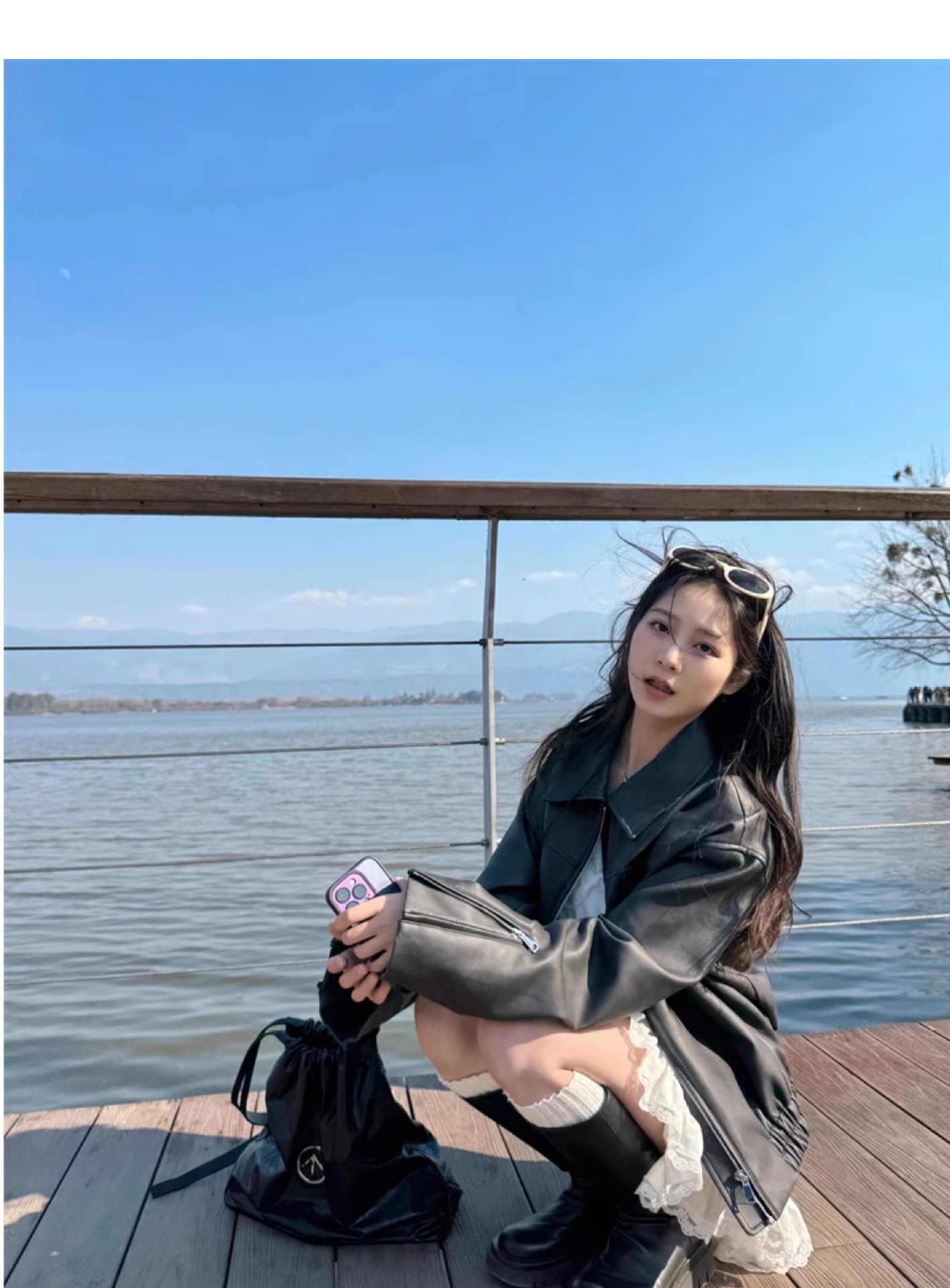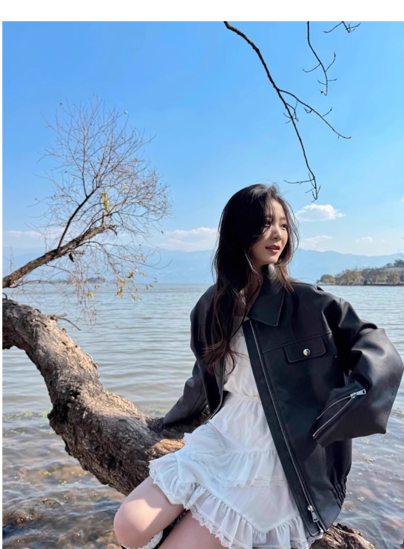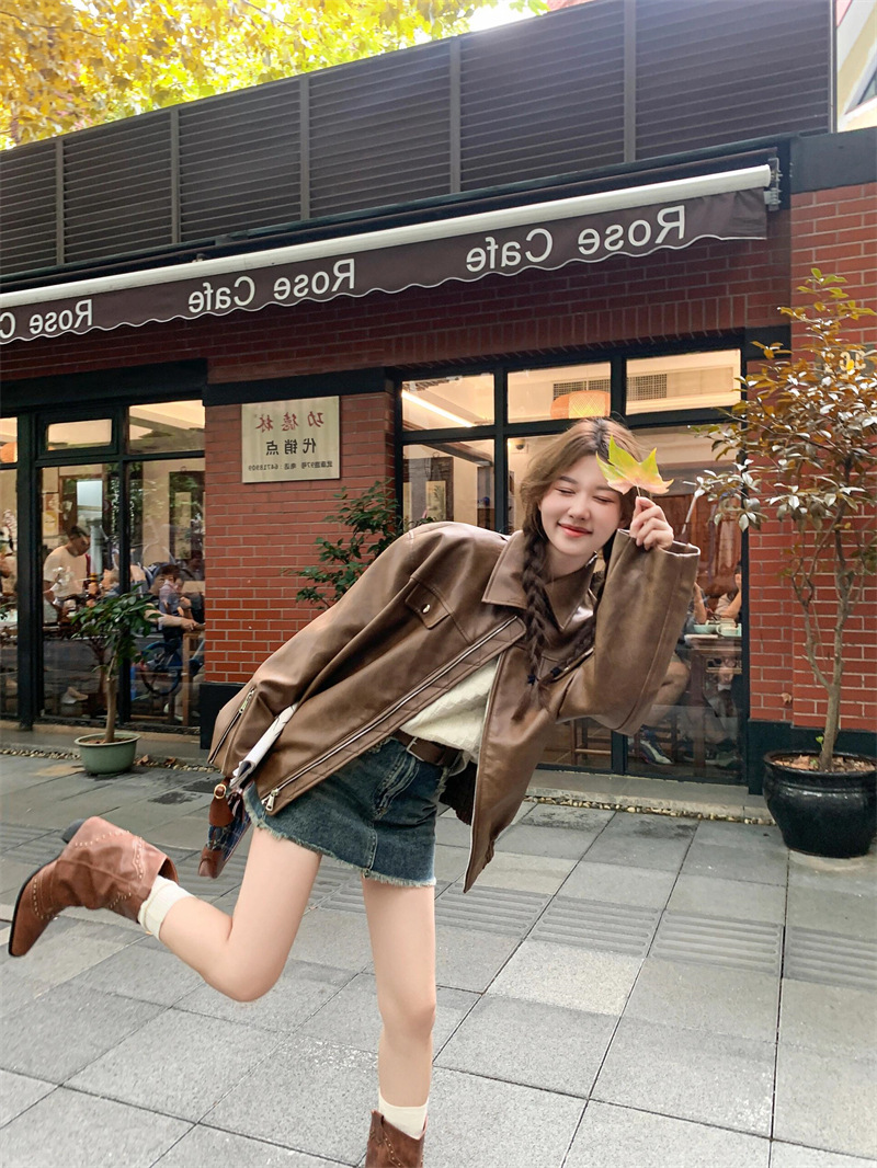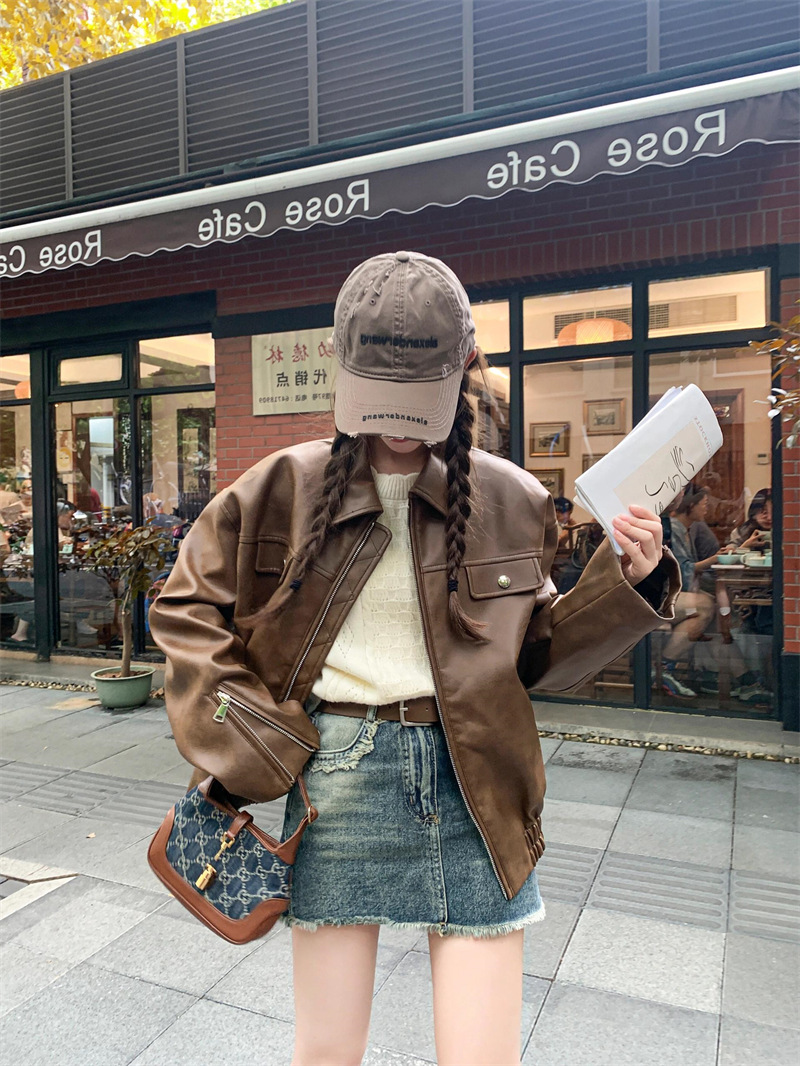 [재고] 2025 봄 가을 미국 레트로 다크 브라운 가죽 자켓 올드 머니 윈드 재킷 여성 마일라드웨어스토어 가기