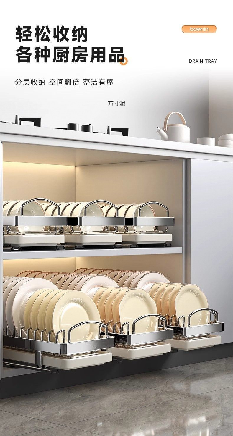 304 스테인레스 스틸 서랍 형 서랍 형 접시 저장 랙 펀치 프리 주방 캐비닛 배수 접시 랙 보관 랙스토어 가기
