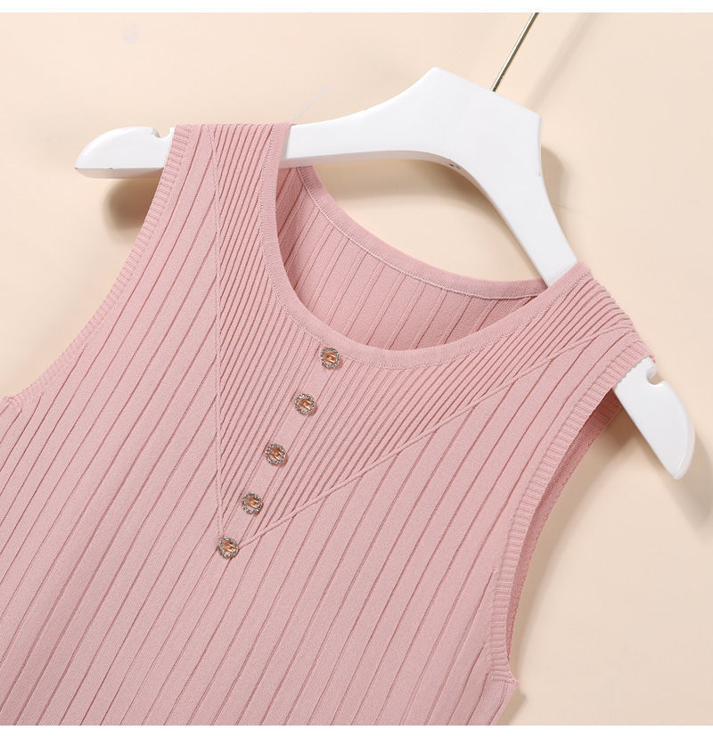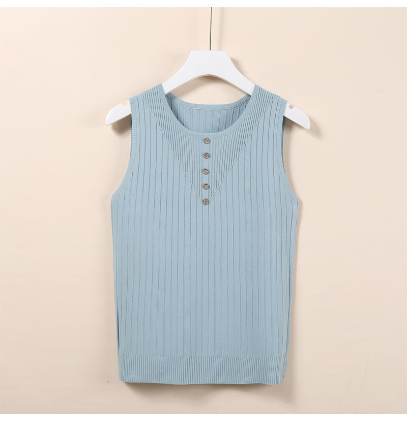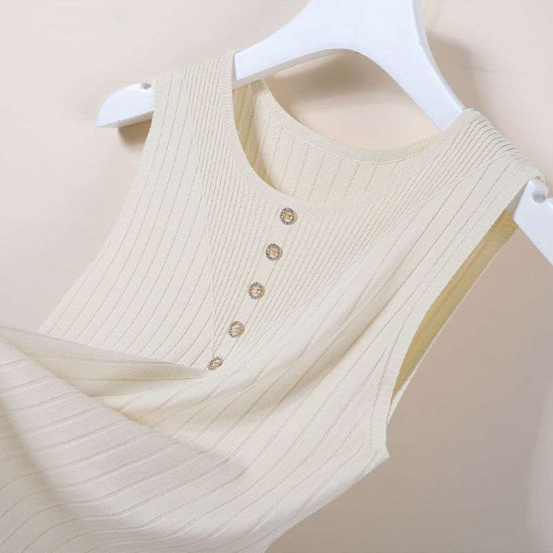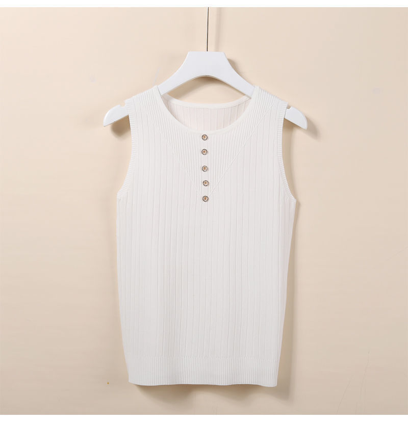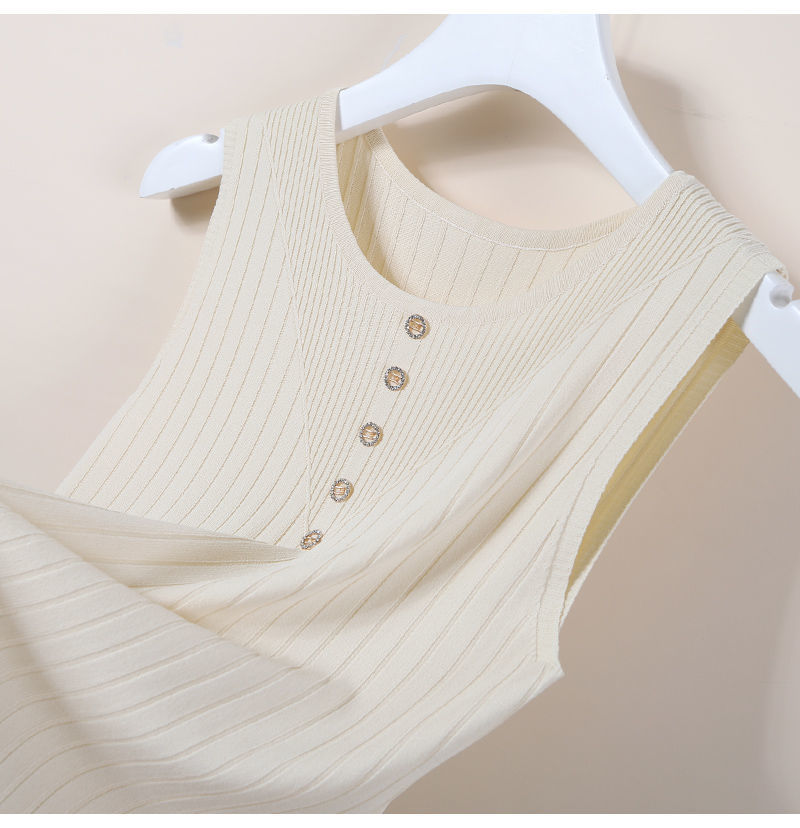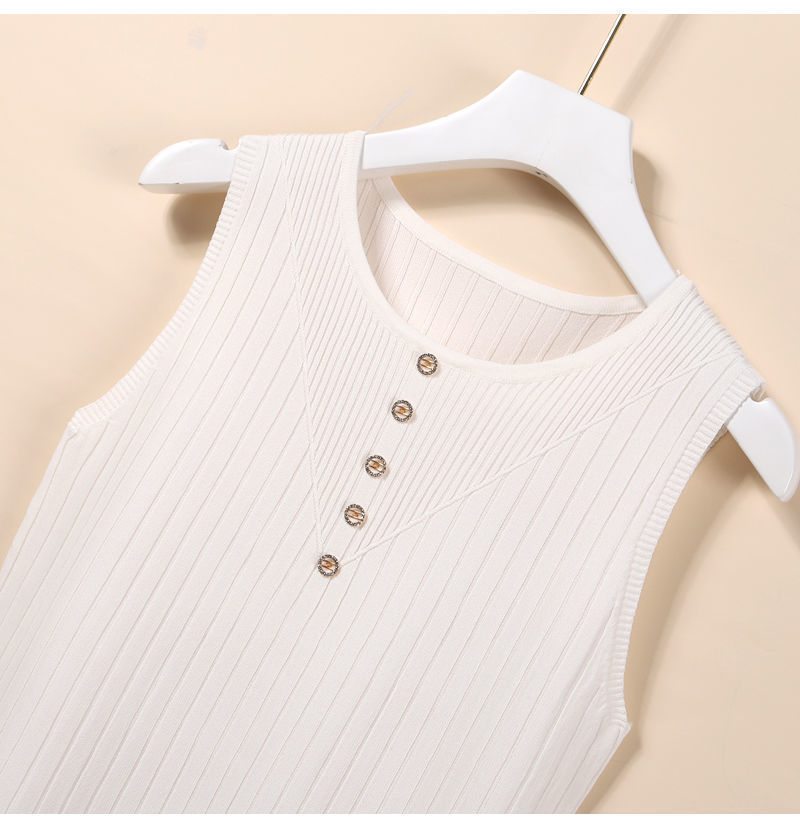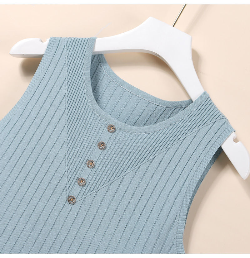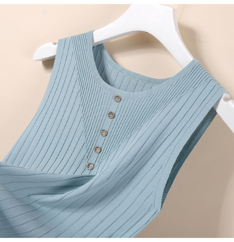 아이스 실크 카미 솔 여자 쇼트 2025 년 여름 새로운 올매치 민소매 니트 보팅 탑 얇은 Ins 트렌디스토어 가기