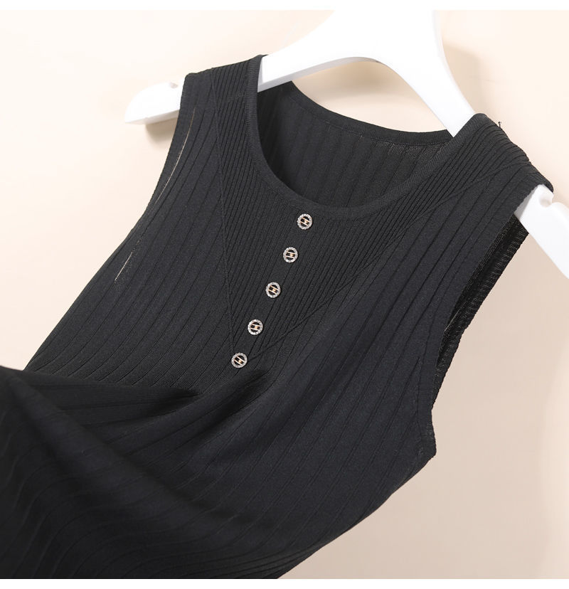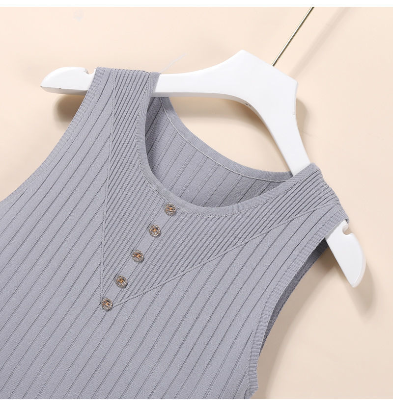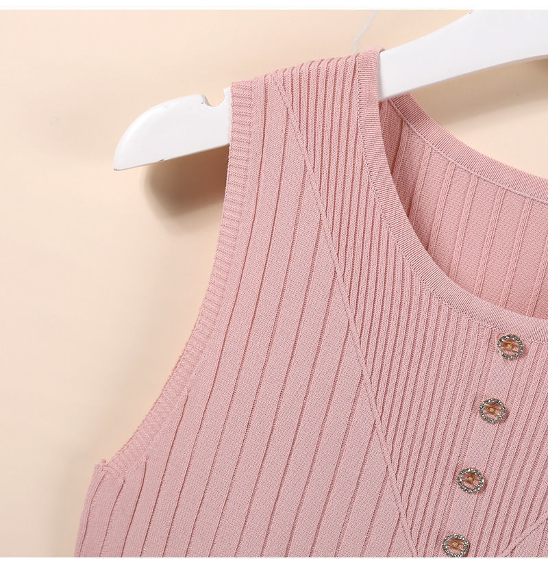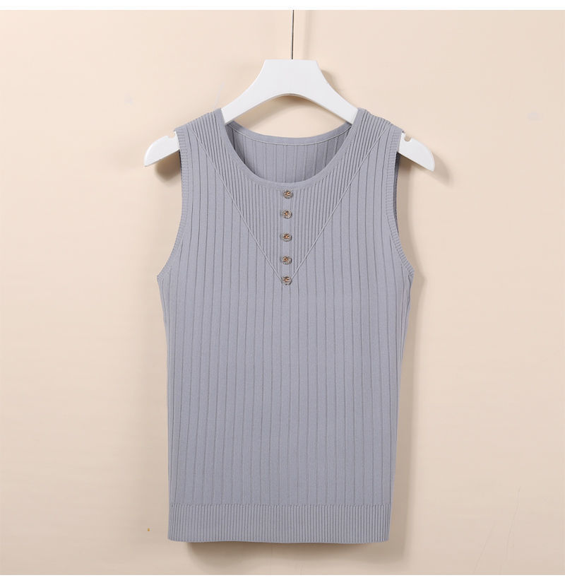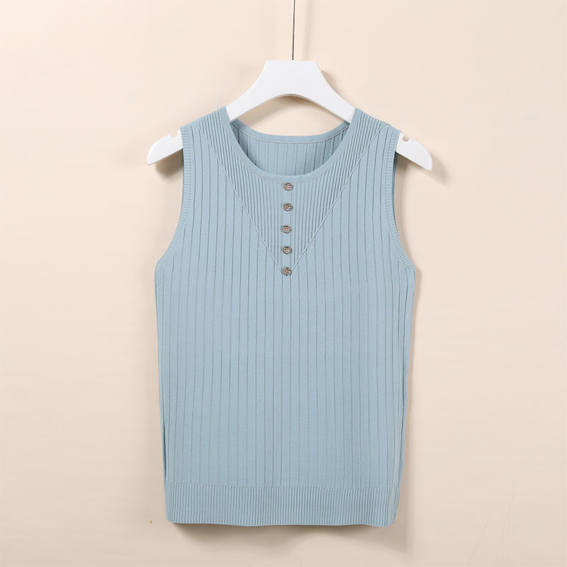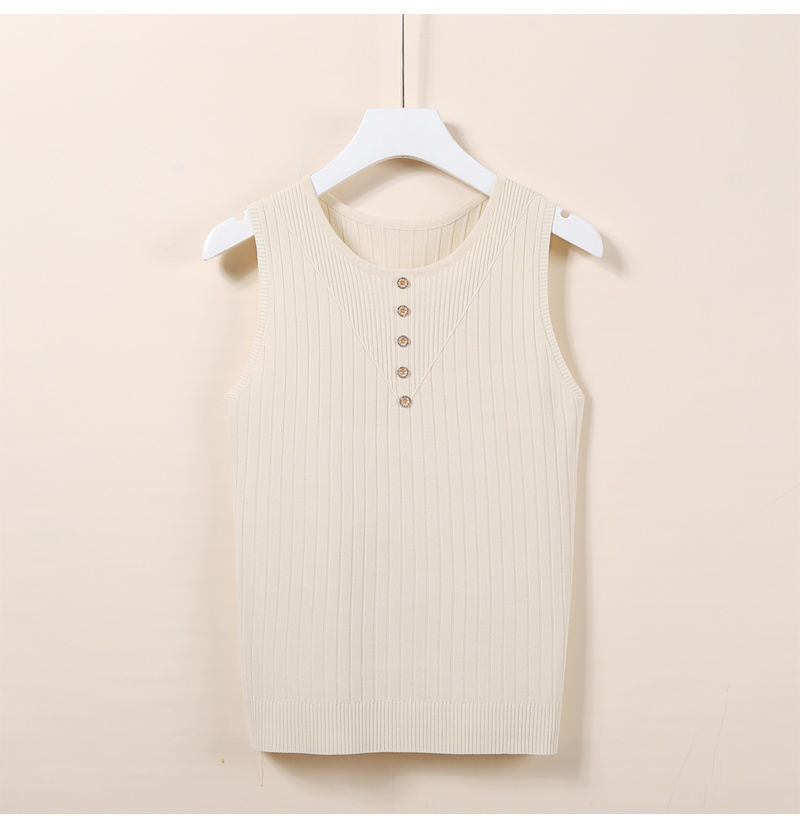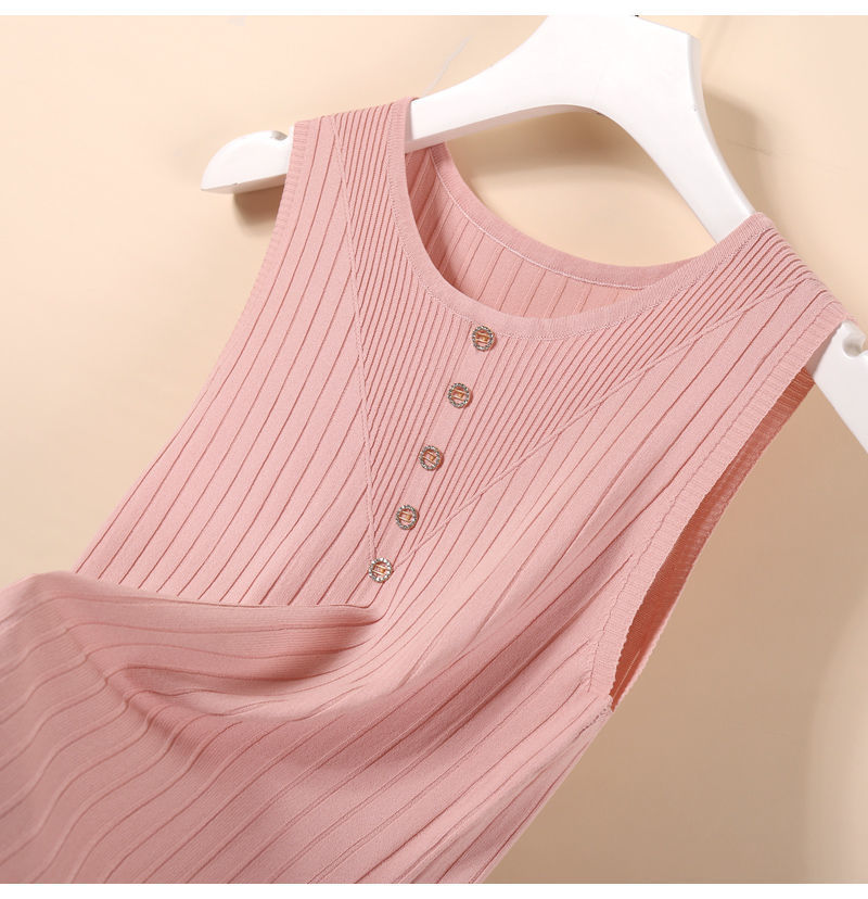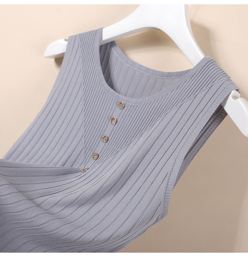 아이스 실크 카미 솔 여자 쇼트 2025 년 여름 새로운 올매치 민소매 니트 보팅 탑 얇은 Ins 트렌디스토어 가기
