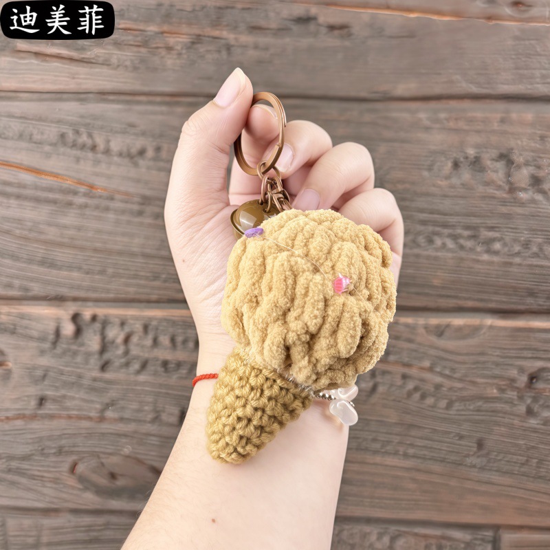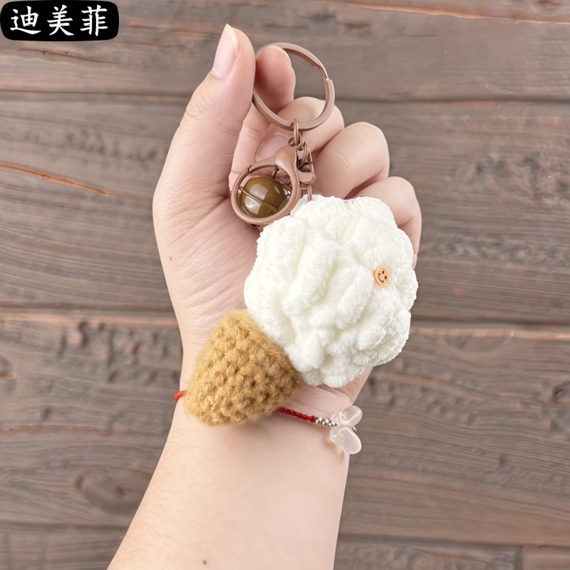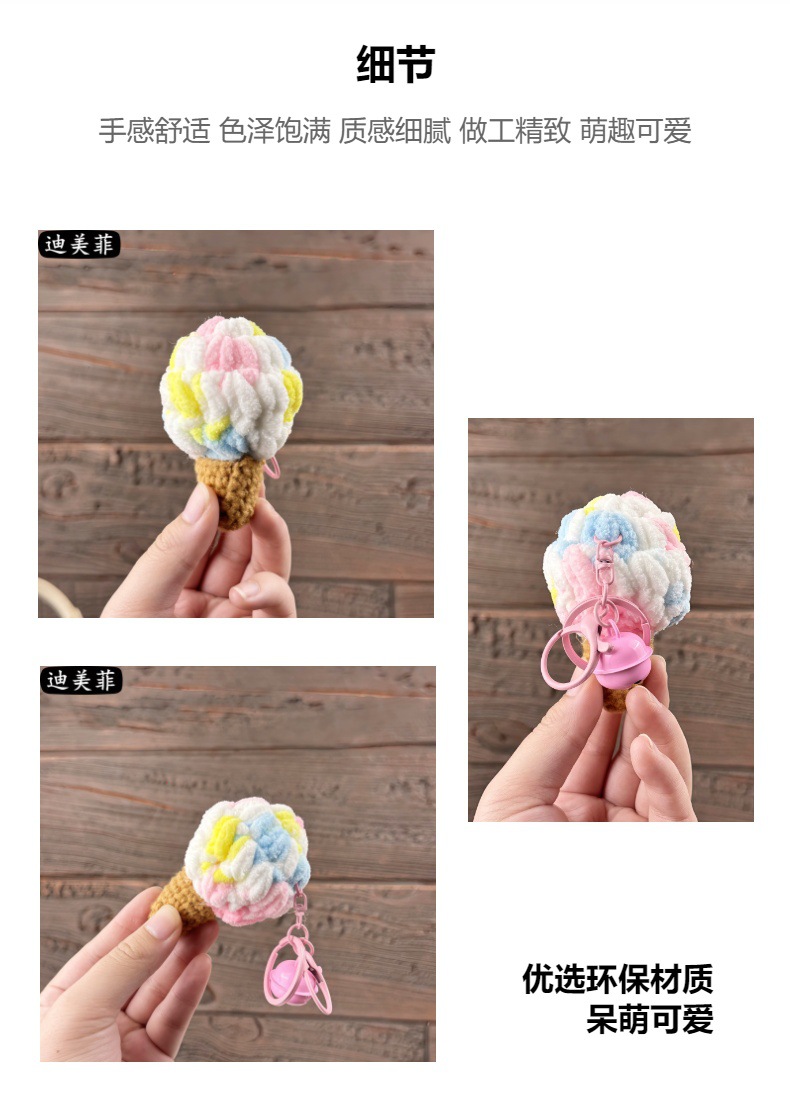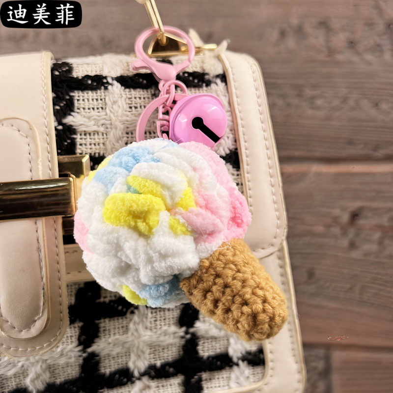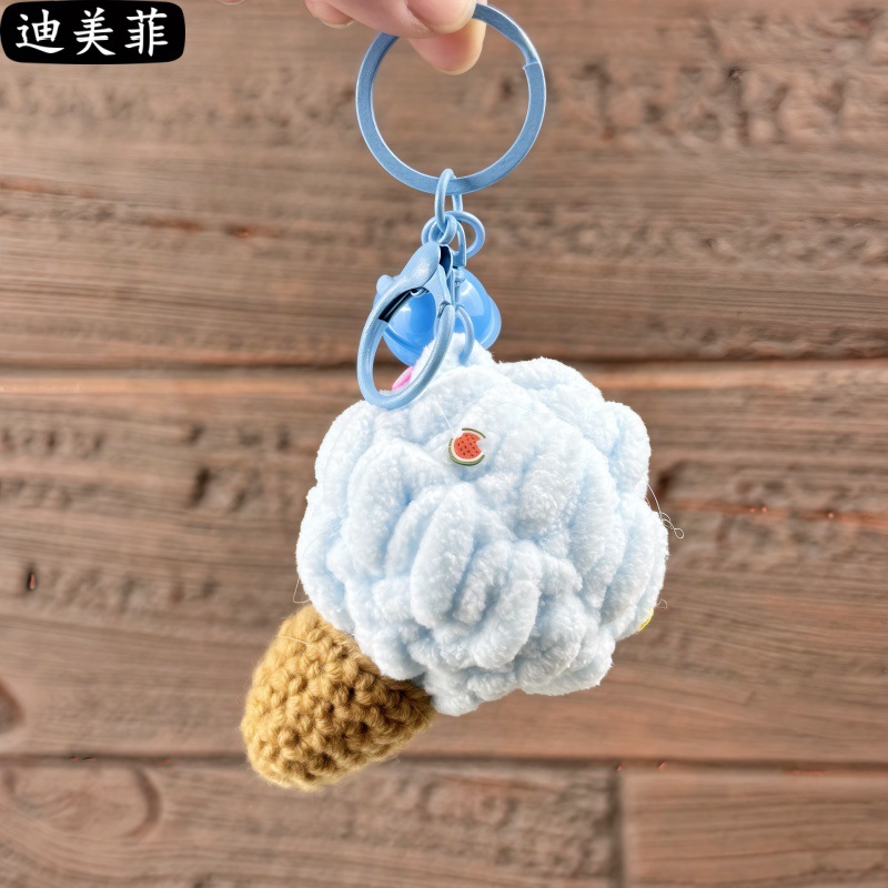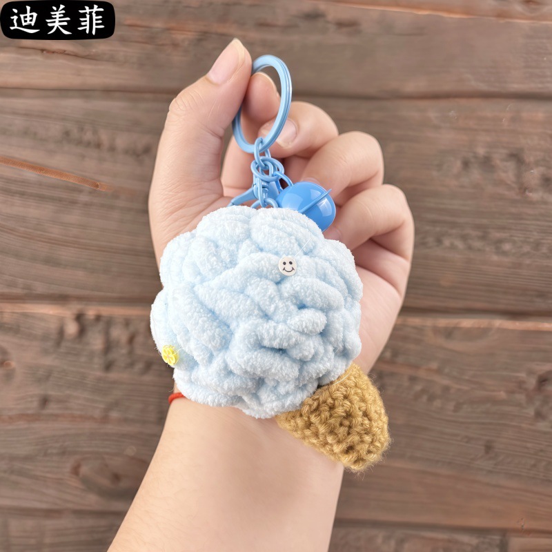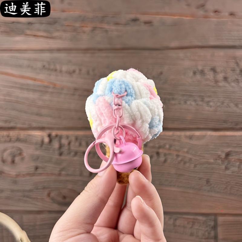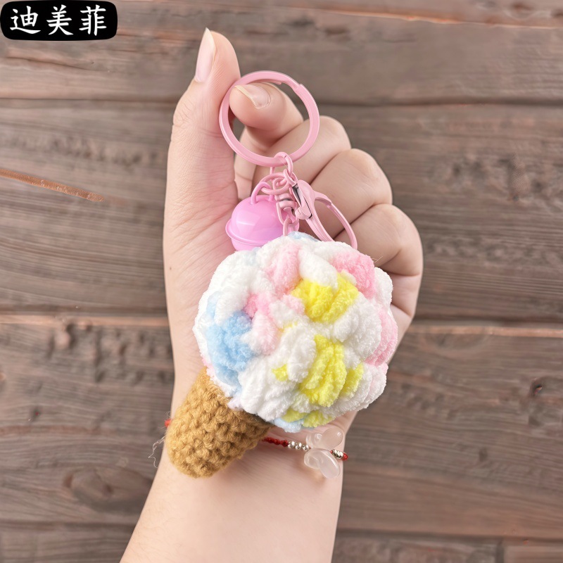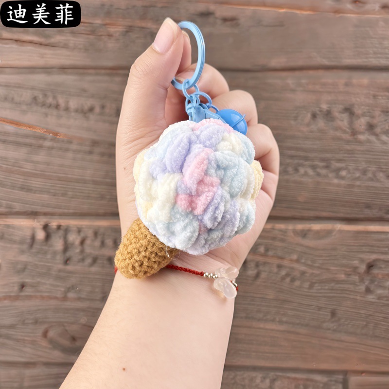 손으로 짠 양모 퍼프 아이스크림 뜨개질 장난감 선물 키 체인 펜던트 절묘한 인형 기계 작은 선물