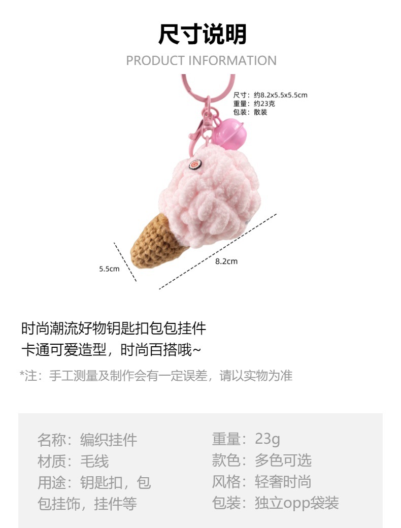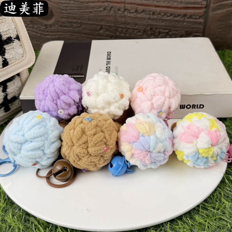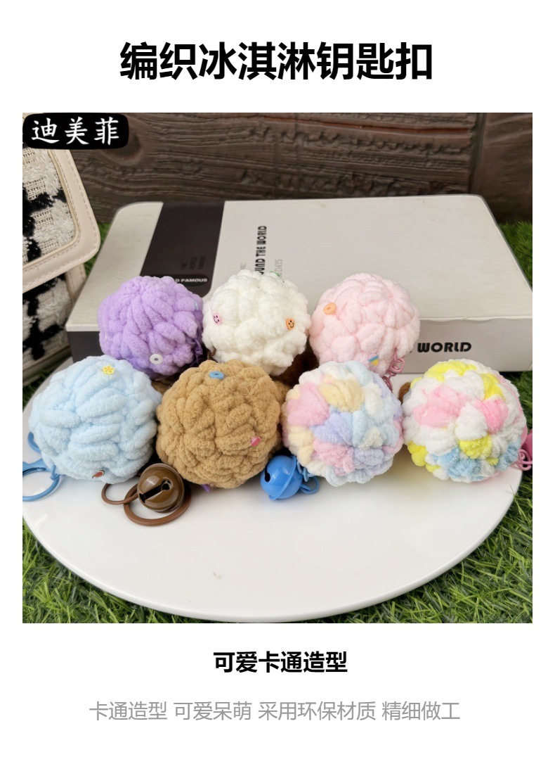 손으로 짠 양모 퍼프 아이스크림 뜨개질 장난감 선물 키 체인 펜던트 절묘한 인형 기계 작은 선물스토어 가기