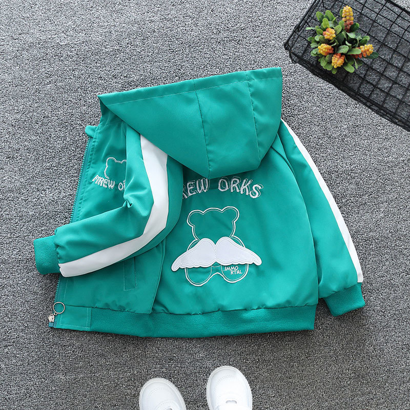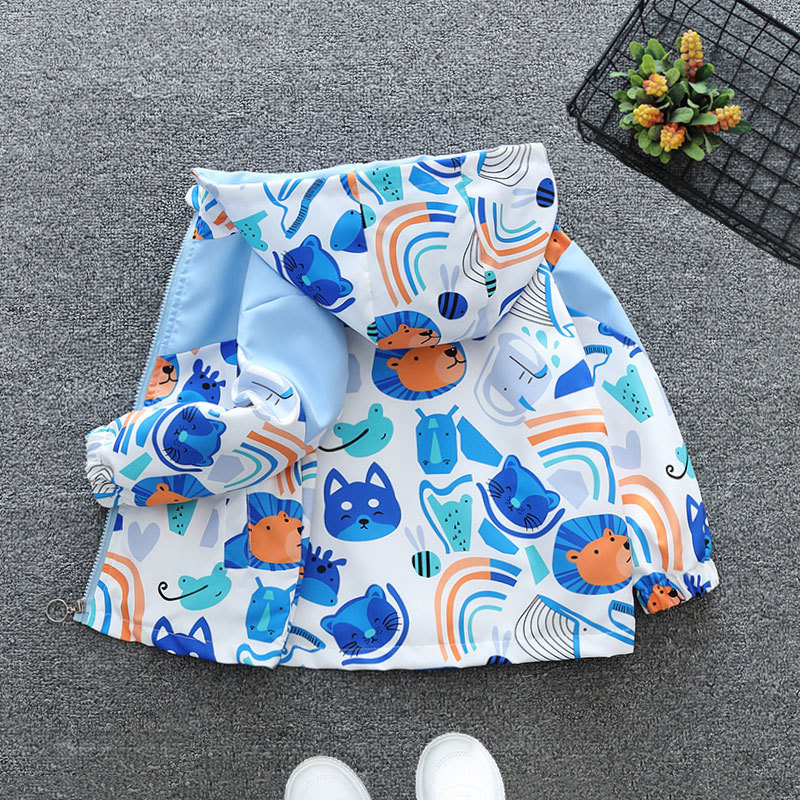 새로운 소년 봄 코트 2025 새로운 서양식 어린이 봄과 가을 코트 어린 소녀의 만화 후드 코트스토어 가기