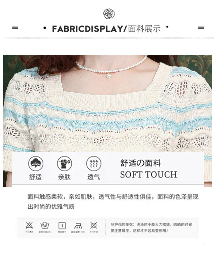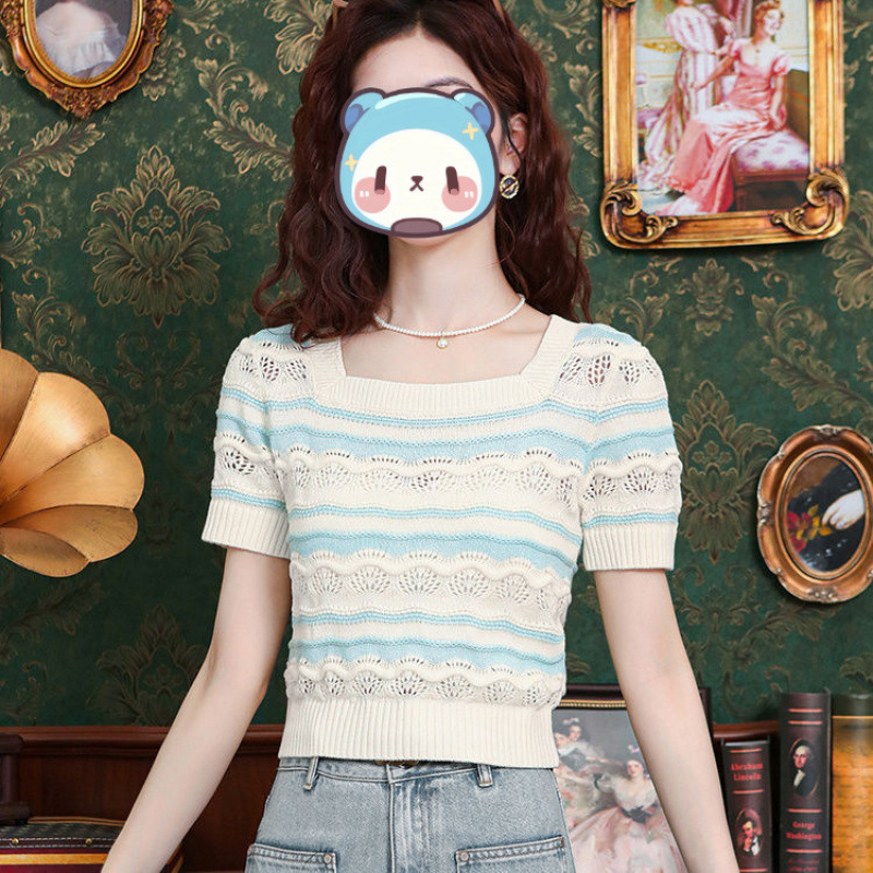 아이스 실크 반팔 티셔츠 여성의 2025 새로운 폭발 여름 줄무늬 니트 셔츠 패션 웨스턴 스타일 쇼트 탑 여름