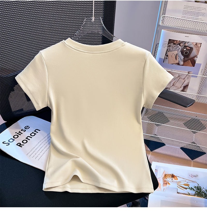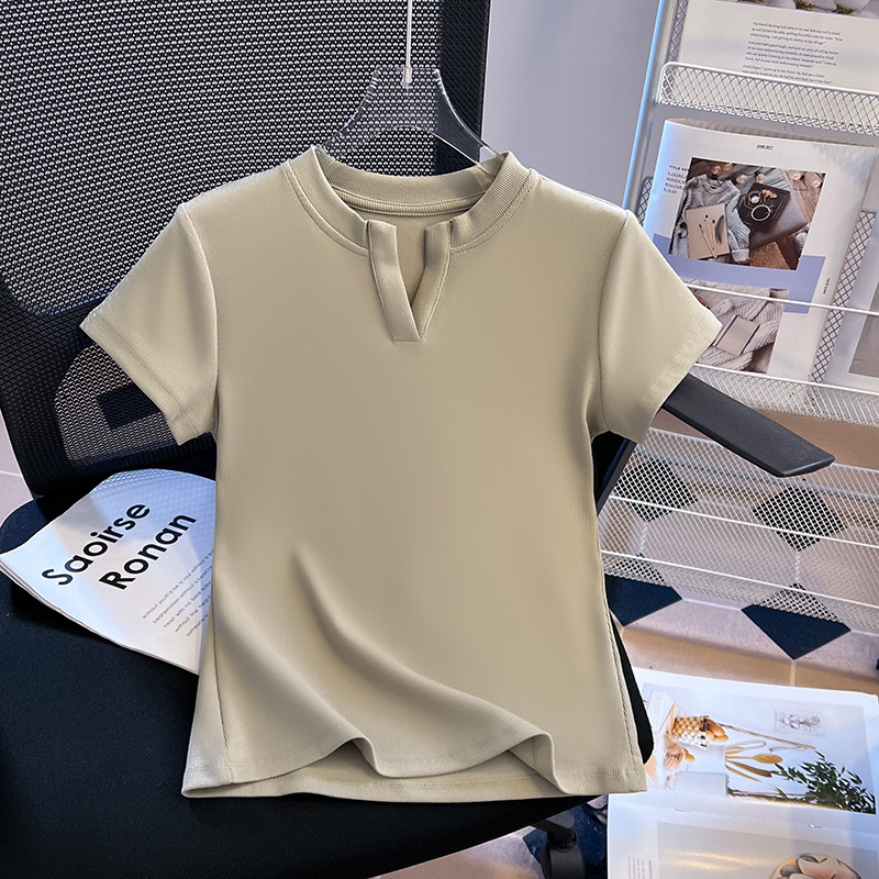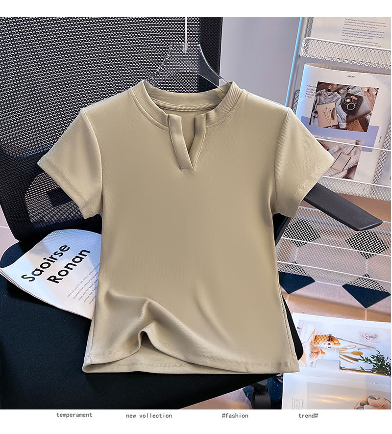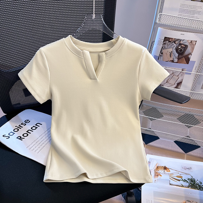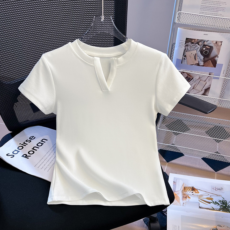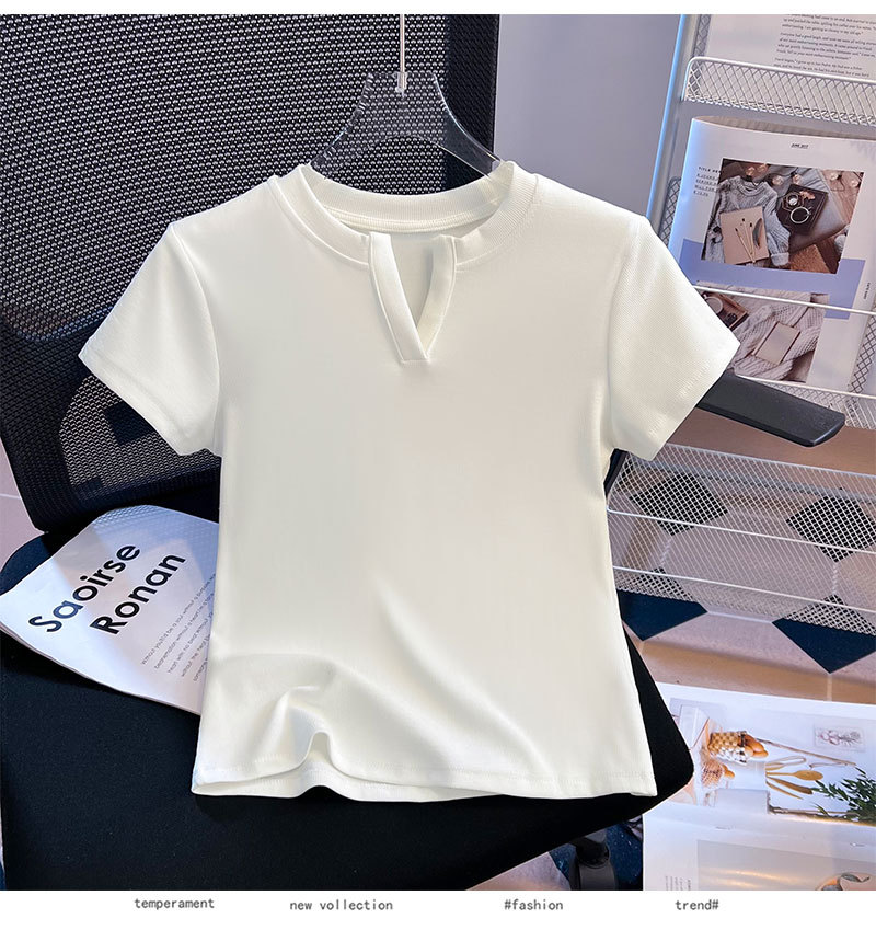 화이트 V 넥 짧은 소매 여성 티셔츠 새로운 봄과 여름 한국 디자인 감각 슬림 슬림 슬림 슬림 숄더 짧은 재킷 도매