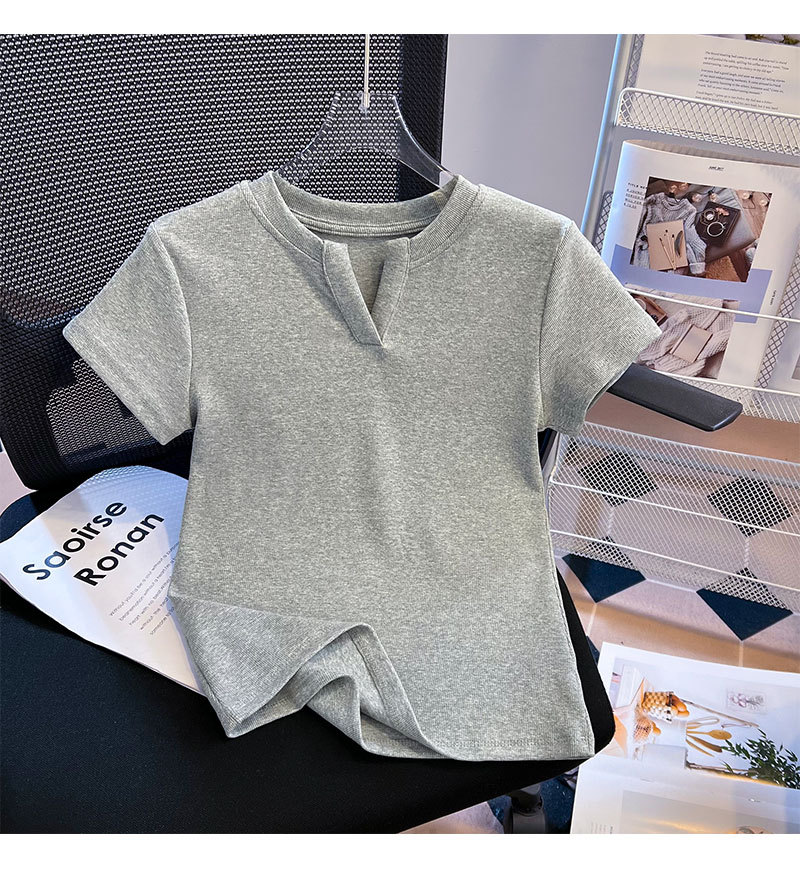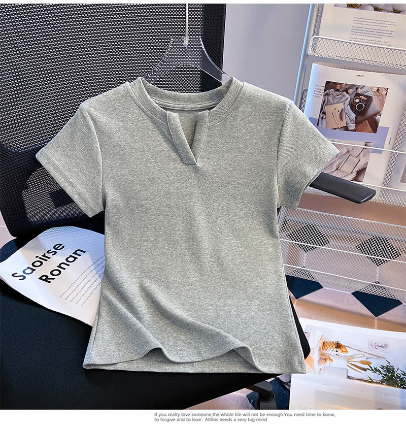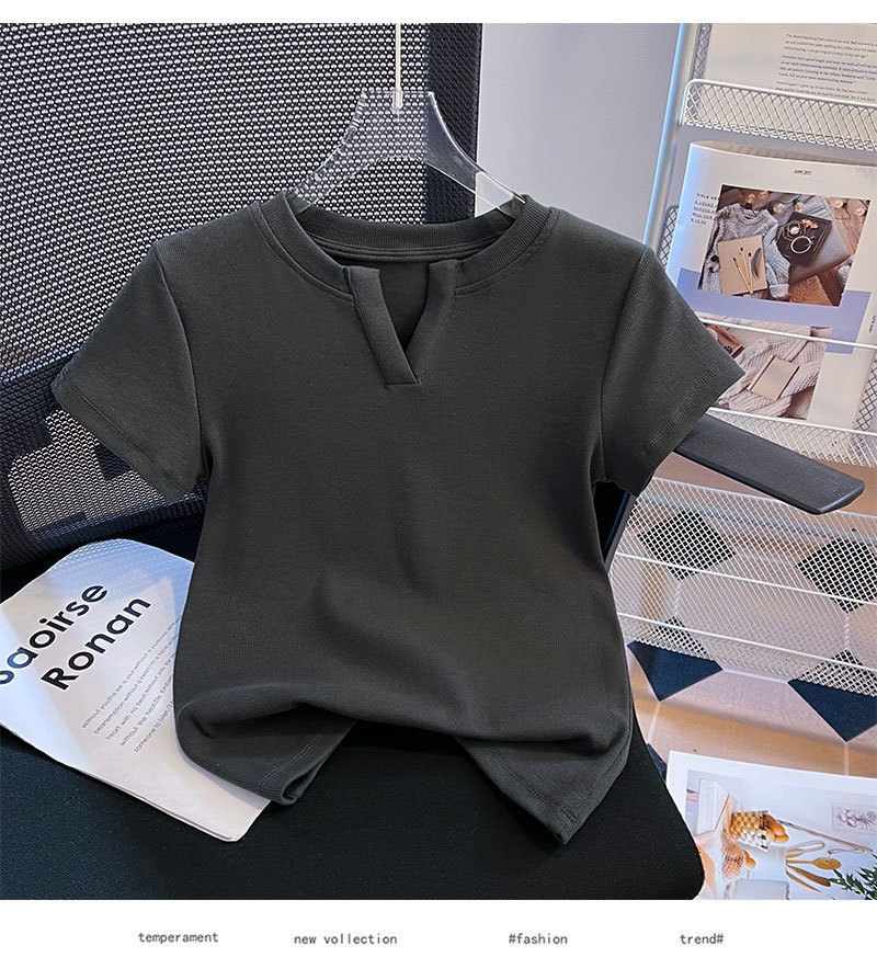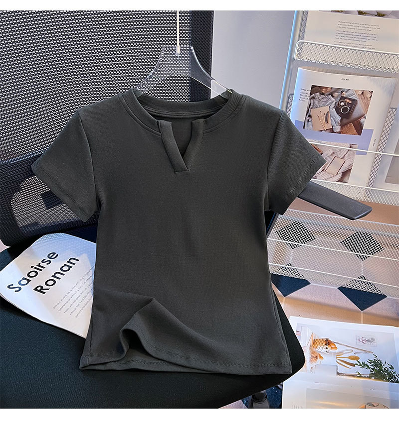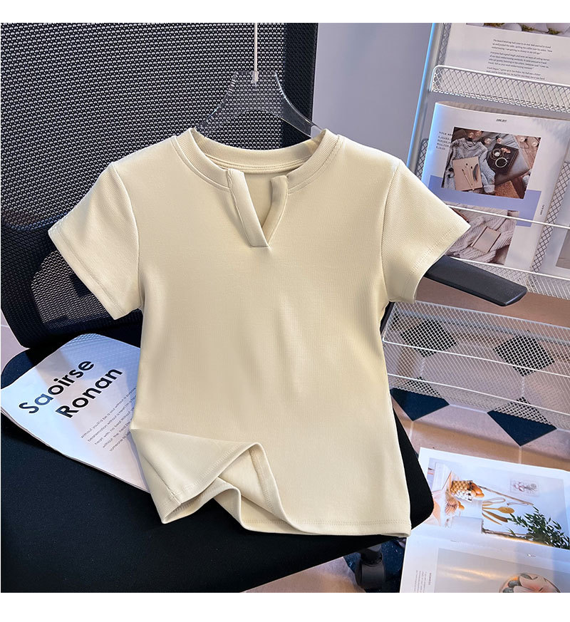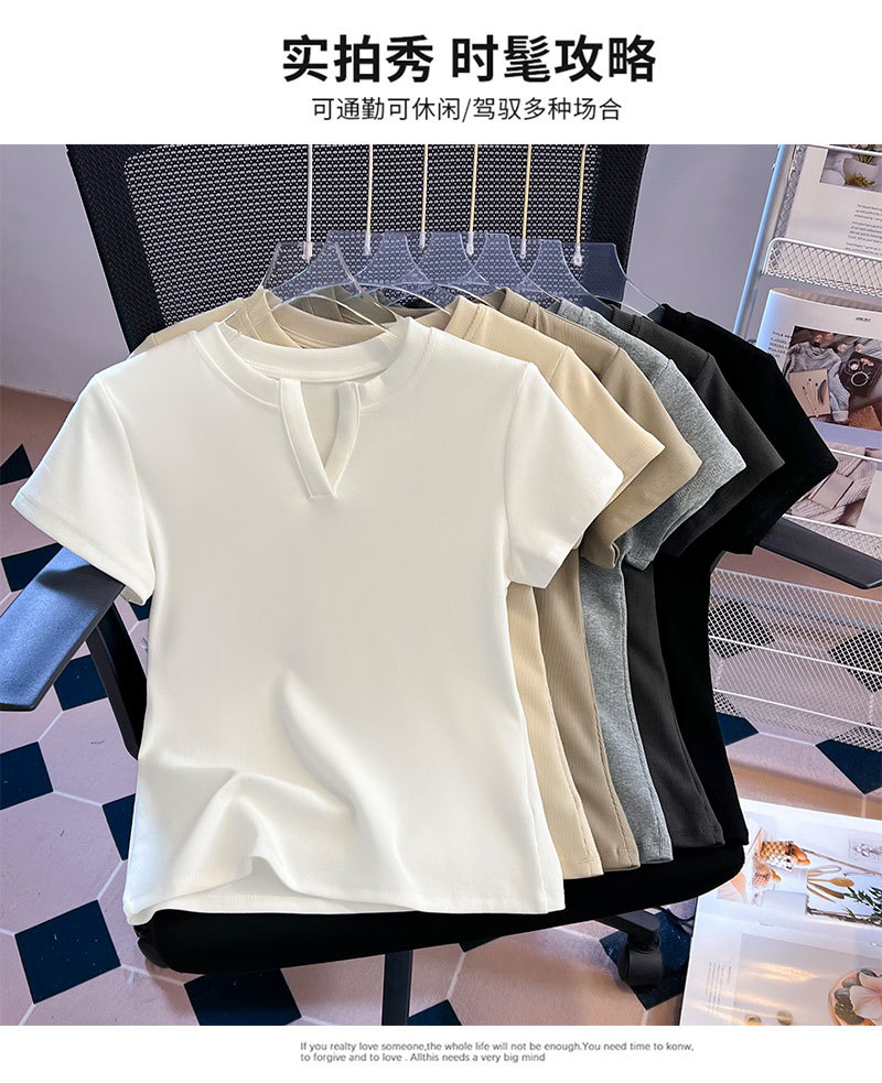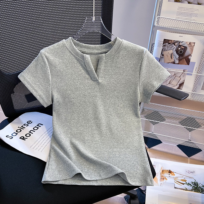 화이트 V 넥 짧은 소매 여성 티셔츠 새로운 봄과 여름 한국 디자인 감각 슬림 슬림 슬림 슬림 숄더 짧은 재킷 도매스토어 가기