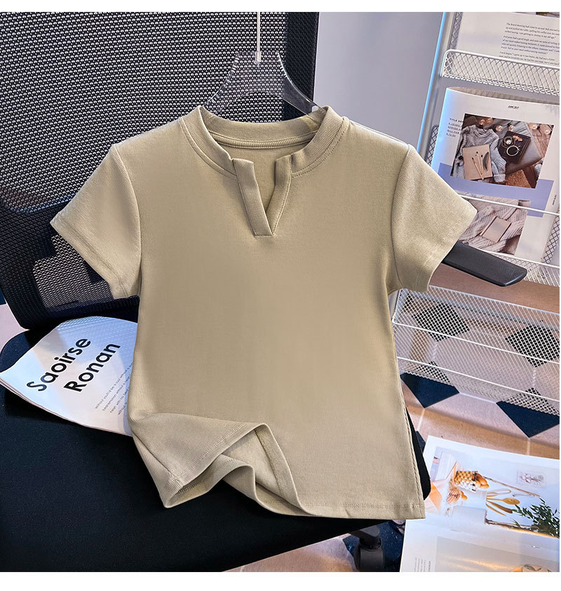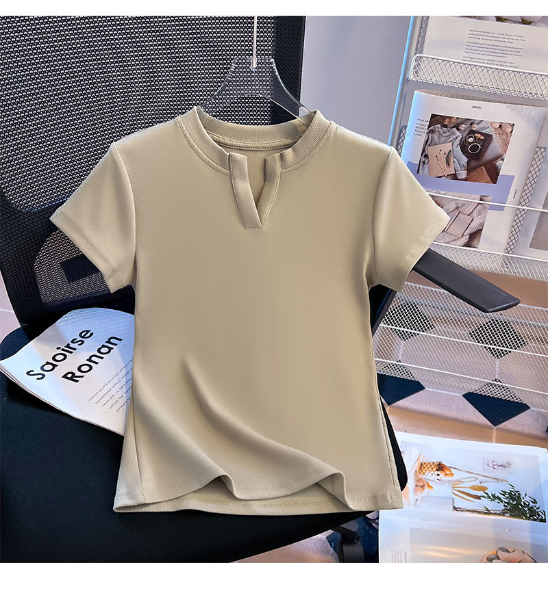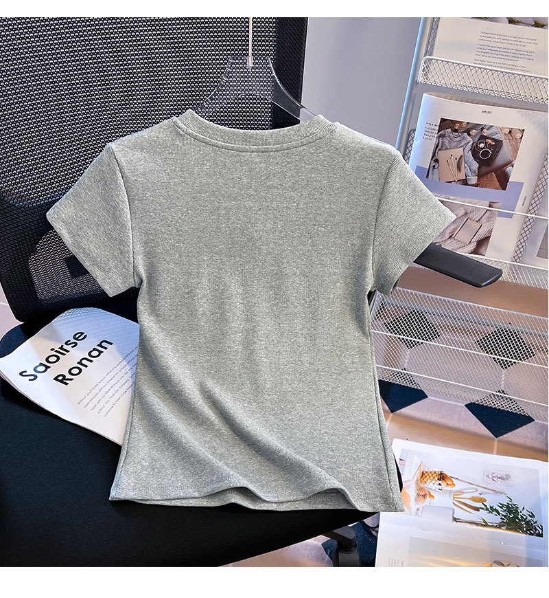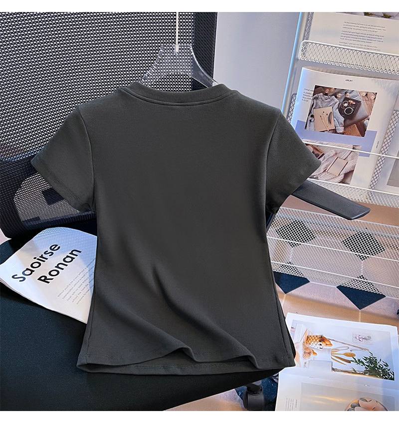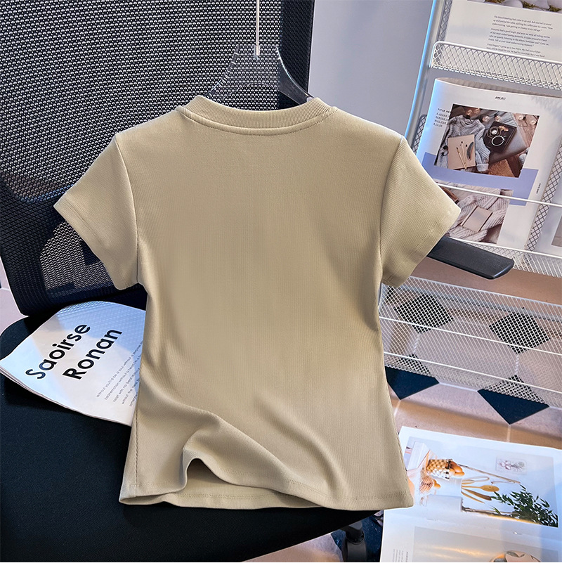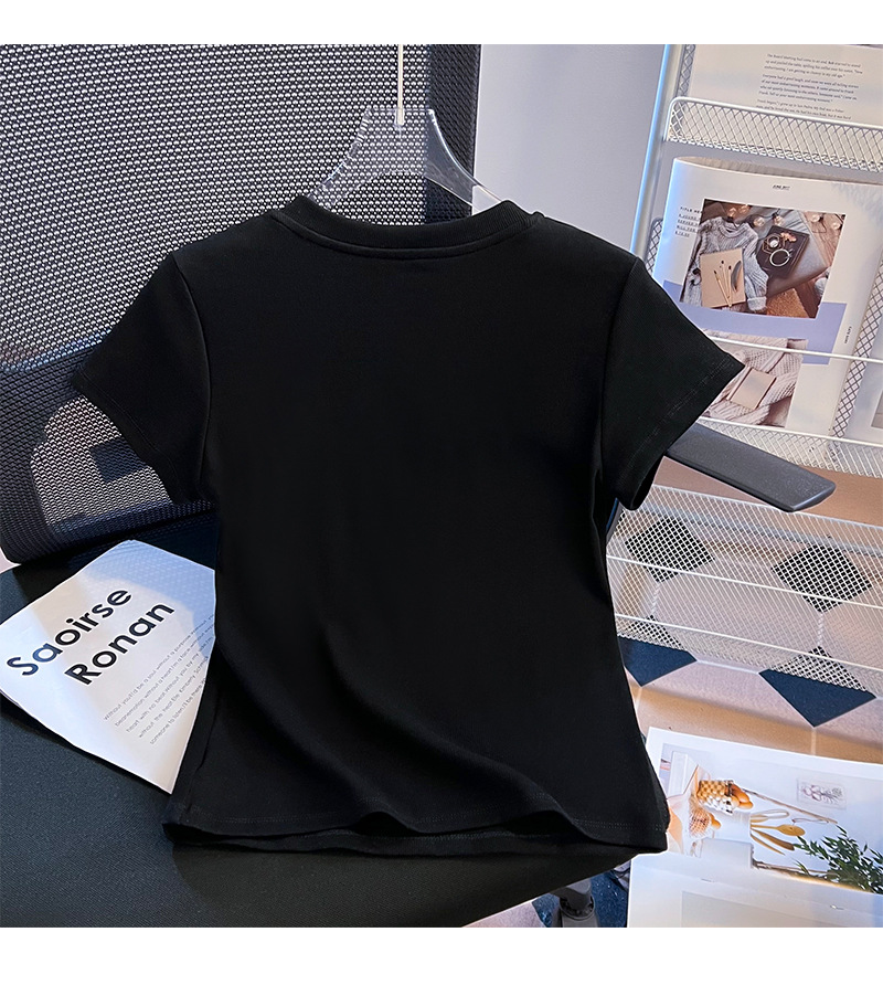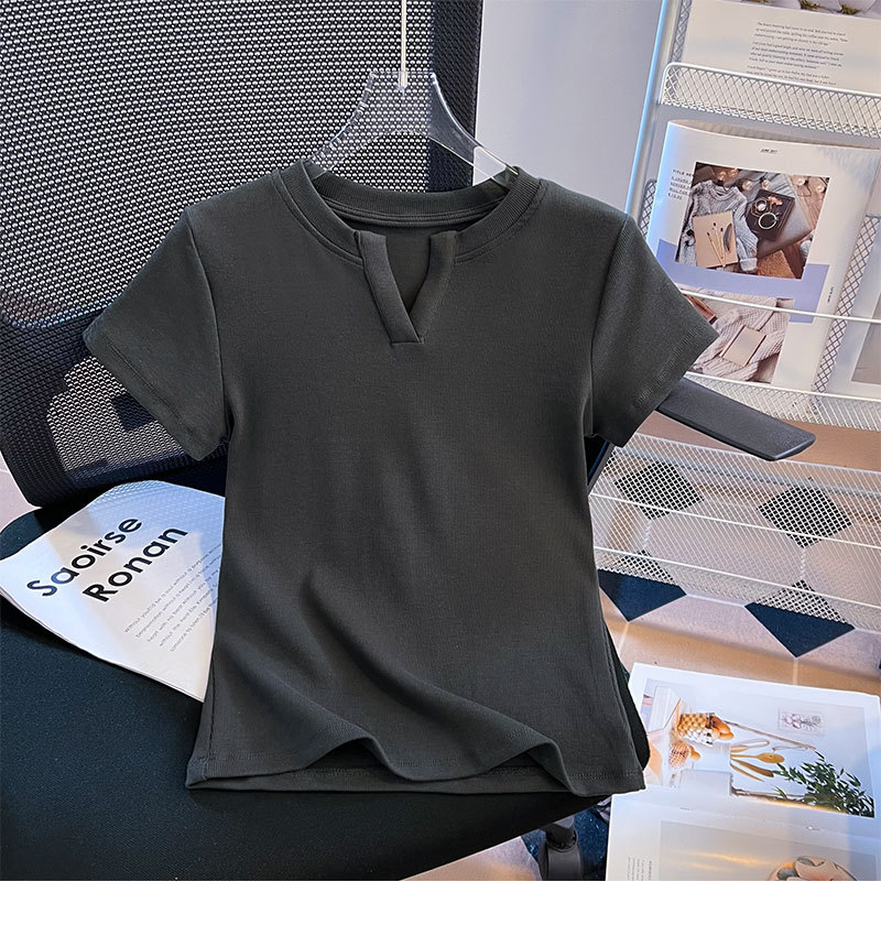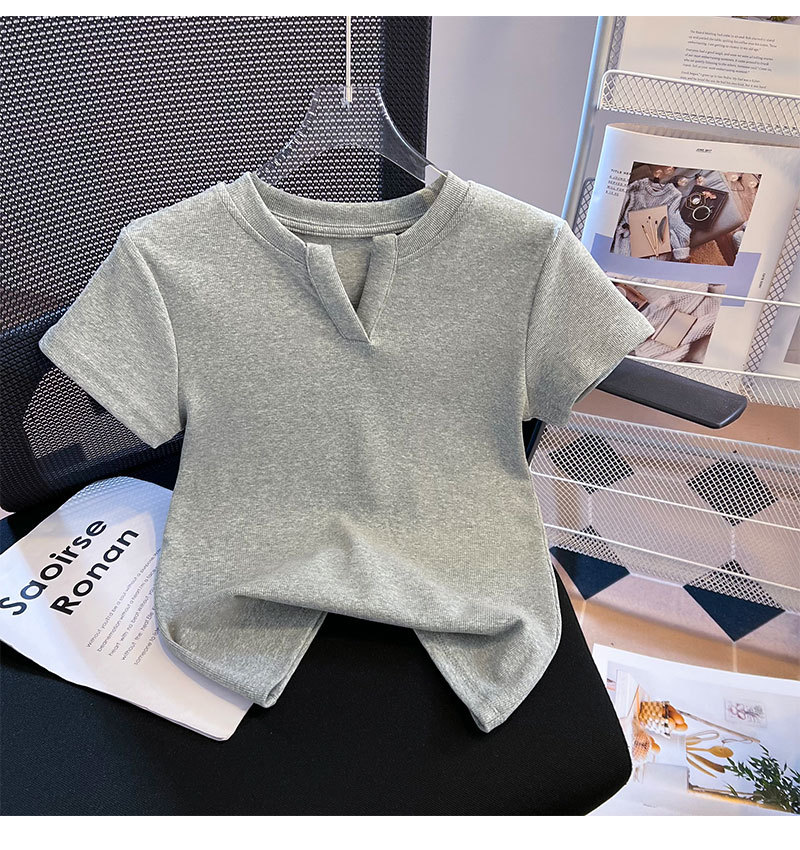 화이트 V 넥 짧은 소매 여성 티셔츠 새로운 봄과 여름 한국 디자인 감각 슬림 슬림 슬림 슬림 숄더 짧은 재킷 도매스토어 가기