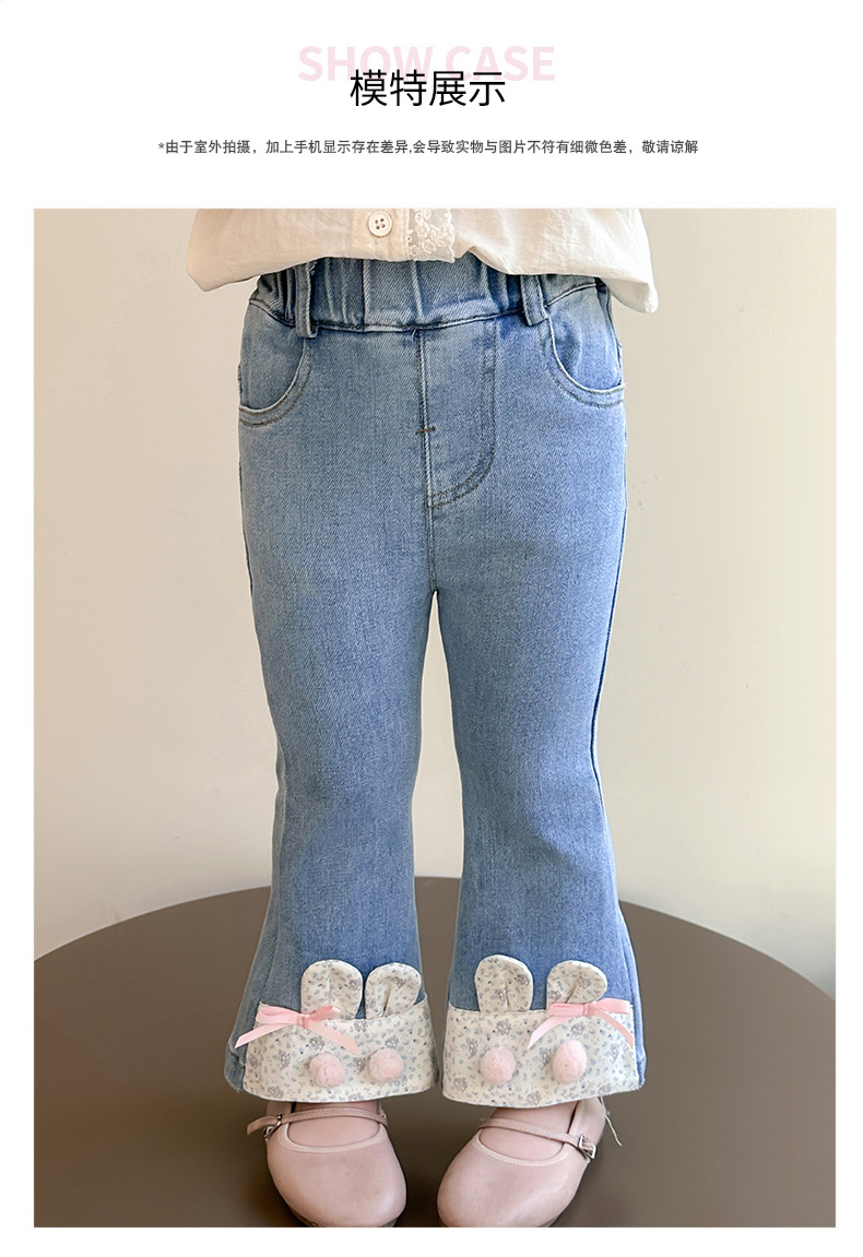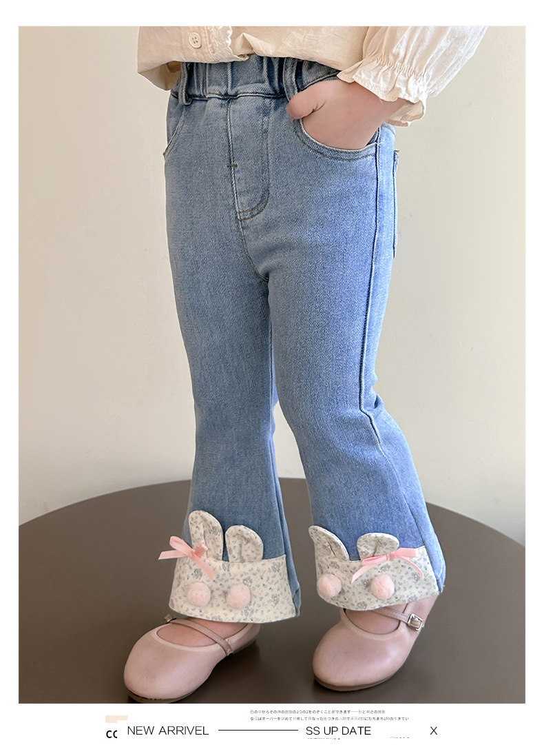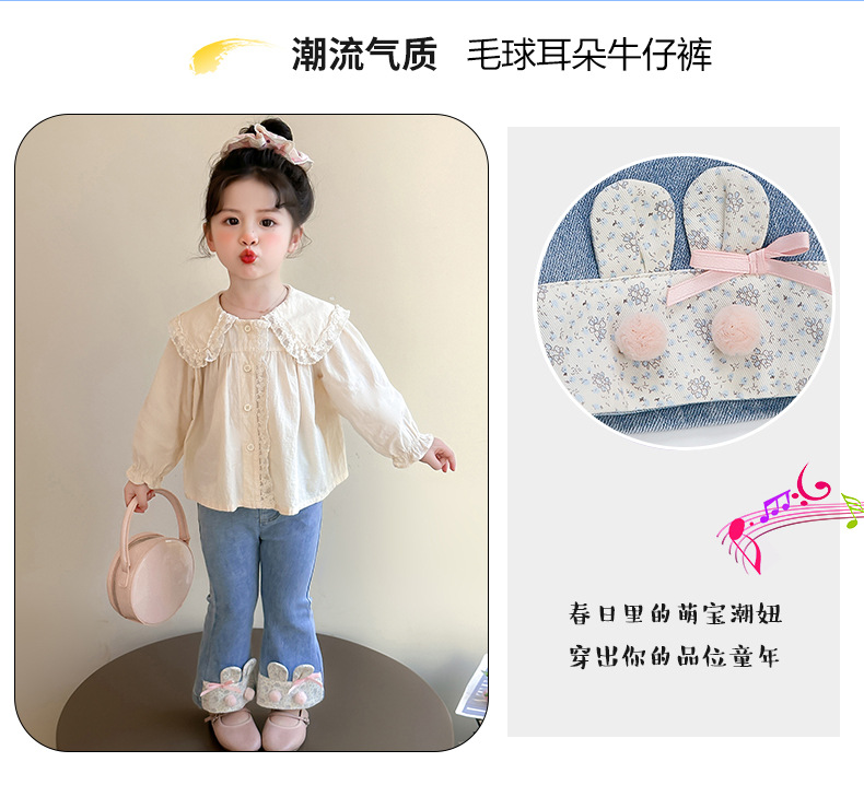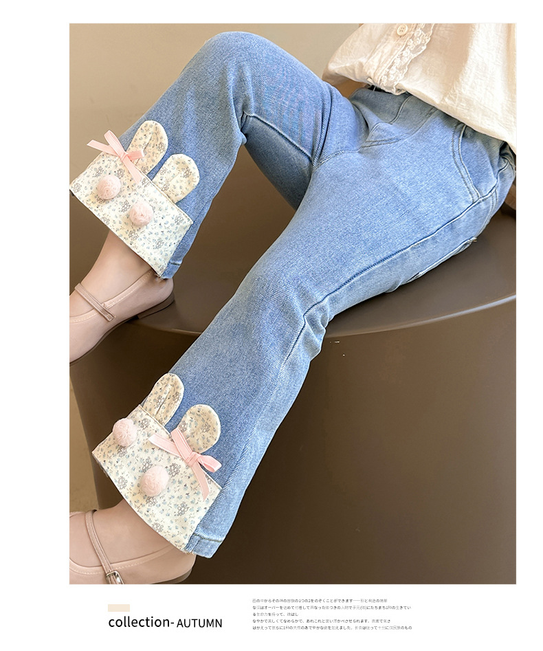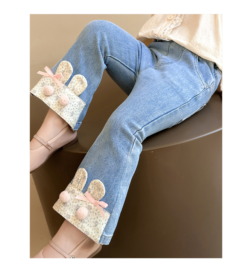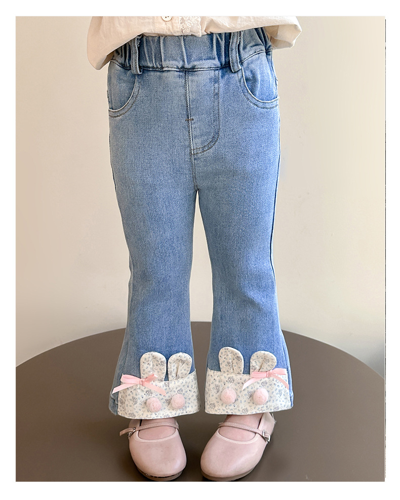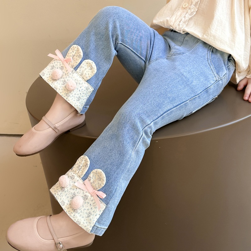 여자 청바지 2025 봄 중소 어린이 7 달콤한 패션 아기 서양 스타일 9 토끼 귀 슬림 적합 경적 바지스토어 가기