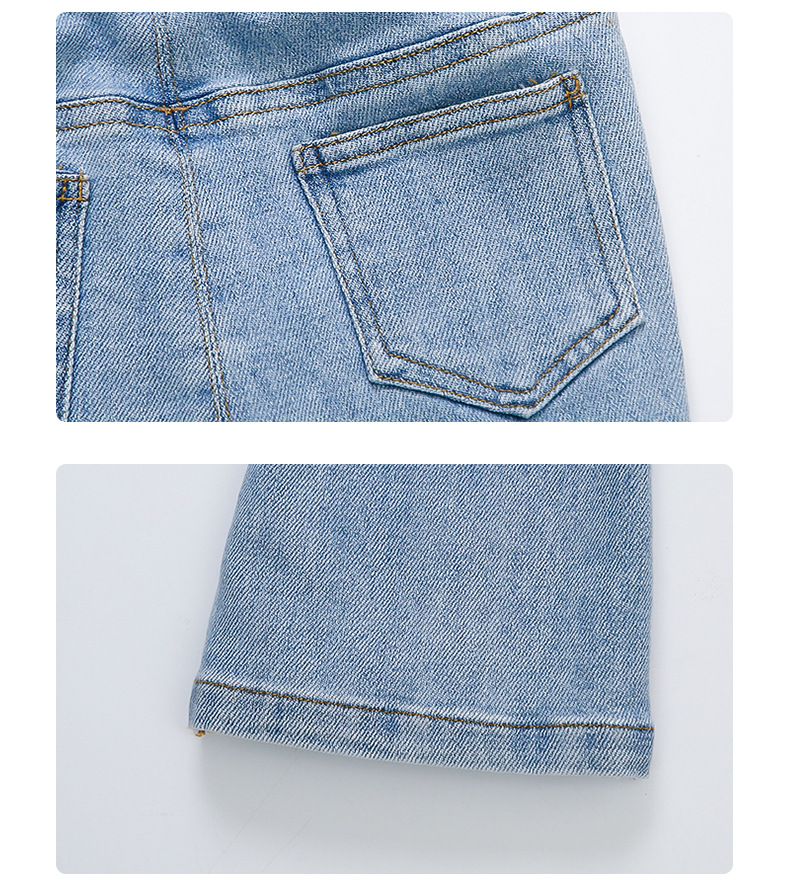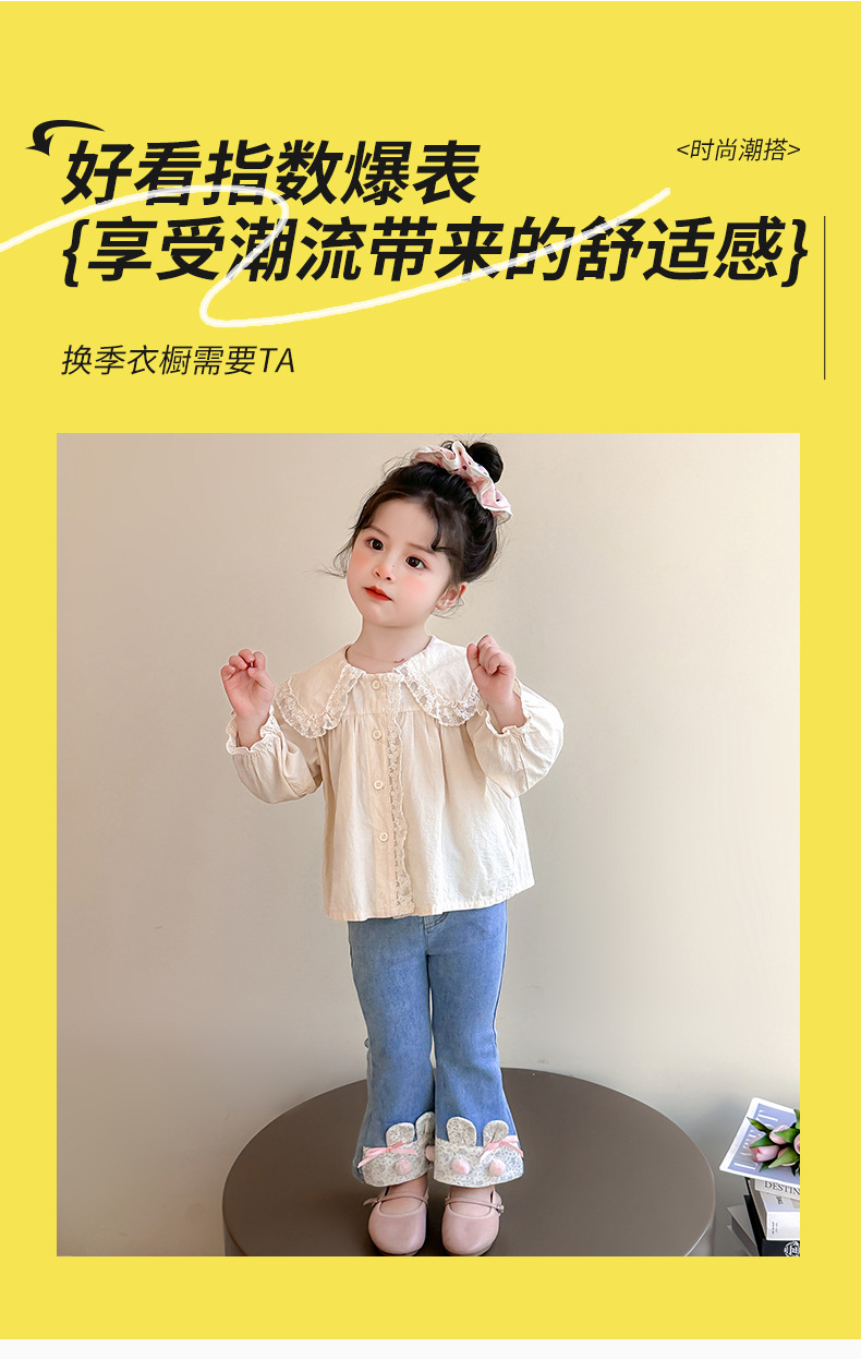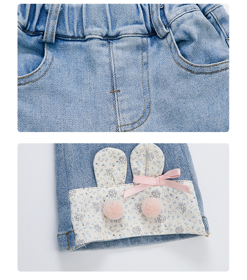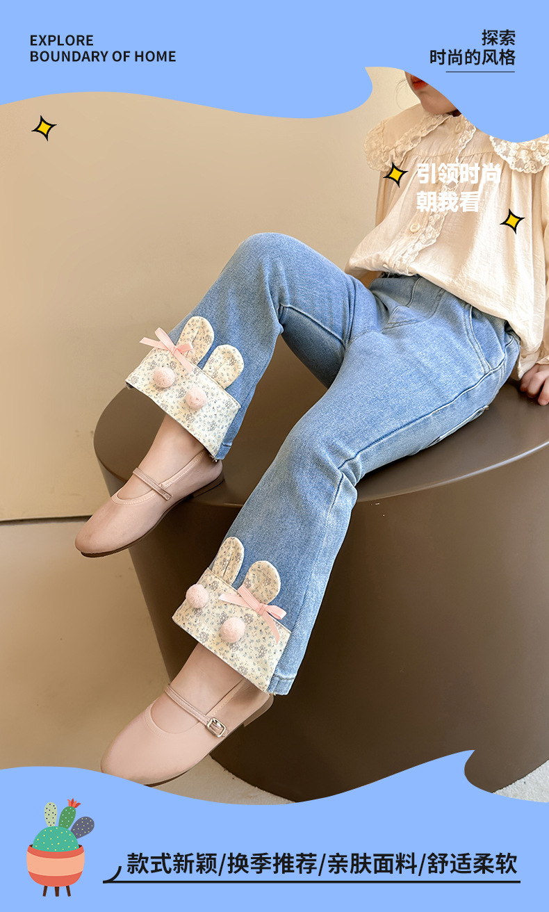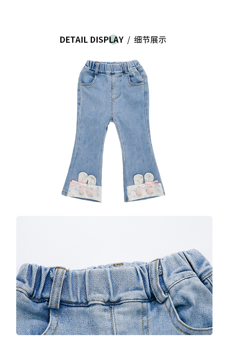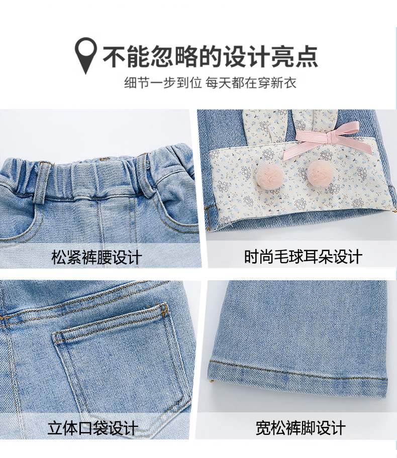 여자 청바지 2025 봄 중소 어린이 7 달콤한 패션 아기 서양 스타일 9 토끼 귀 슬림 적합 경적 바지스토어 가기