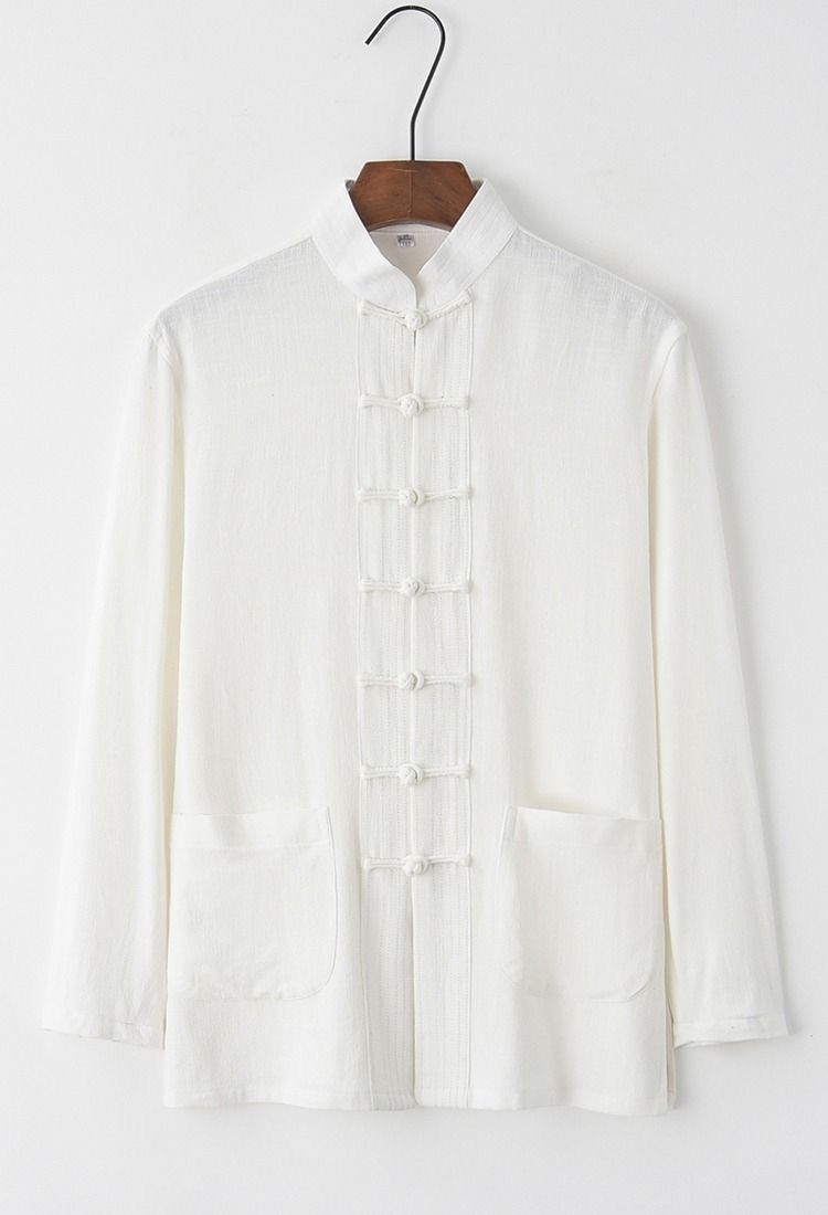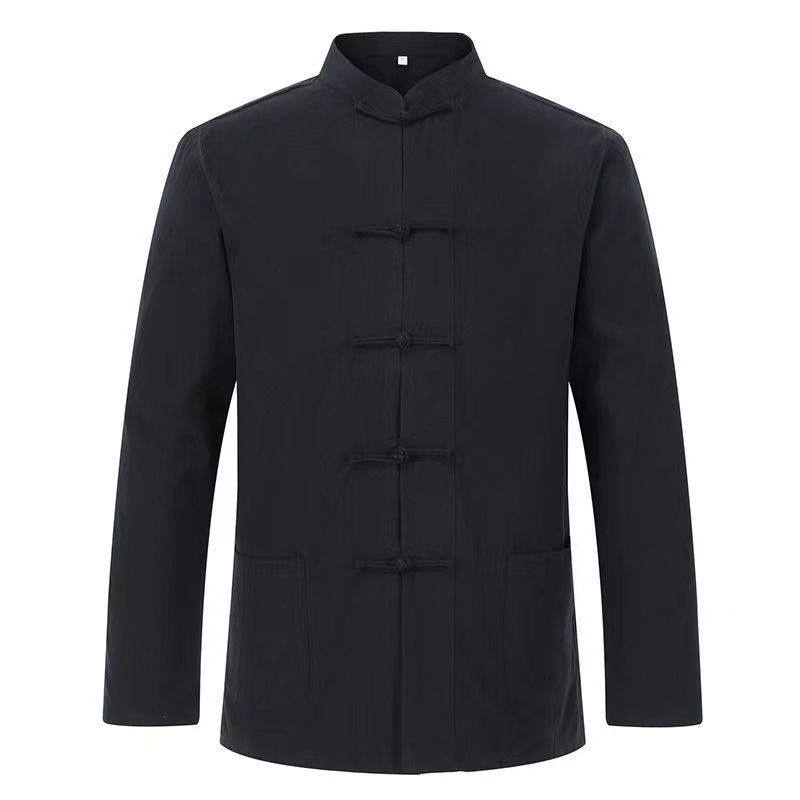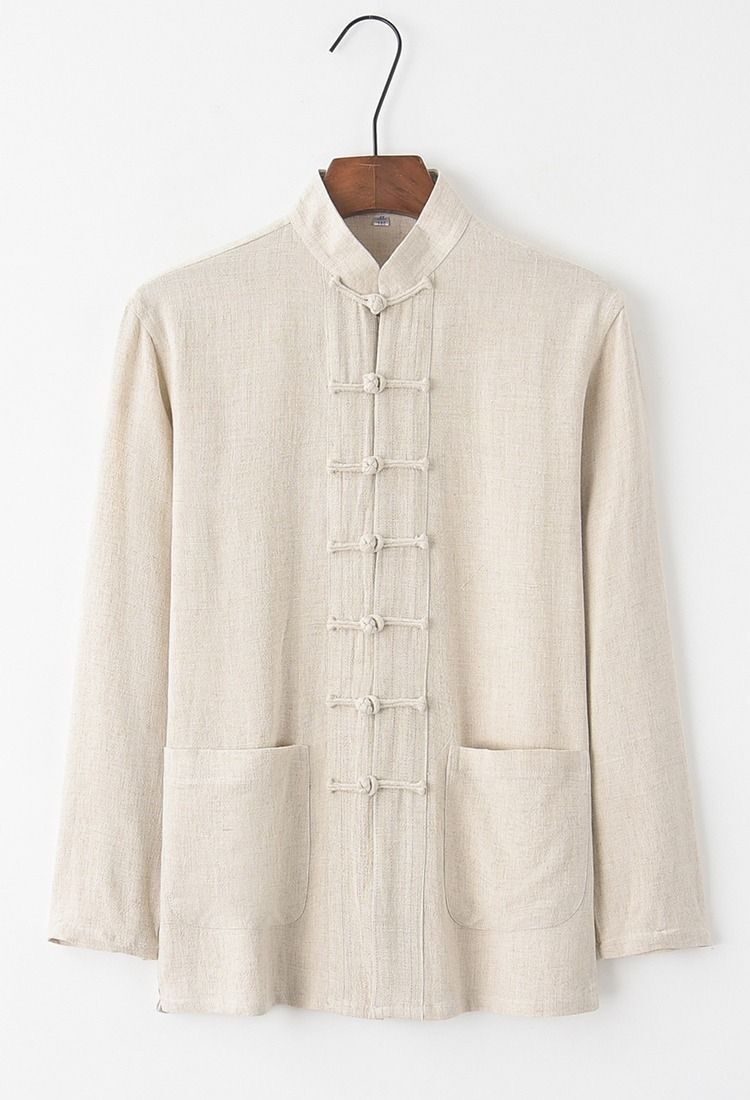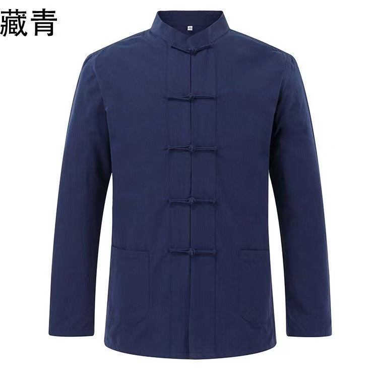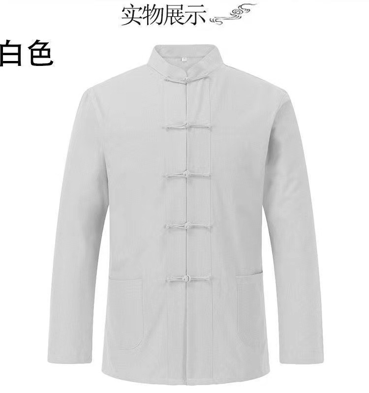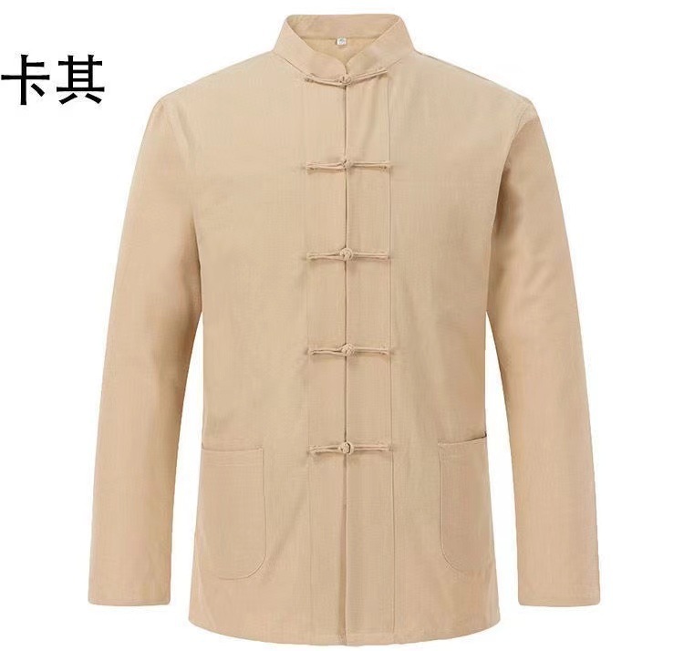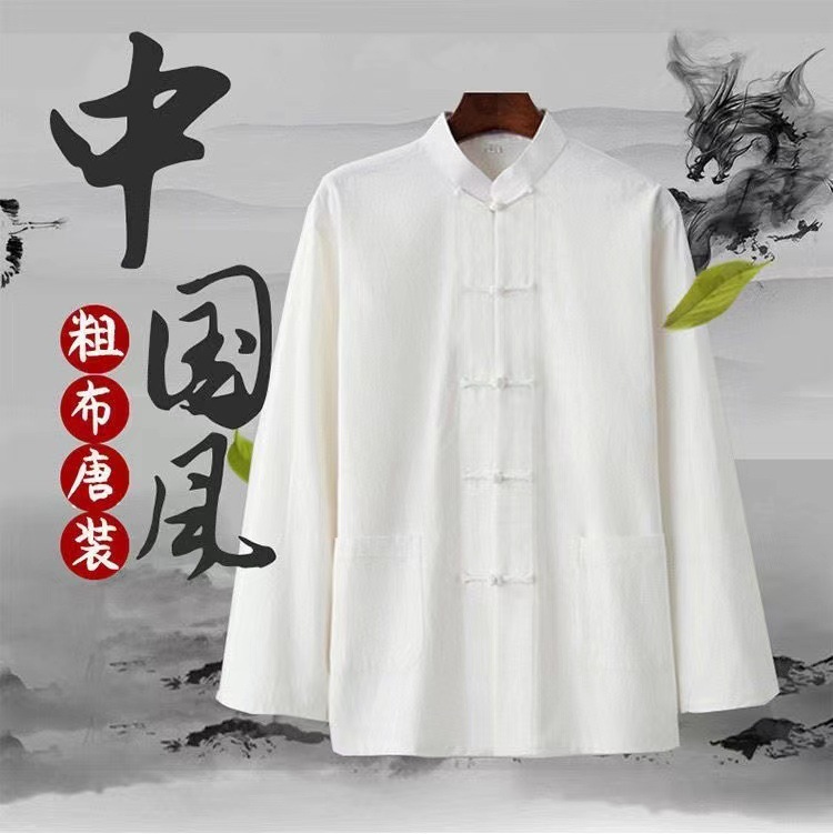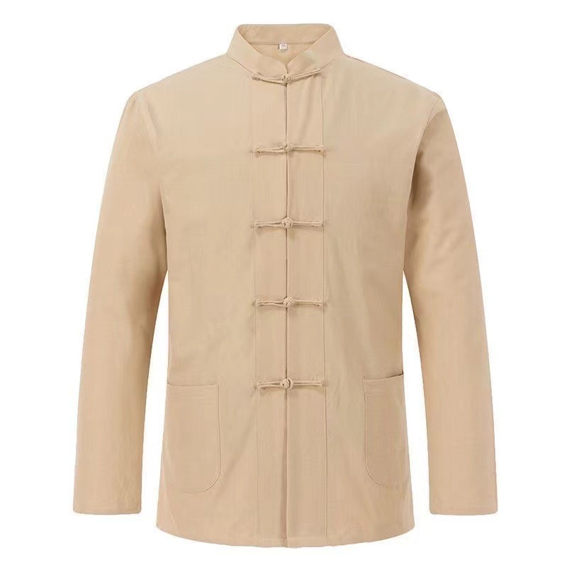 대외 무역 2024 새로운 중국 스타일 남성면 및 리넨 긴 소매 셔츠 남성용 루즈 레트로 중국 버클 셔츠스토어 가기