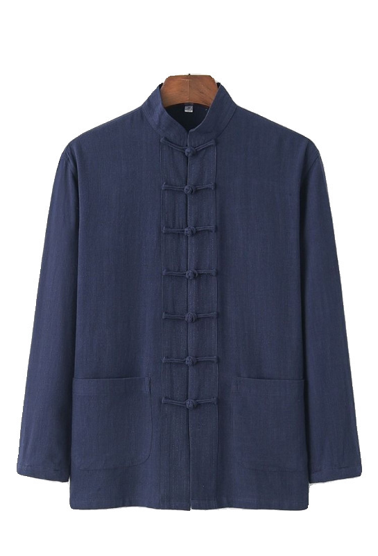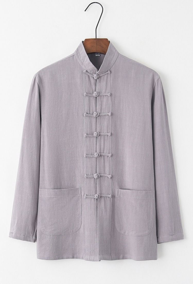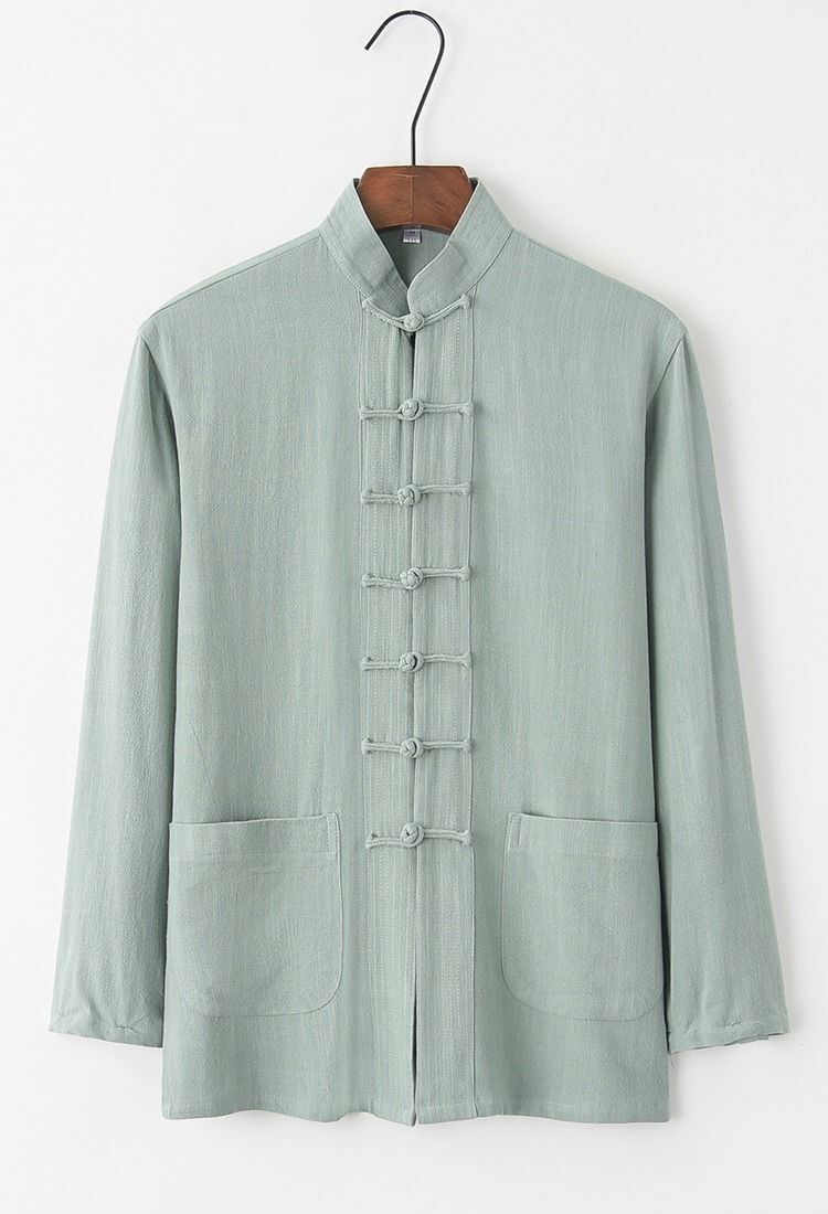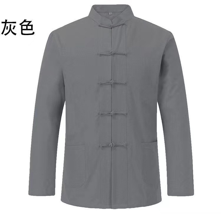 대외 무역 2024 새로운 중국 스타일 남성면 및 리넨 긴 소매 셔츠 남성용 루즈 레트로 중국 버클 셔츠