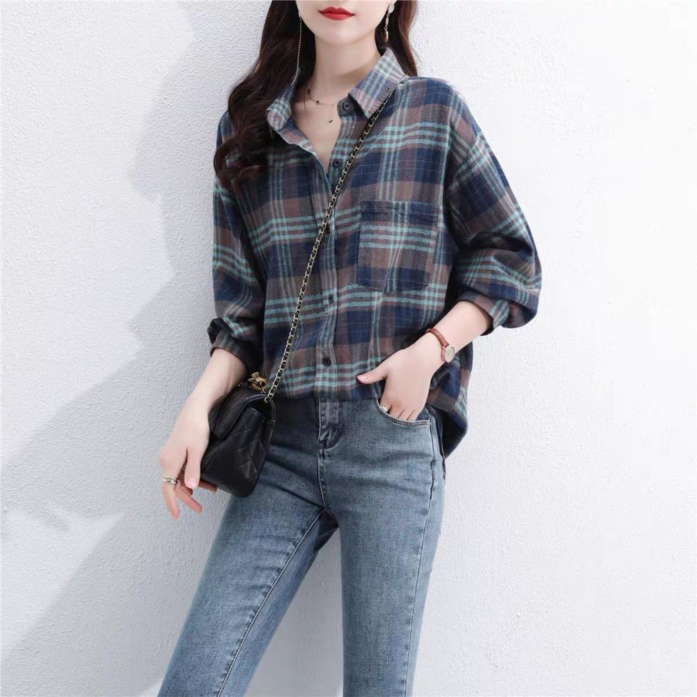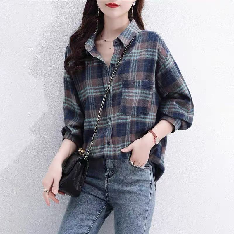 2025 봄 예술적 캐주얼 격자 무늬 셔츠 최고 여성의 봄 느슨한 살 덮개 셔츠 긴 소매 카디건 재킷스토어 가기