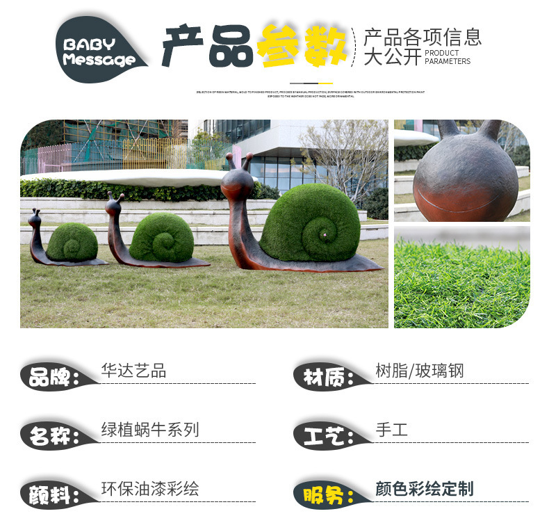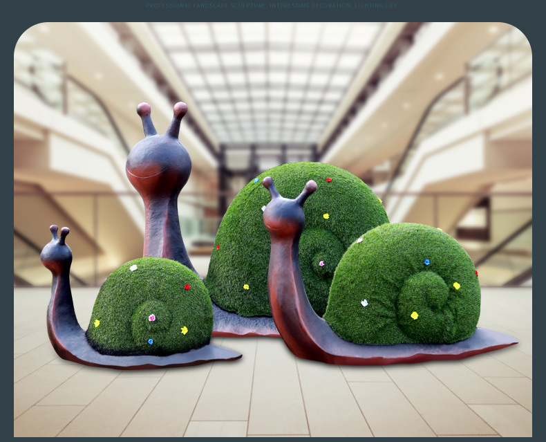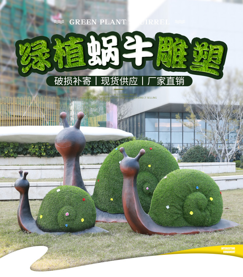야외 유리 섬유 강화 플라스틱 만화 달팽이 조각 시뮬레이션 녹색 식물 동물 장식품 공원 커뮤니티 놀이터 장식