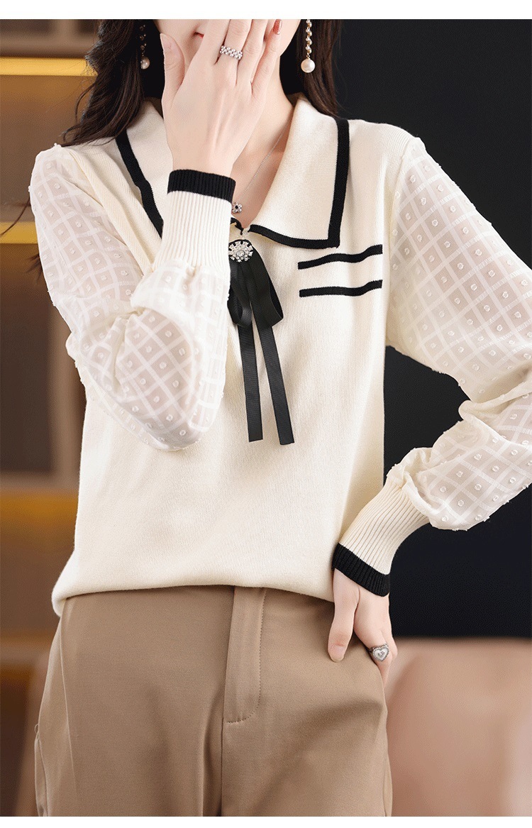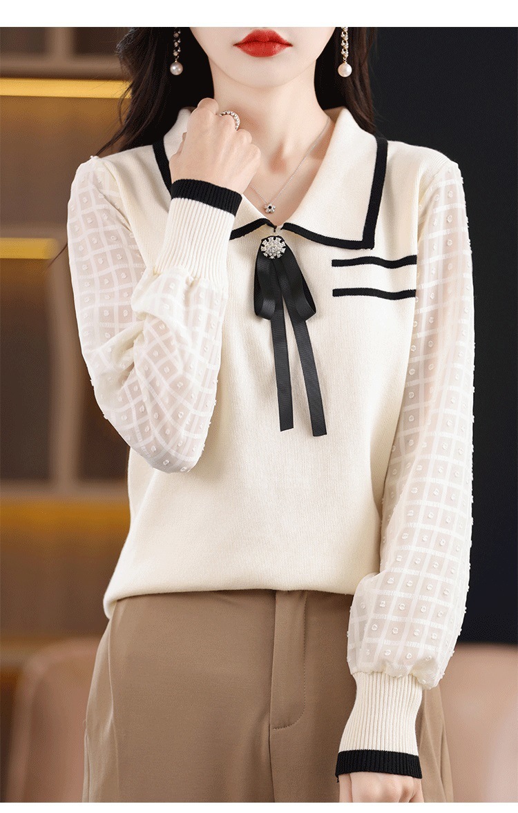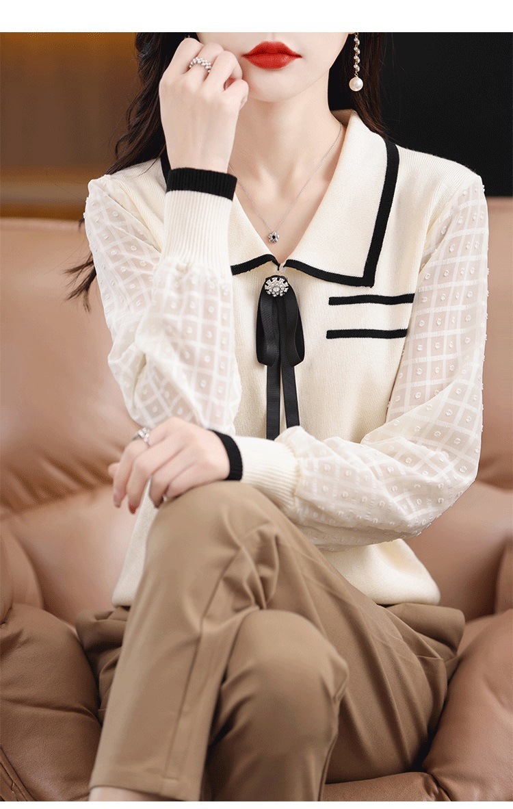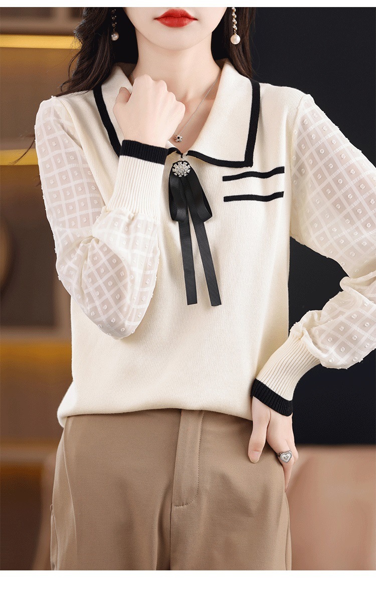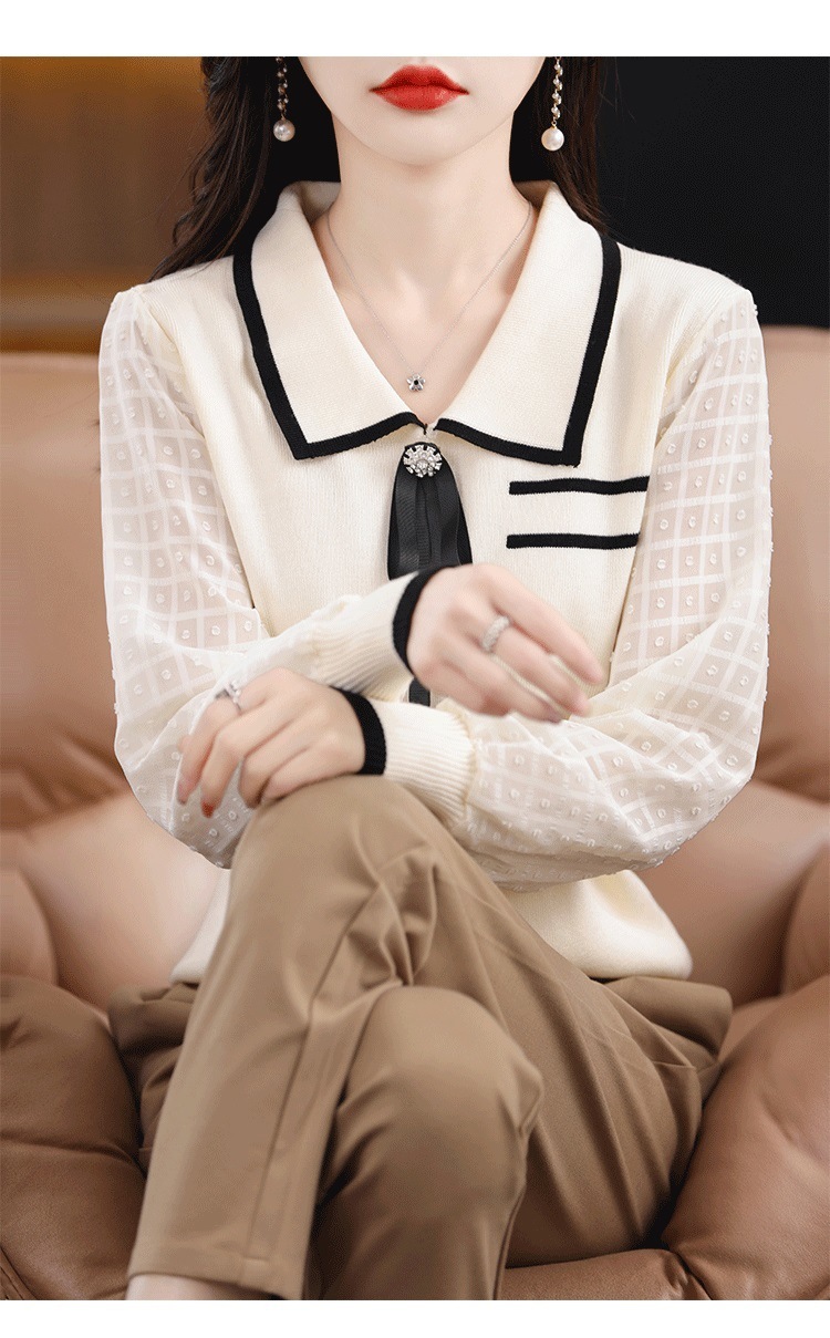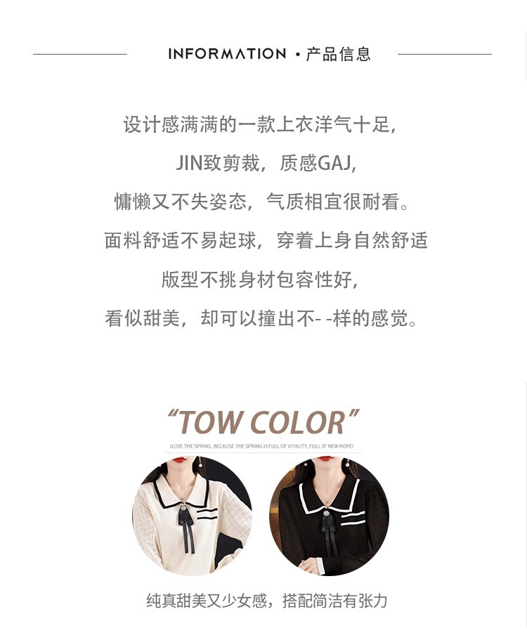 인형 칼라 쉬폰 탑 여성의 봄과 가을 뉴 에이지 감소 느슨한 긴팔 웨스턴 스타일 셔츠 얇은 아이스 실크 니트 셔츠
