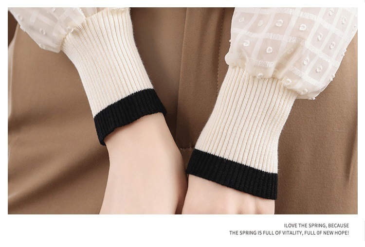인형 칼라 쉬폰 탑 여성의 봄과 가을 뉴 에이지 감소 느슨한 긴팔 웨스턴 스타일 셔츠 얇은 아이스 실크 니트 셔츠스토어 가기