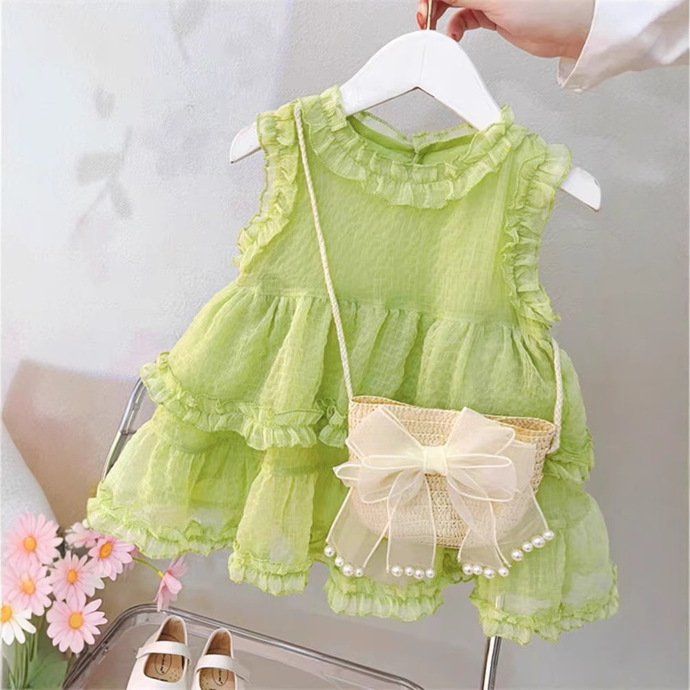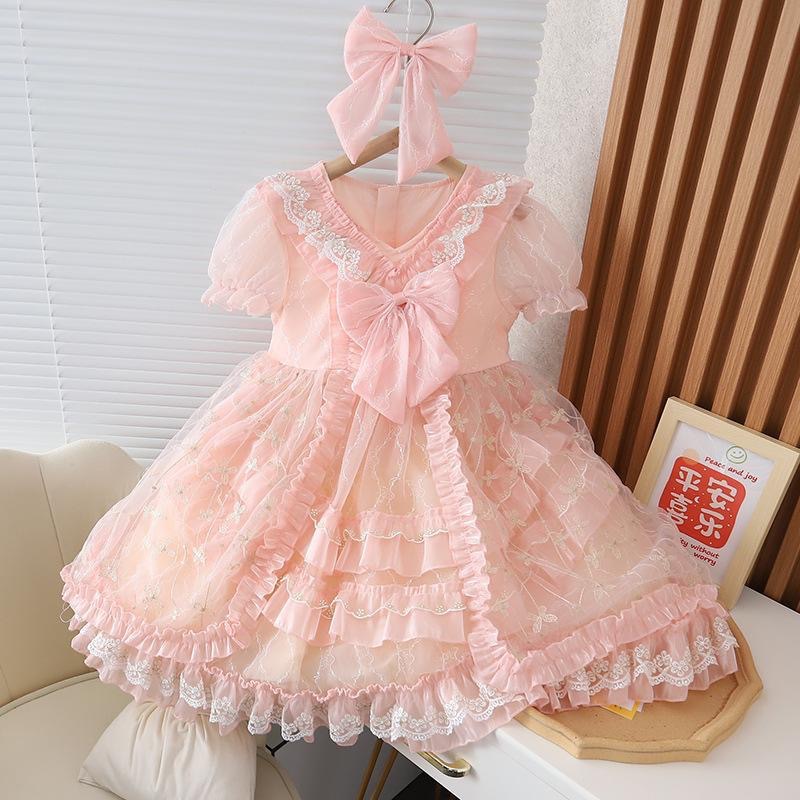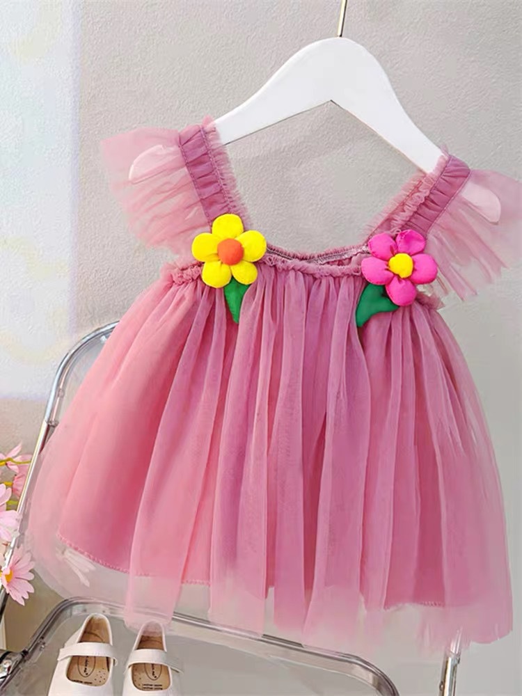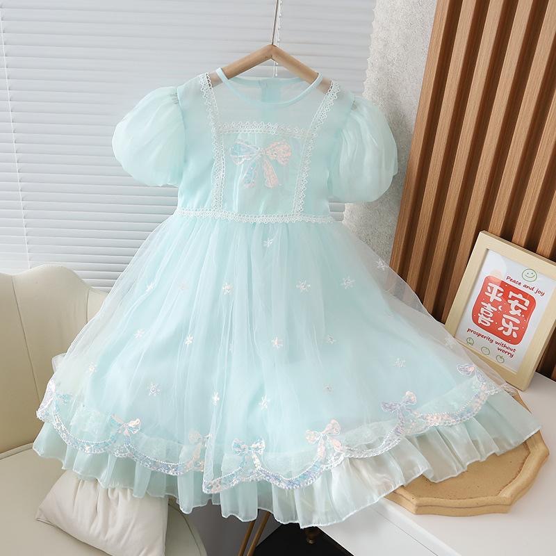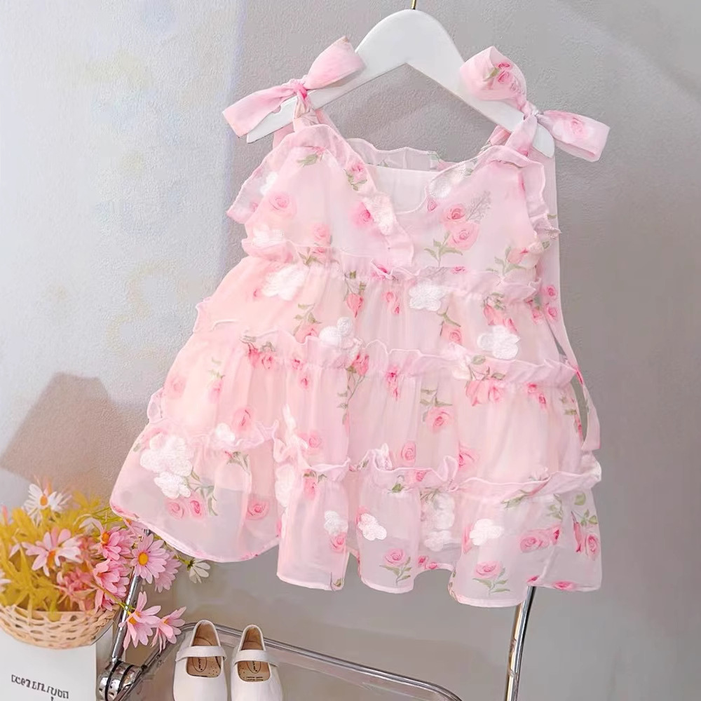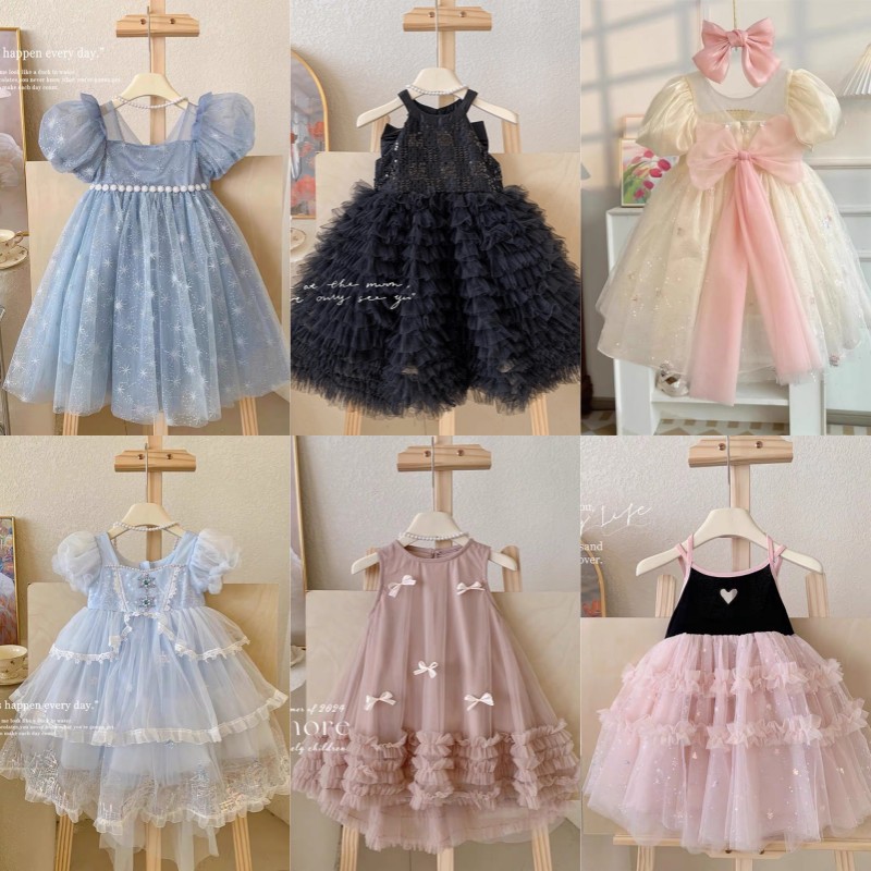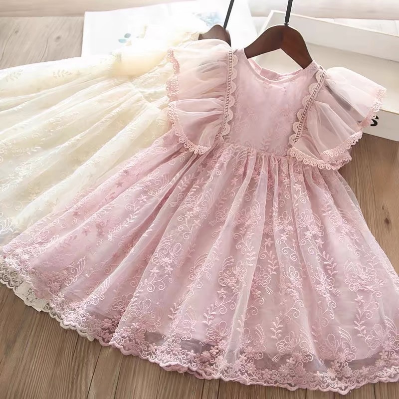 여자 원피스 2025 년 여름 여자 아기 소녀의 공주 원피스 어린이 어린 소녀의 메쉬 원피스 해변 원피스 한국식 여름 원피스