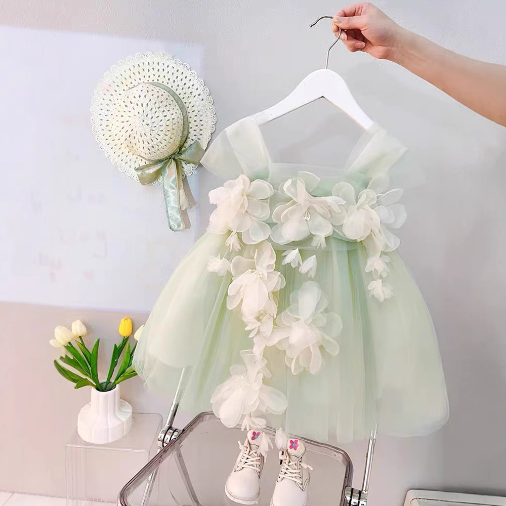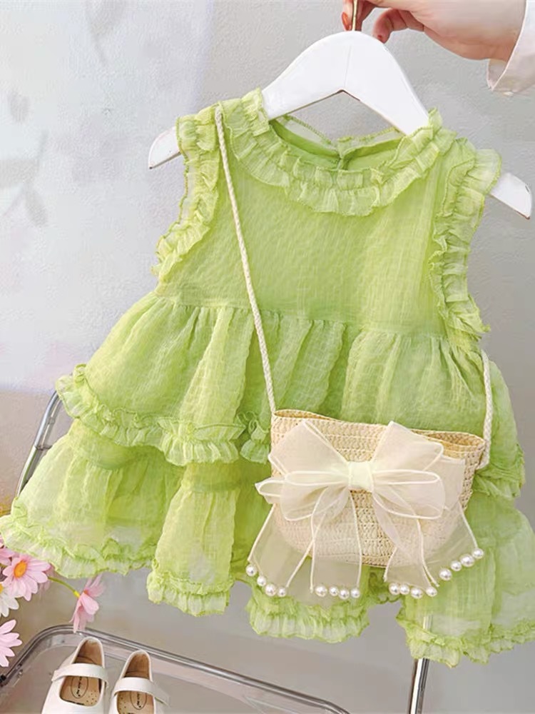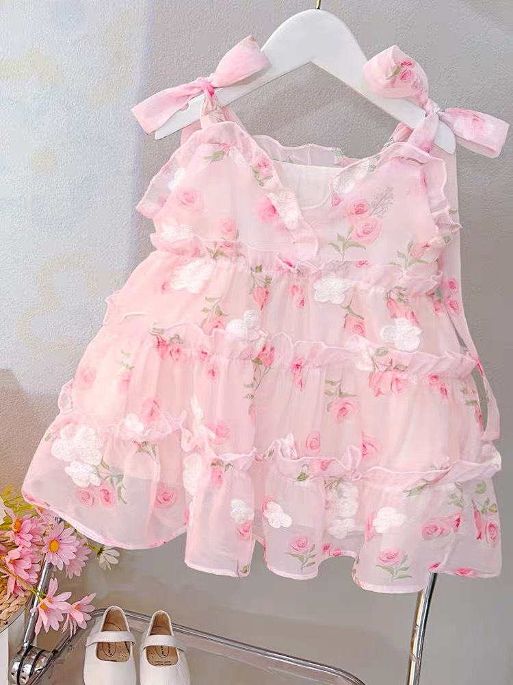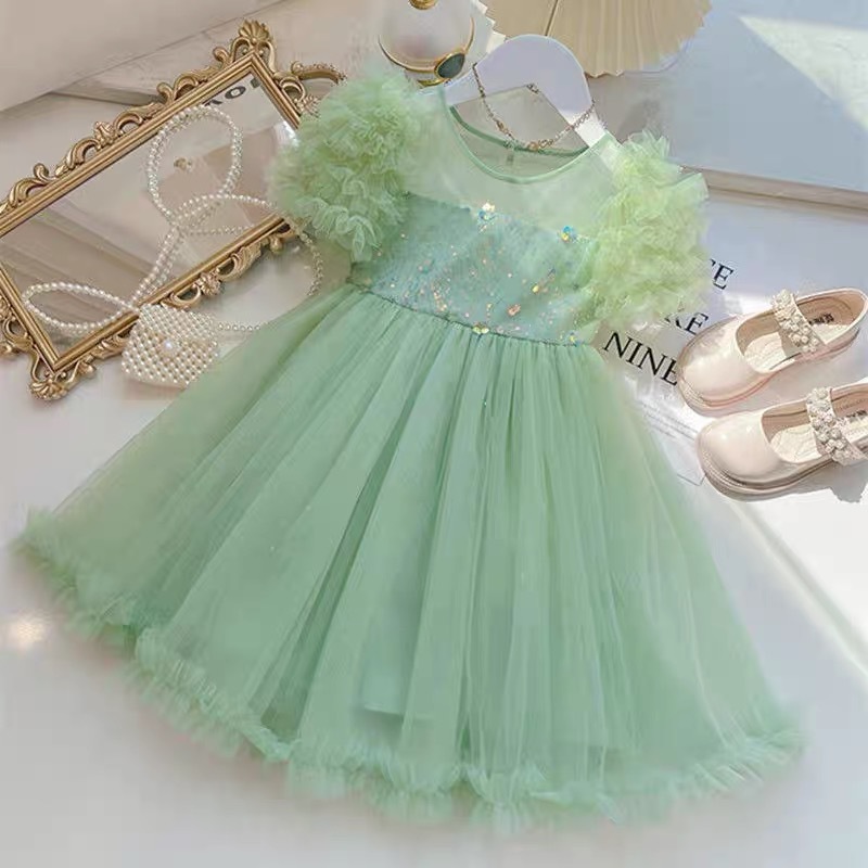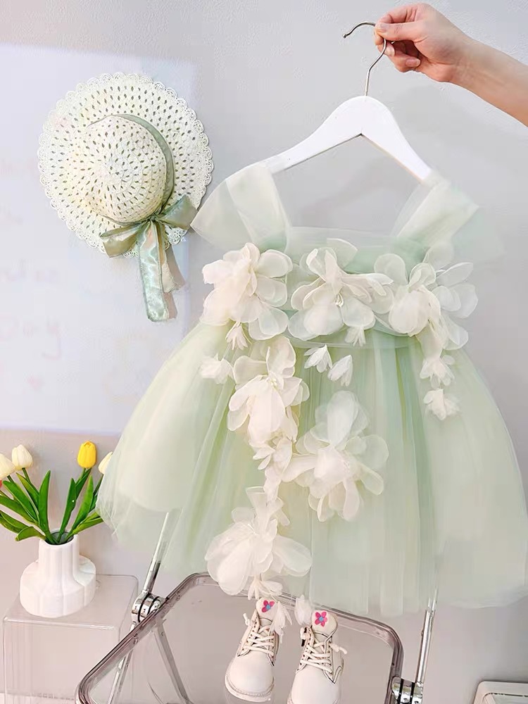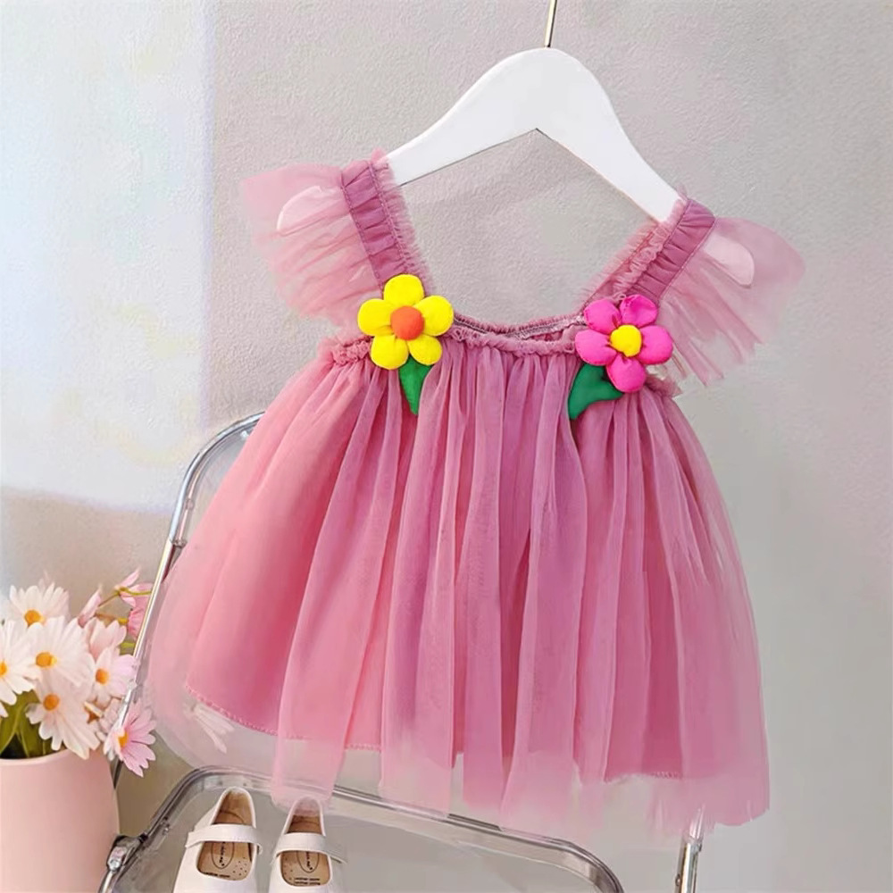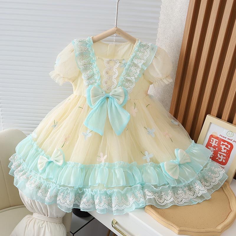 여자 원피스 2025 년 여름 여자 아기 소녀의 공주 원피스 어린이 어린 소녀의 메쉬 원피스 해변 원피스 한국식 여름 원피스