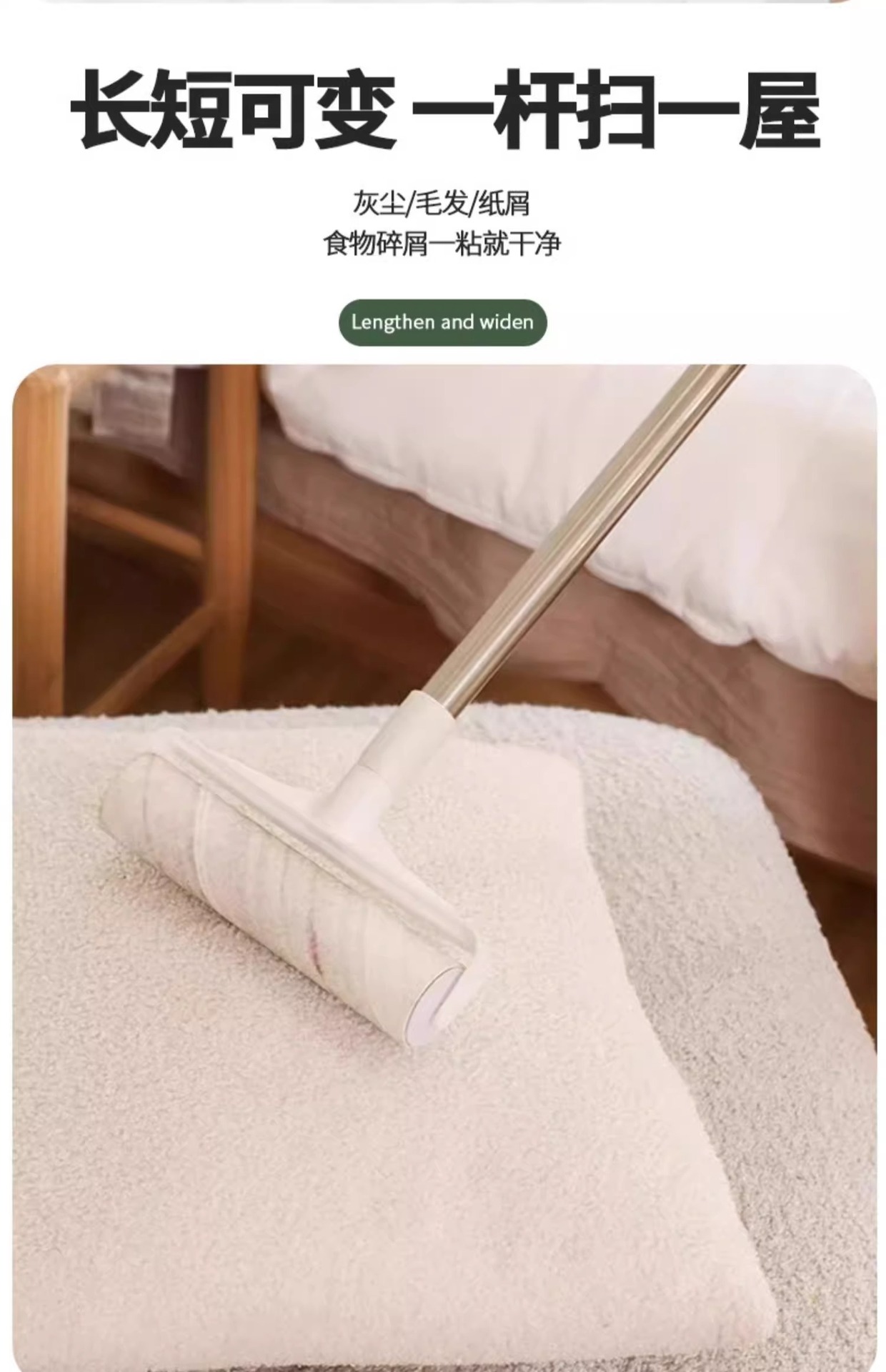긴 막대가 있는 빗자루 롤러, 가정용 롤러 브러시, 바닥 먼지 롤러, 머리카락 흡입용 특수 롤러