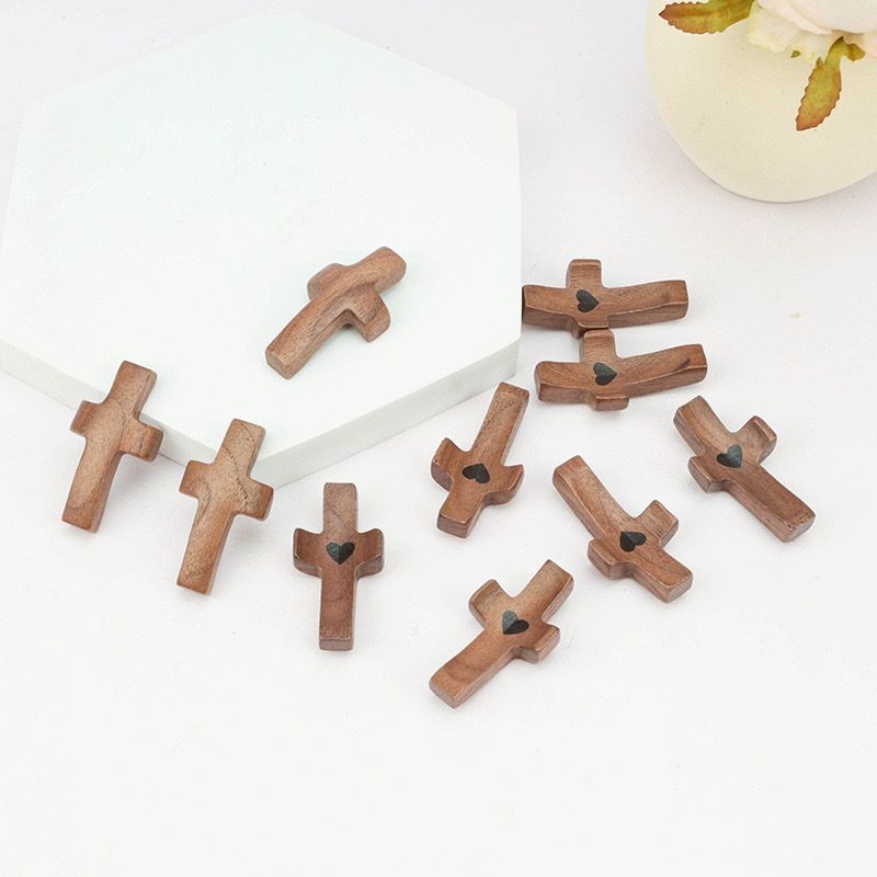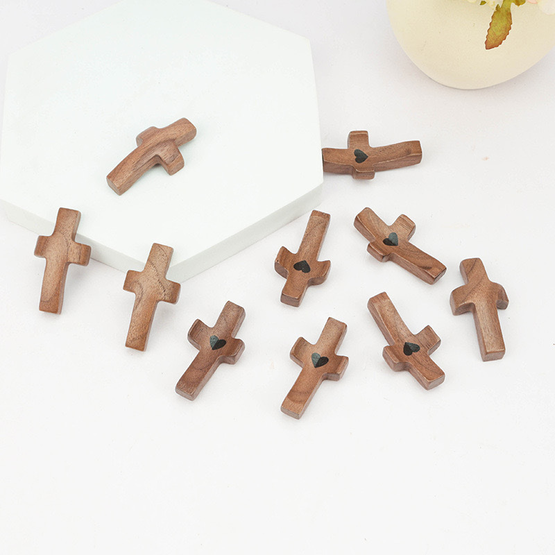 국경 간 폭발성 나무 크로스 미국 호두 핸드 피스 엄지 크로스 교회 부활절 핸드 피스스토어 가기