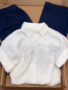 白色亚麻衬衫正肩短袖女夏季休闲气质老钱风棉麻衬衣法式小资上衣