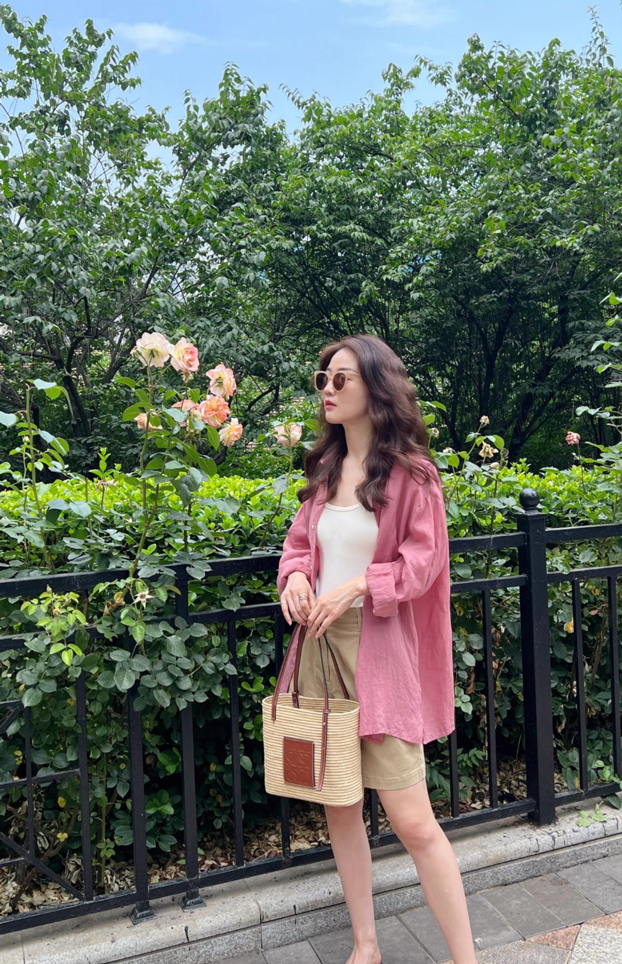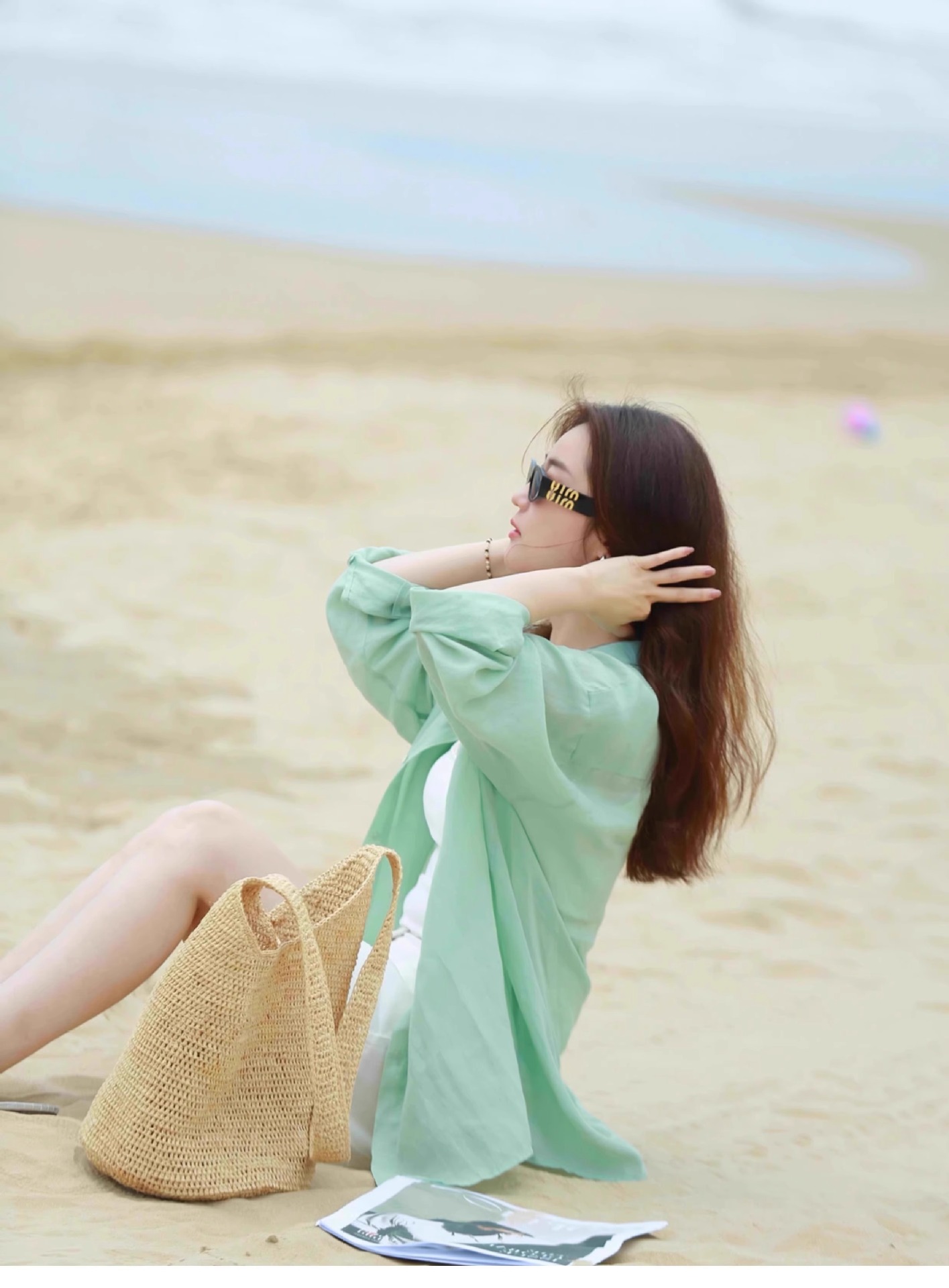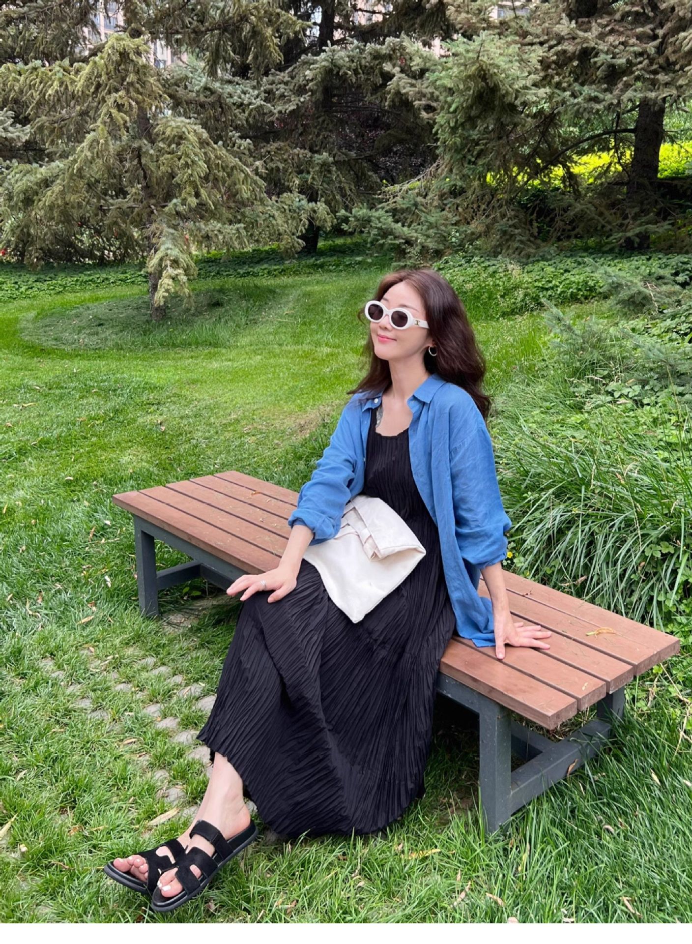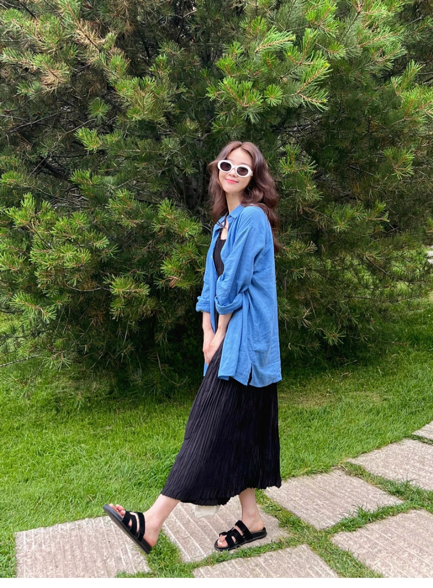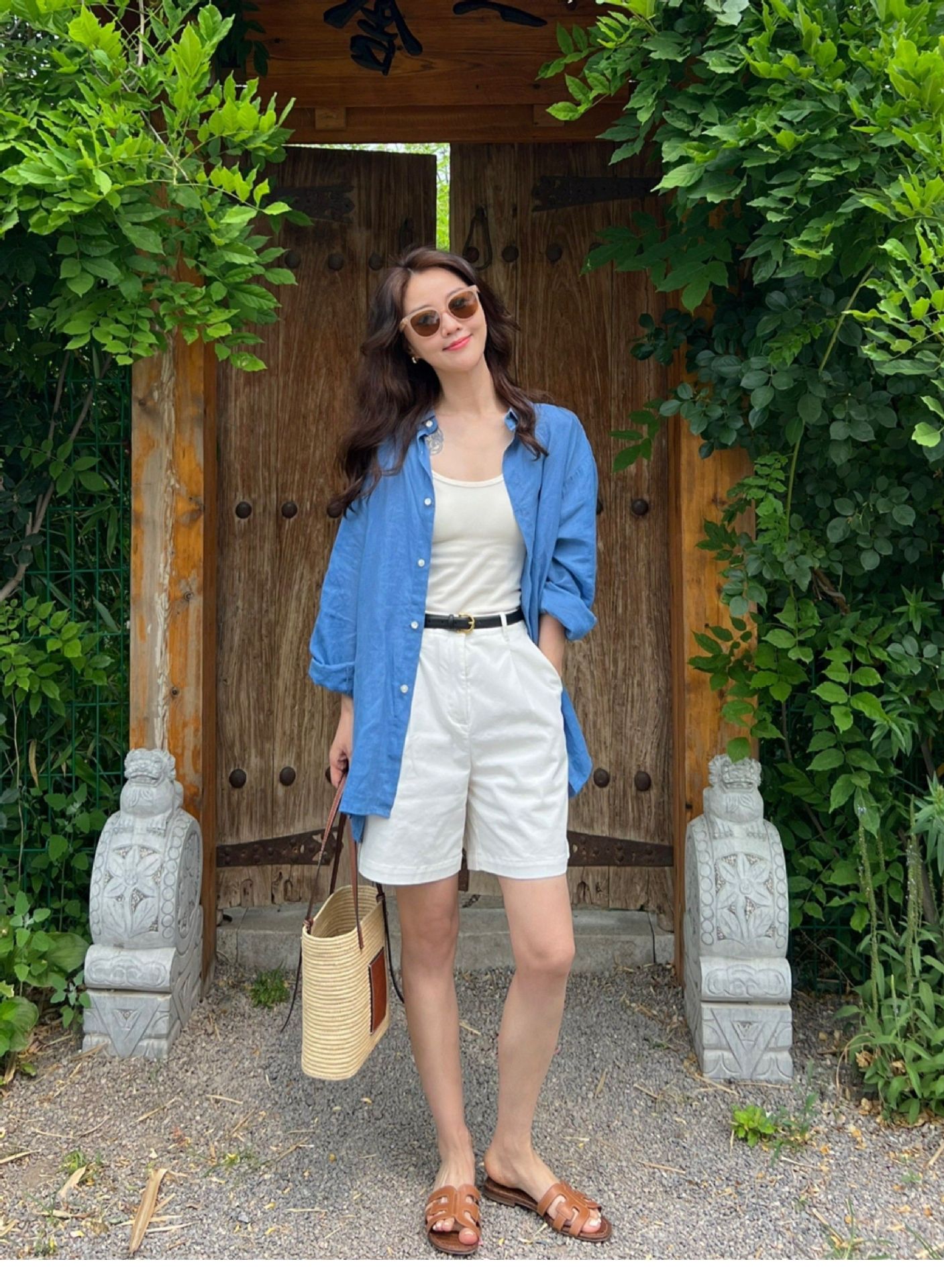 高级感亚麻防晒长袖衬衫松弛感百搭开衫外套薄款宽松棉麻蓝色衬衣