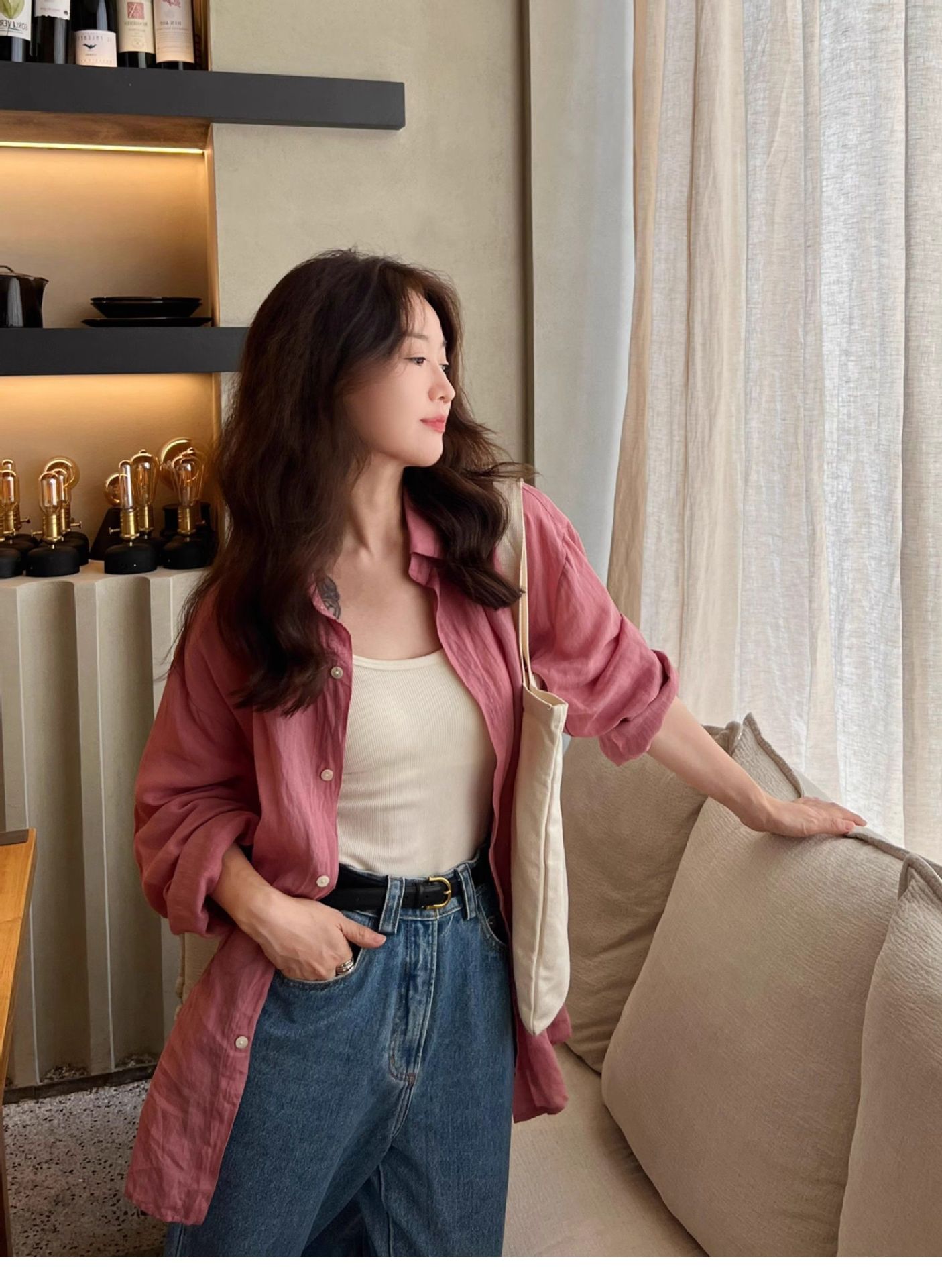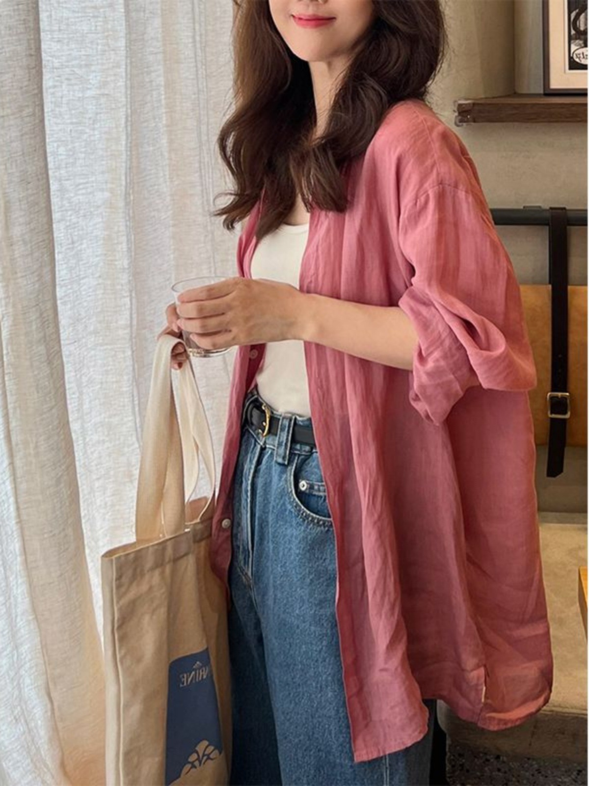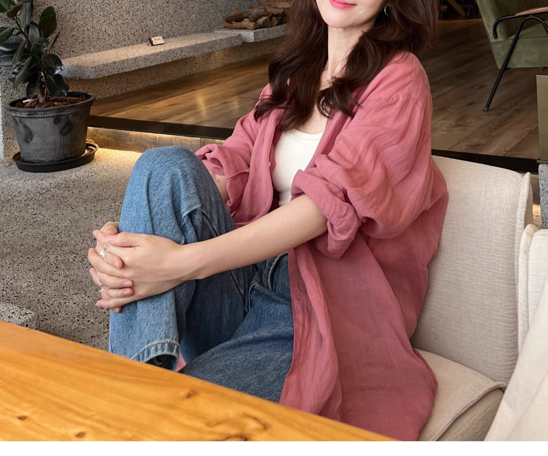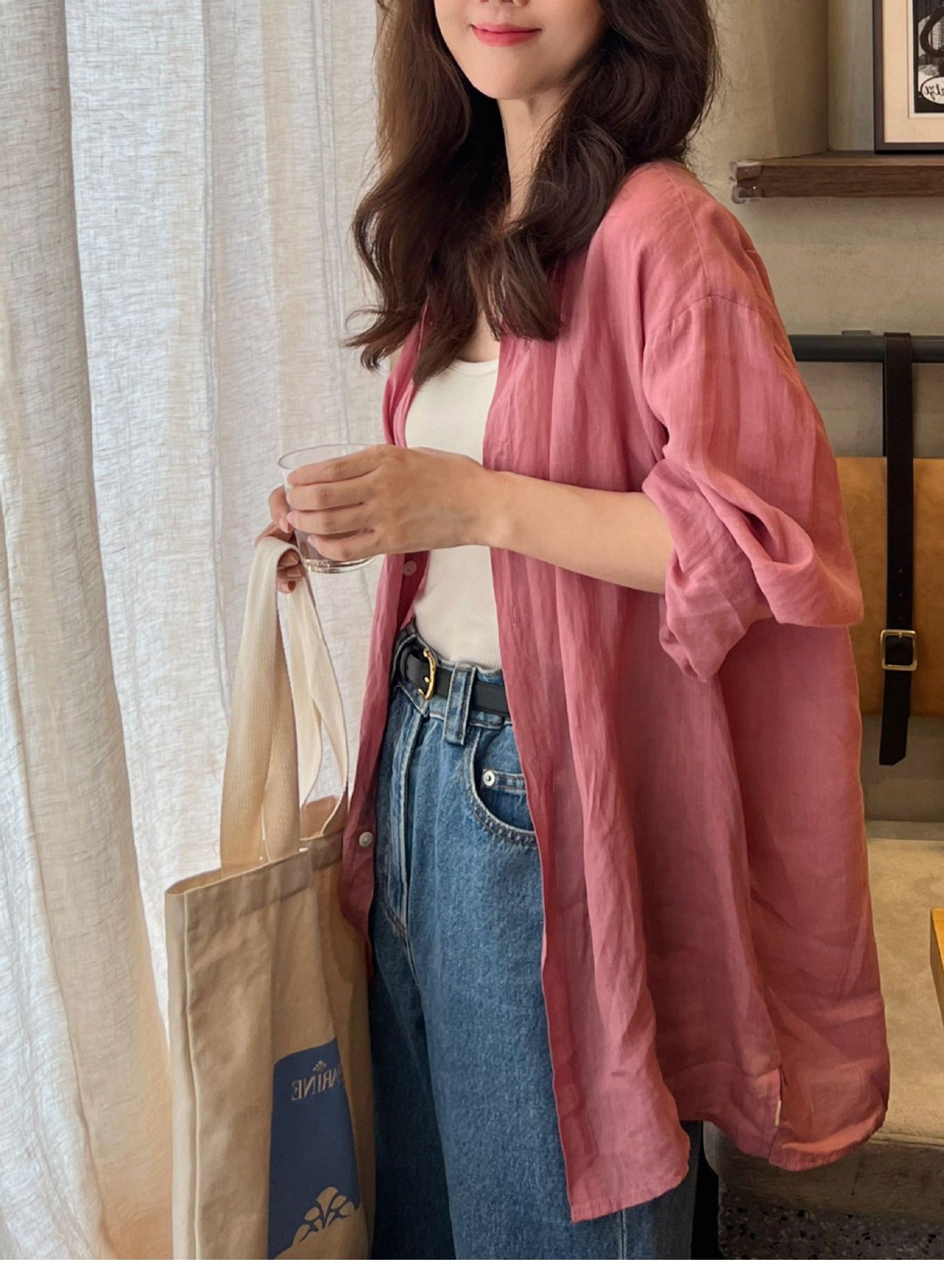 얇은 폴로 린넨 루즈핏 캐주얼 자외선 차단 셔츠 재킷 2025 초가을 신상 아우터 가디건 면마 탑스토어 가기