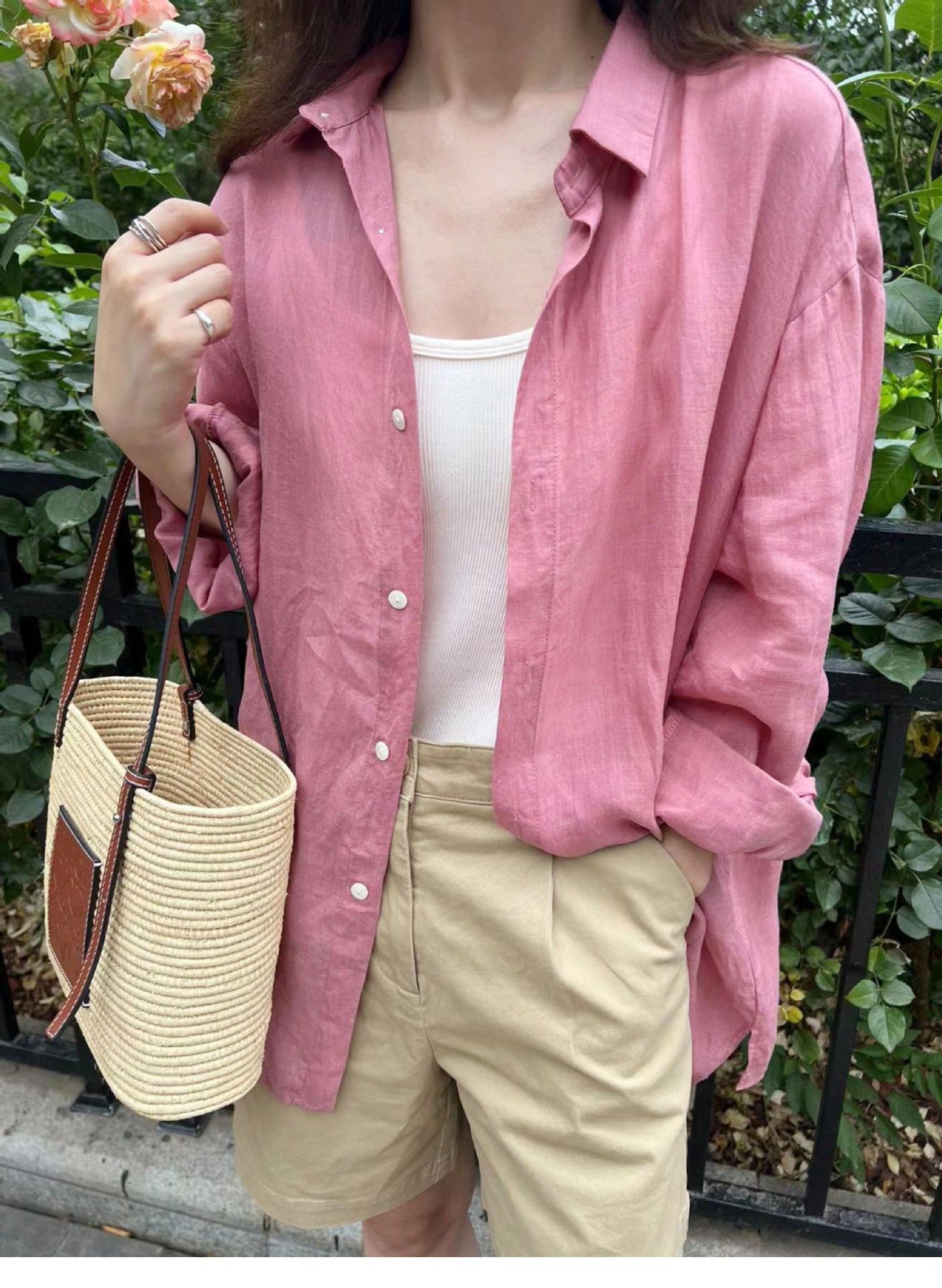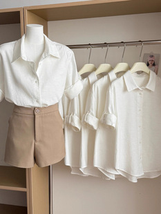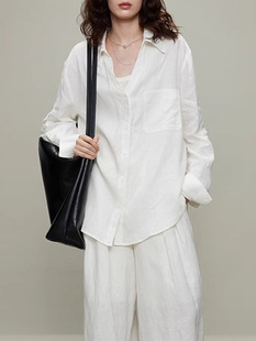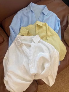 高级感白色亚麻衬衫女夏季法式松弛感宽松气质老钱风衬衣防晒上衣
