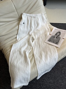 南油高版本2025新款夏季薄款亚麻阔腿裤设计感小众洋气白色长裤子