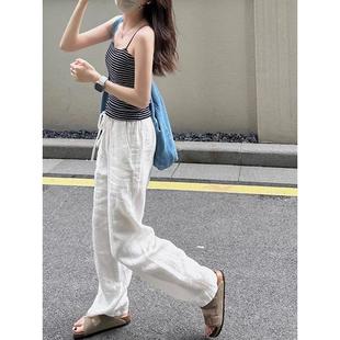 白色裤子女夏薄款棉麻宽松显瘦阔腿裤高腰小个子休闲裤软糯直筒裤