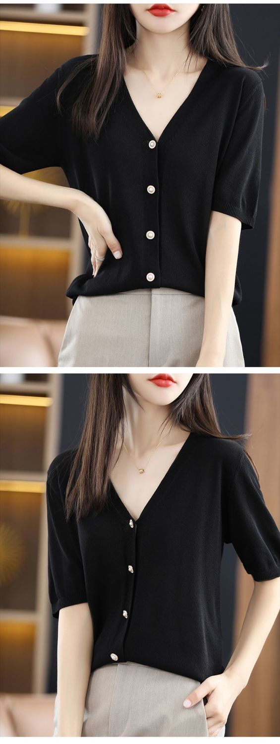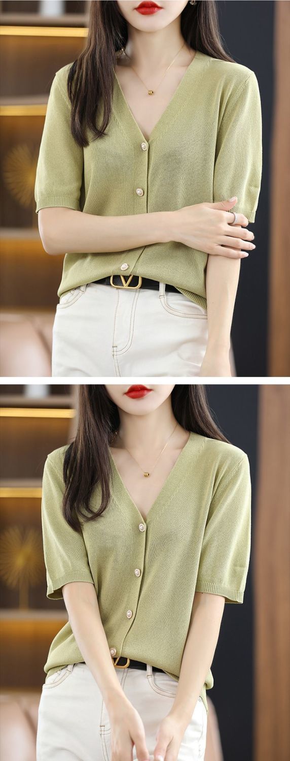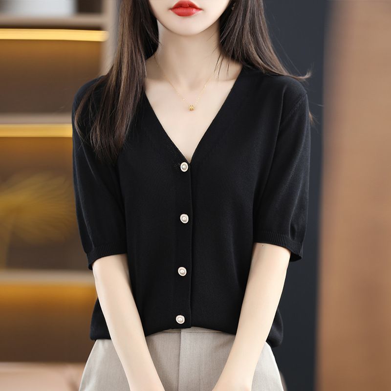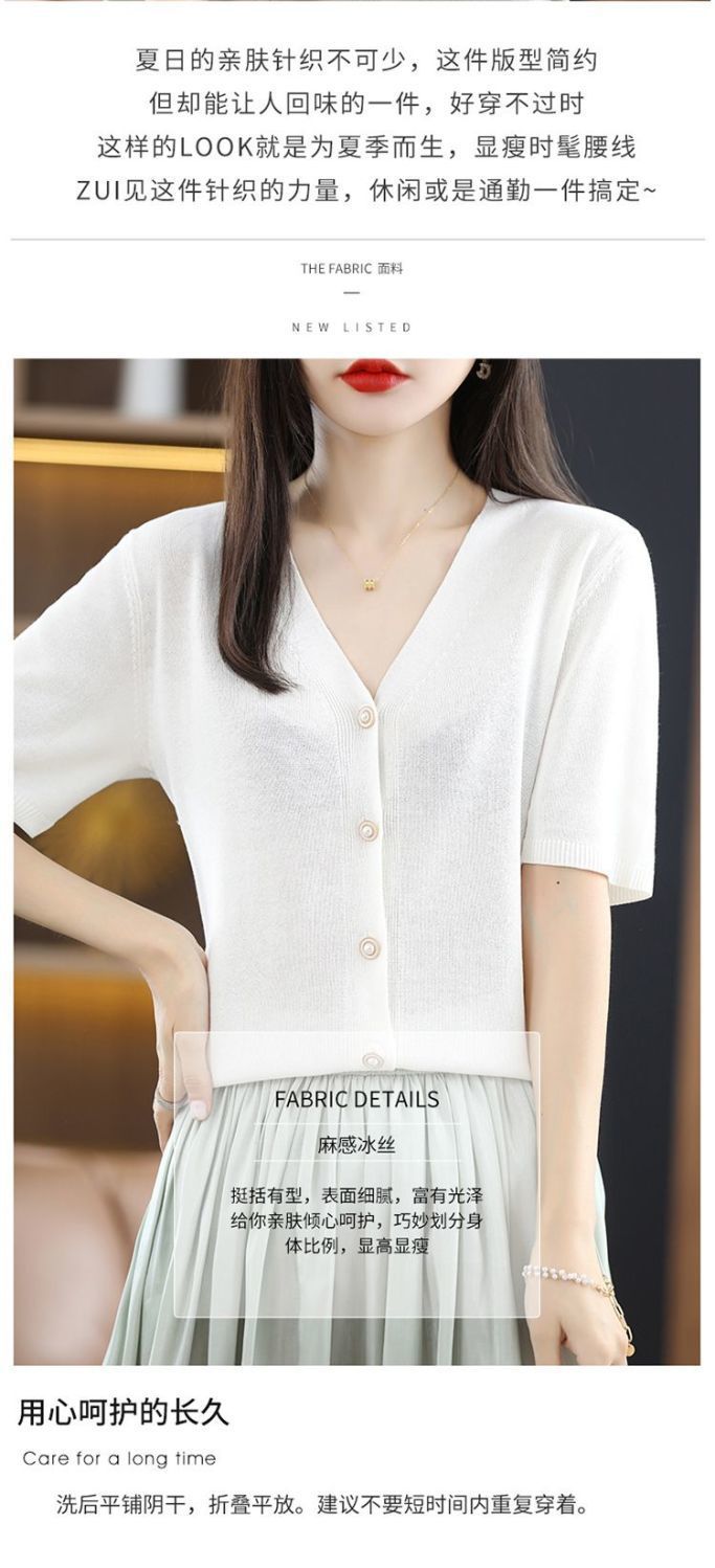 아이스 실크 니트 가디건 얇은 여름 반팔 가디건 루즈핏 얇은 코트 슬림핏 상의 니트와 끈이 있는 조합스토어 가기