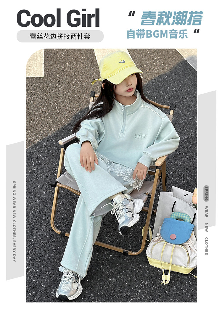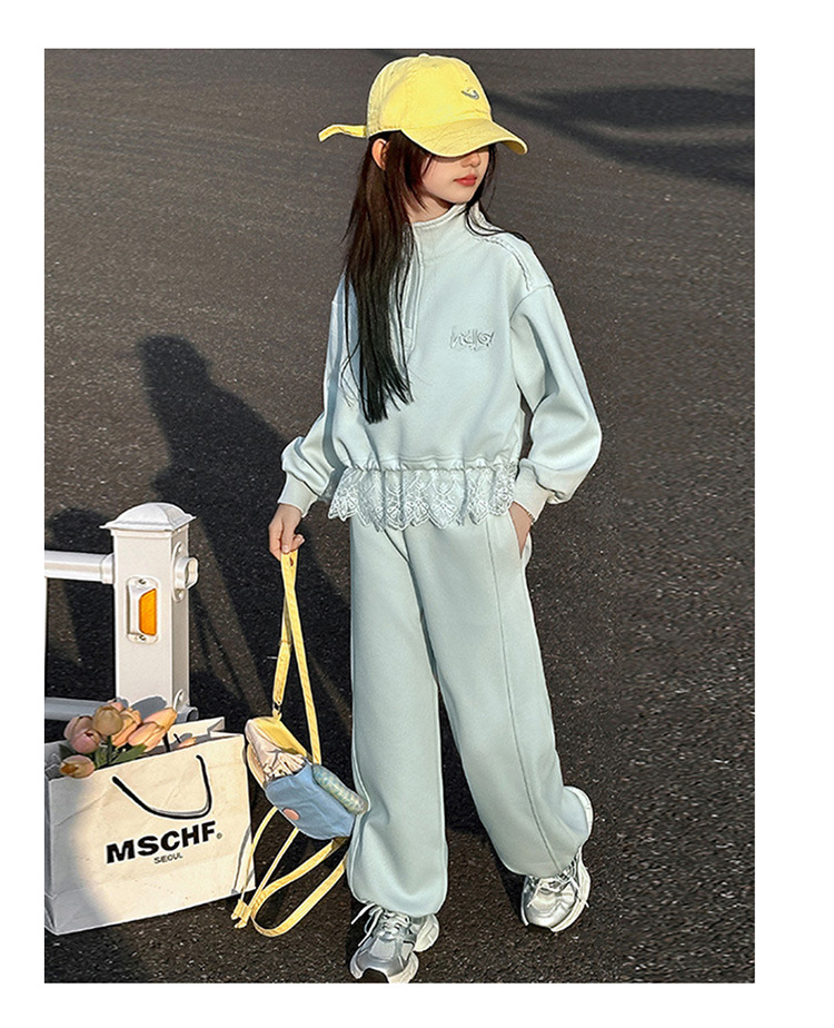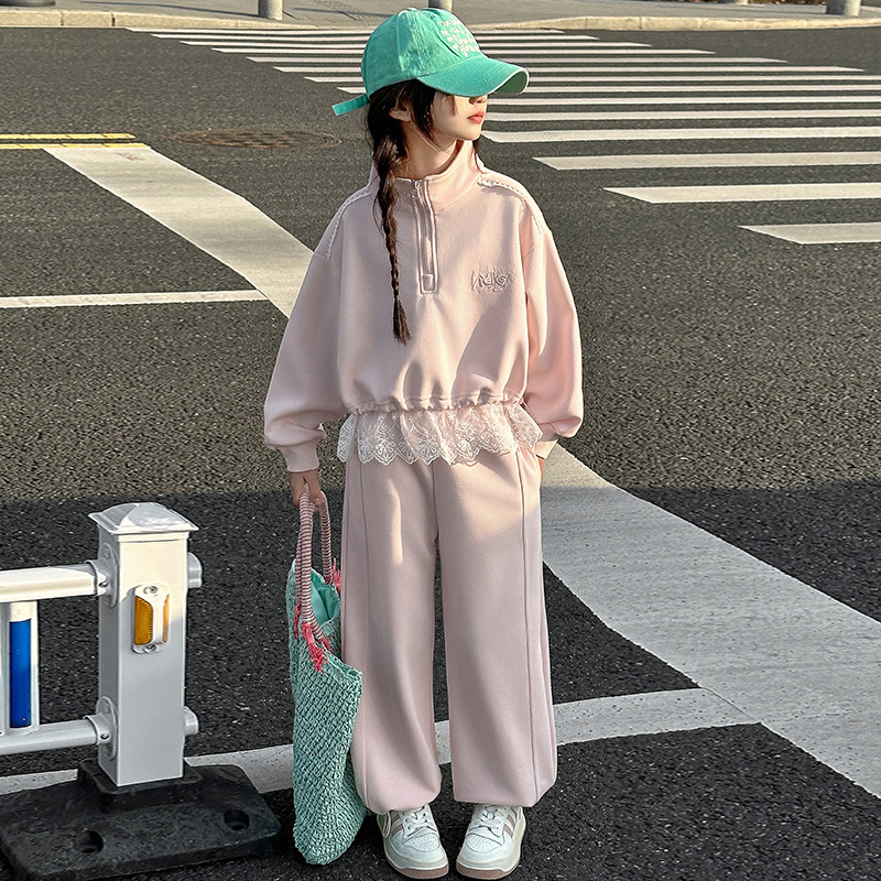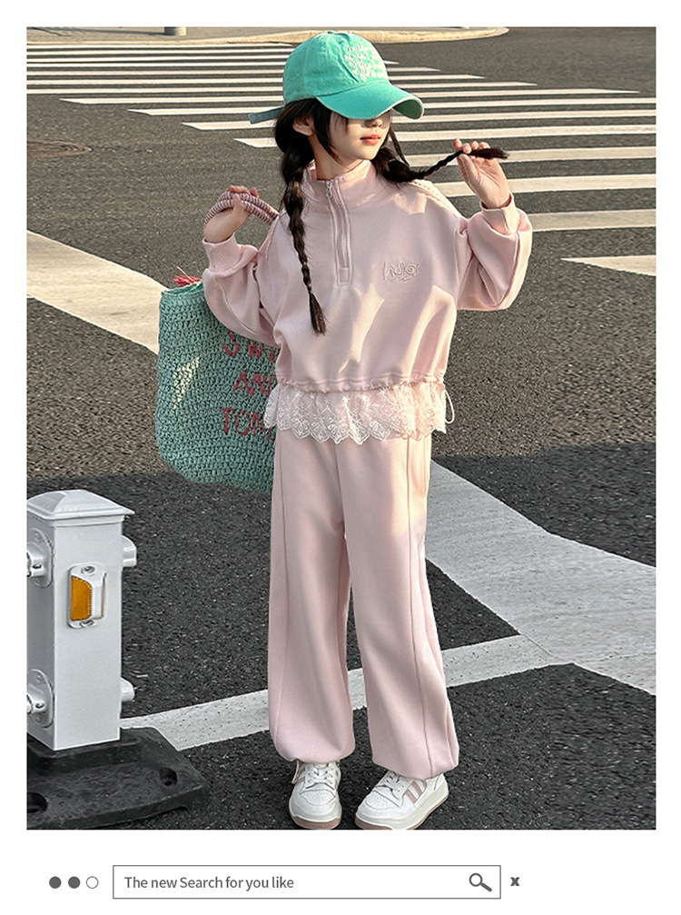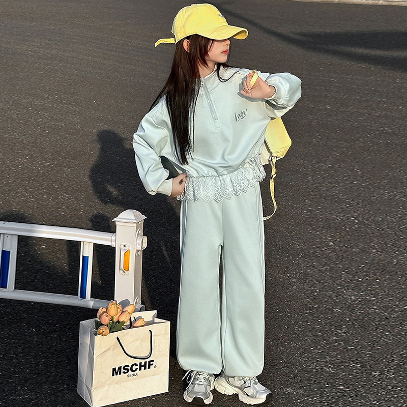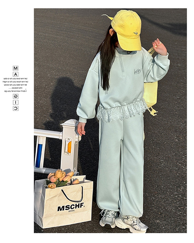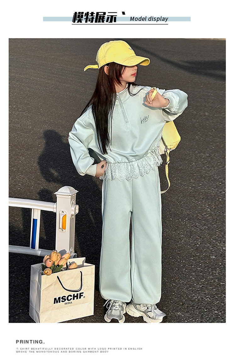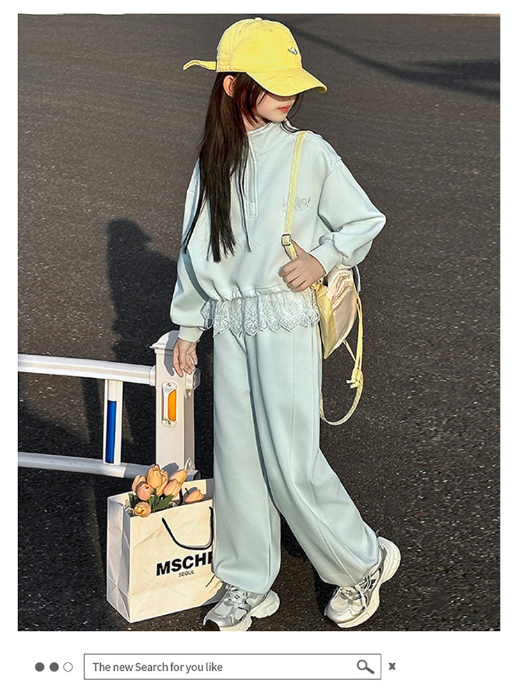 여자 세트 봄 아동복 한국 스타일 어린이 스포츠 인터넷 인기 느슨한 스웨트 학생 소녀 바지 Huzhou Zhili