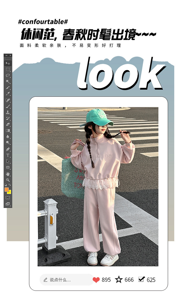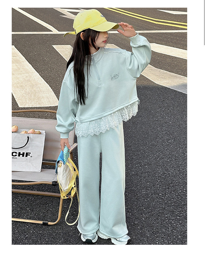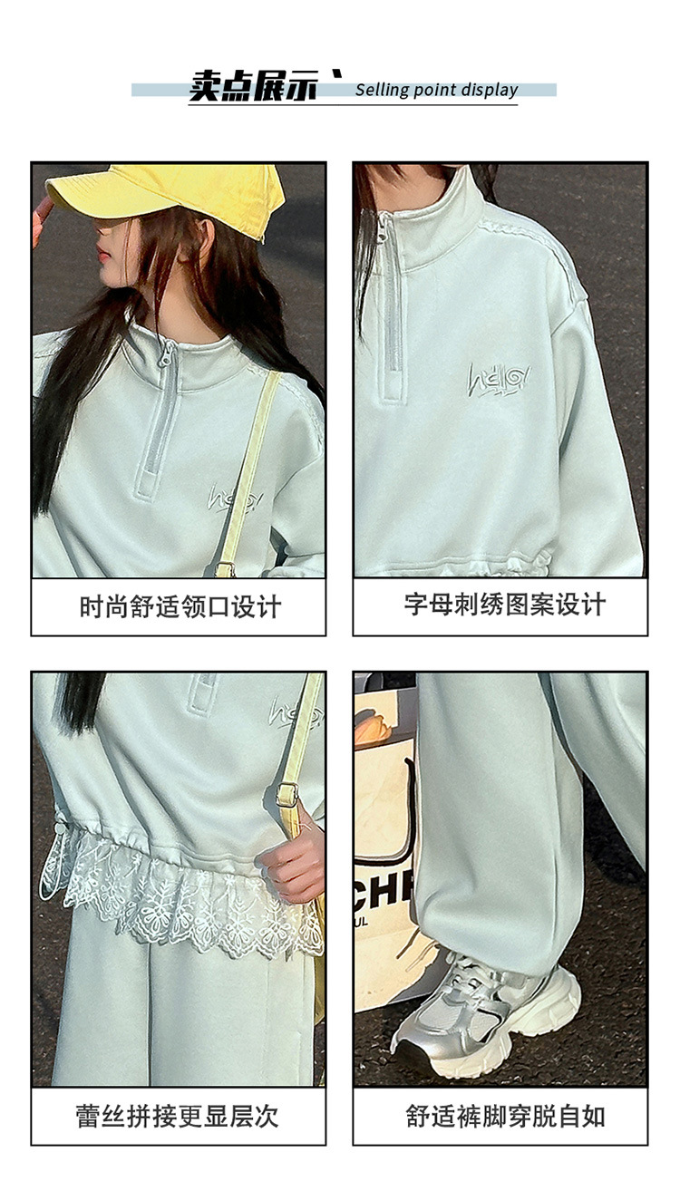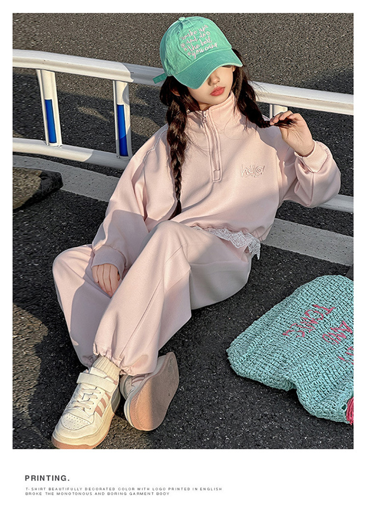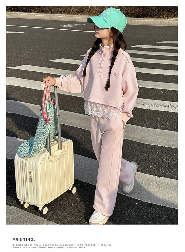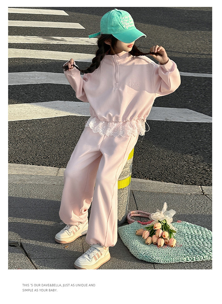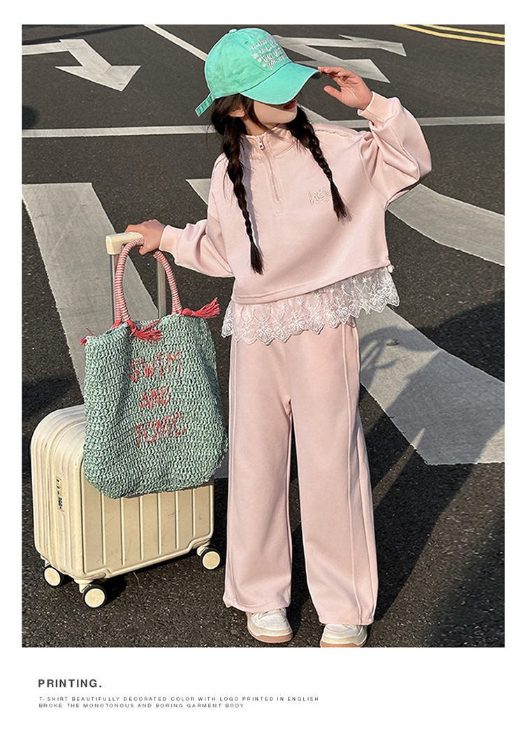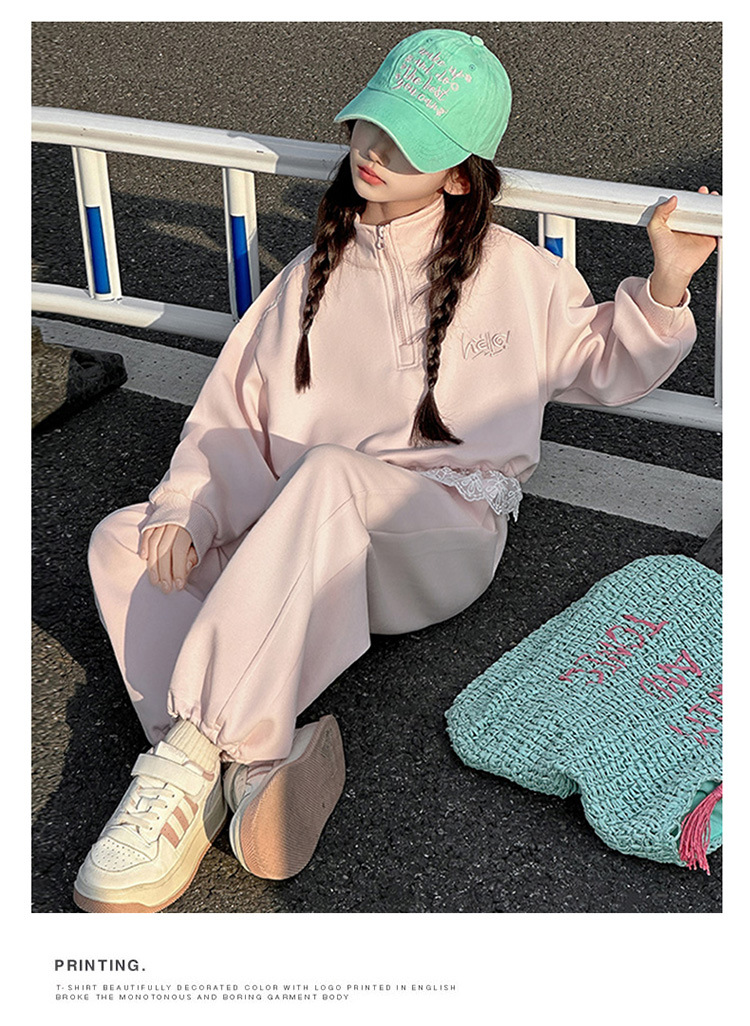 여자 세트 봄 아동복 한국 스타일 어린이 스포츠 인터넷 인기 느슨한 스웨트 학생 소녀 바지 Huzhou Zhili