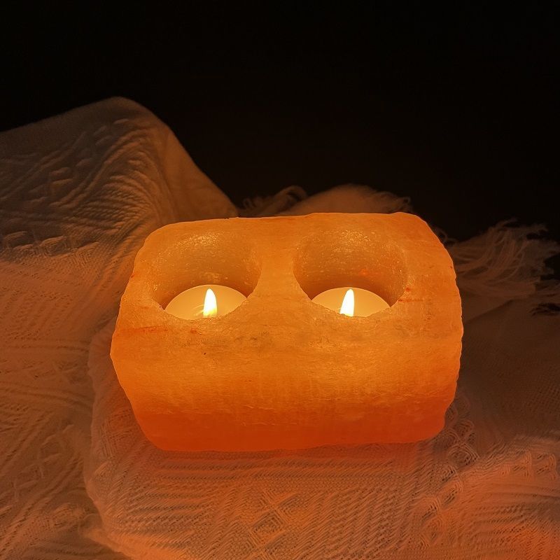进口盐灯喜马拉雅水晶盐烛台小夜灯净化空气浪漫烛光晚餐柔和光线