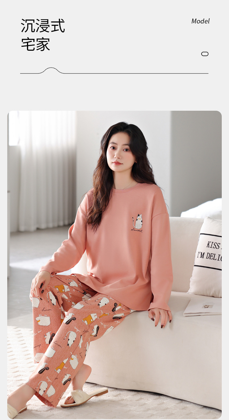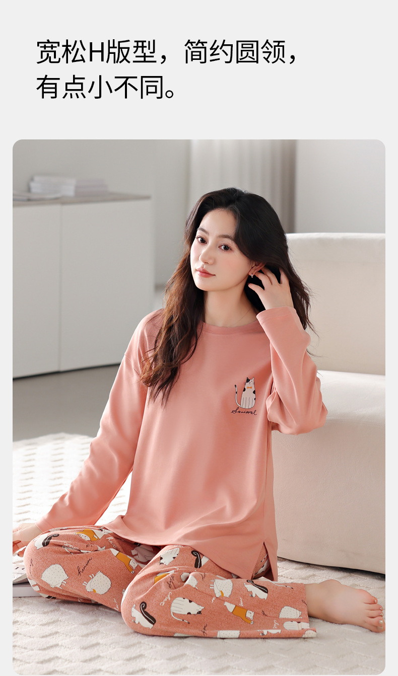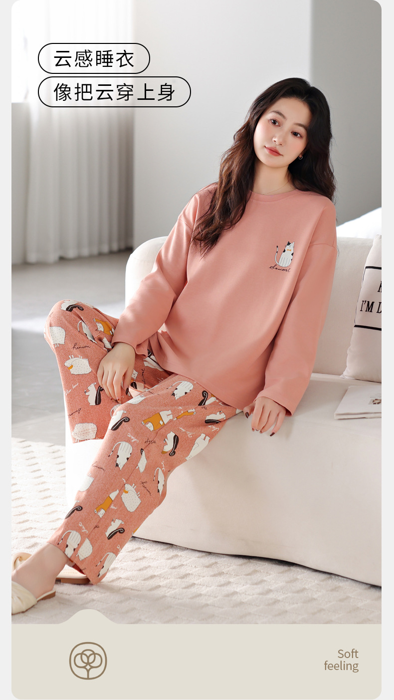 잠옷 여성면 봄과 가을 긴팔 귀여운 만화 플러스 사이즈 면 캐주얼 풀오버 홈 의류 세트 착용스토어 가기